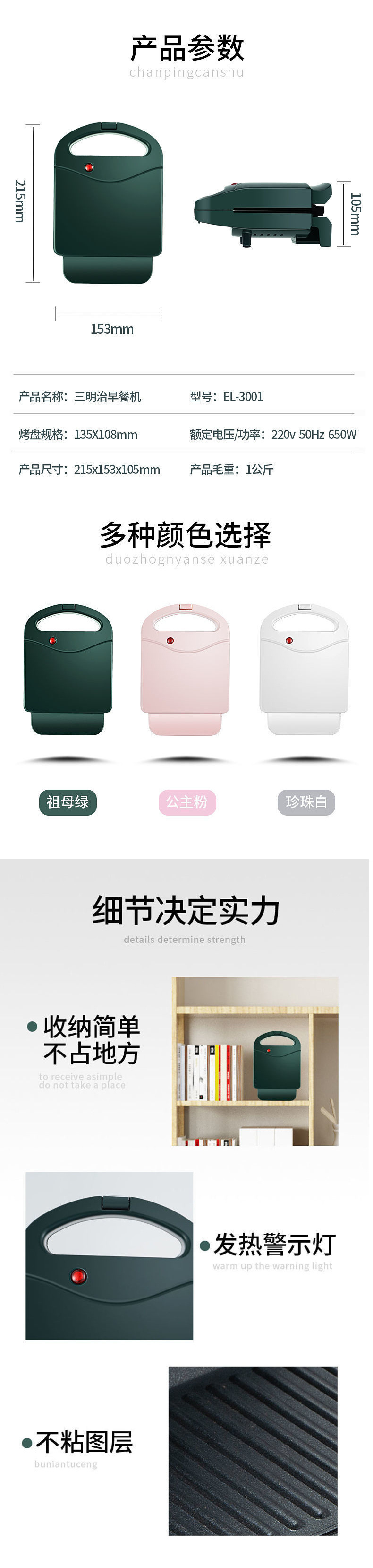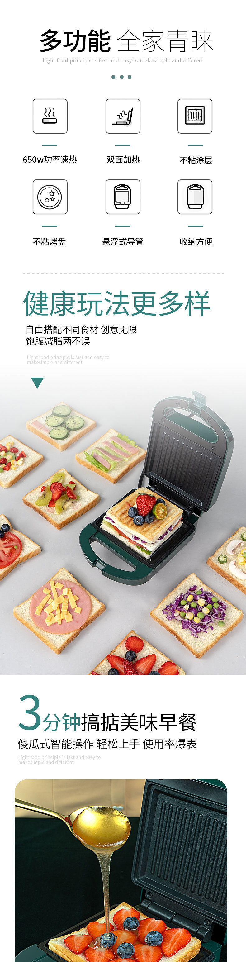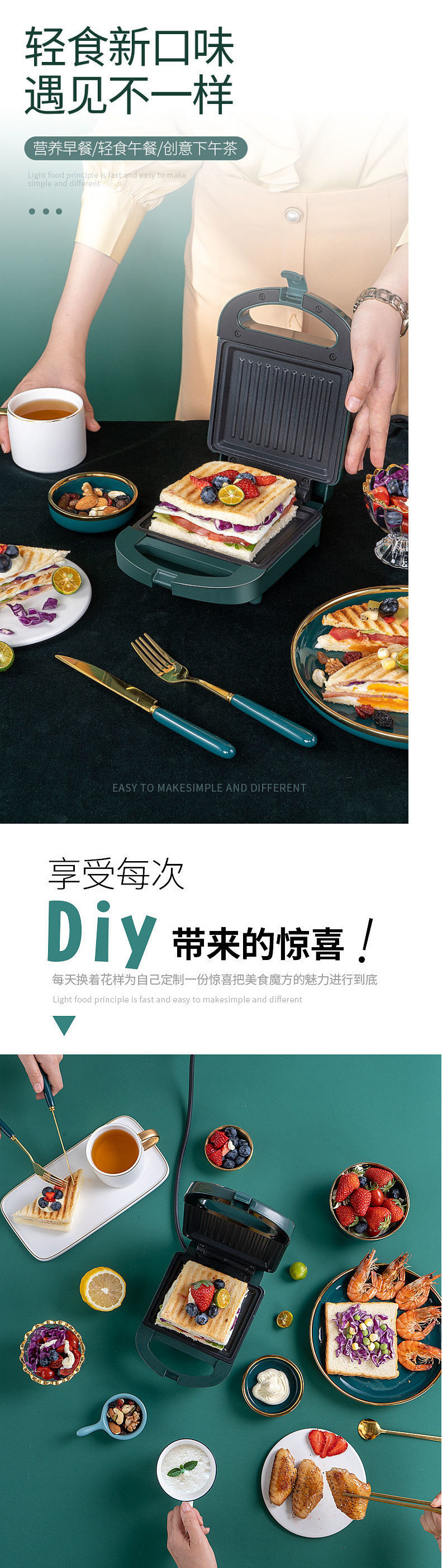 새로운 샌드위치 기계 아침 식사 기계 가정용 가벼운 음식 기계 와플 기계 다기능 가열 토스트 프레스 토스터