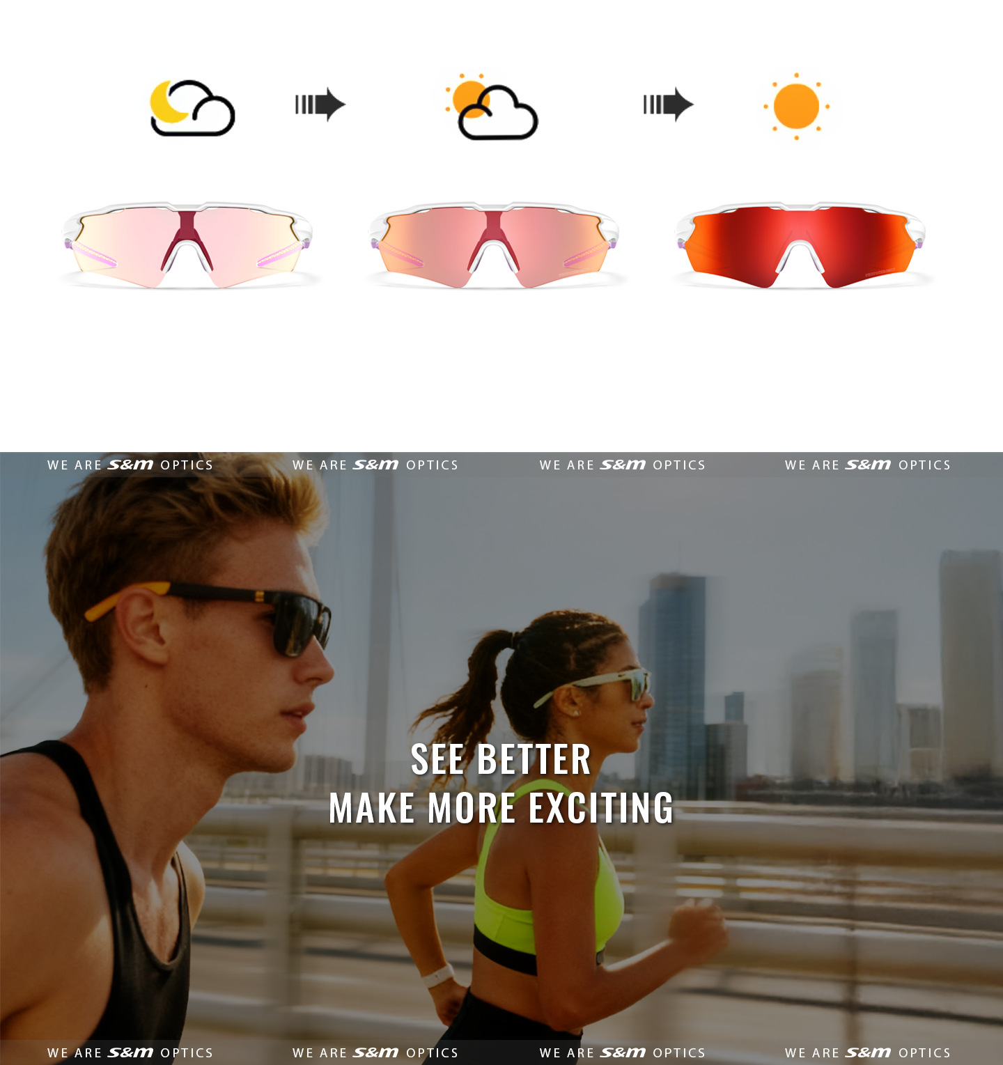 S&M 사이클링 안경, 야외 스포츠용 주야간 겸용 변색 고글, 자전거, 러닝, 등산, 하이킹용