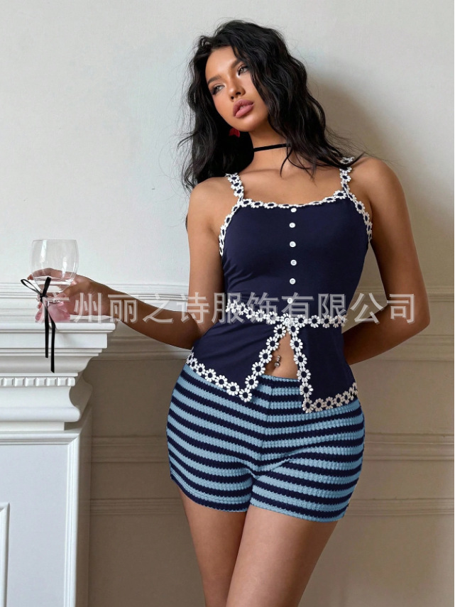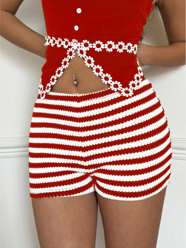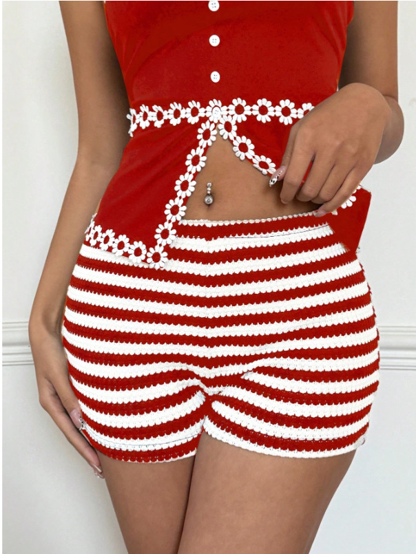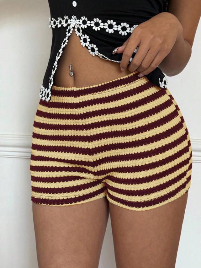 2025 유럽 및 미국 여성 의류 바지 아마존 크로스보더 봄 여름 신상 패션 스트라이프 핫걸 로우 웨이스트 고탄력 여성 반바지