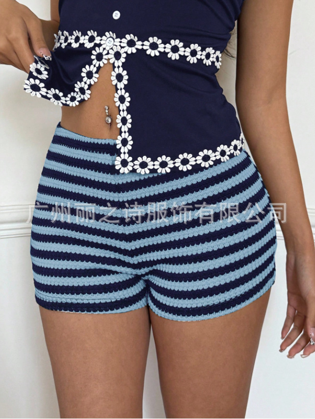 2025 유럽 및 미국 여성 의류 바지 아마존 크로스보더 봄 여름 신상 패션 스트라이프 핫걸 로우 웨이스트 고탄력 여성 반바지스토어 가기