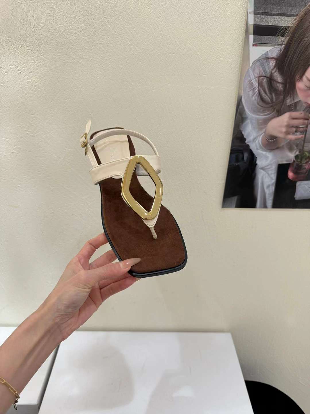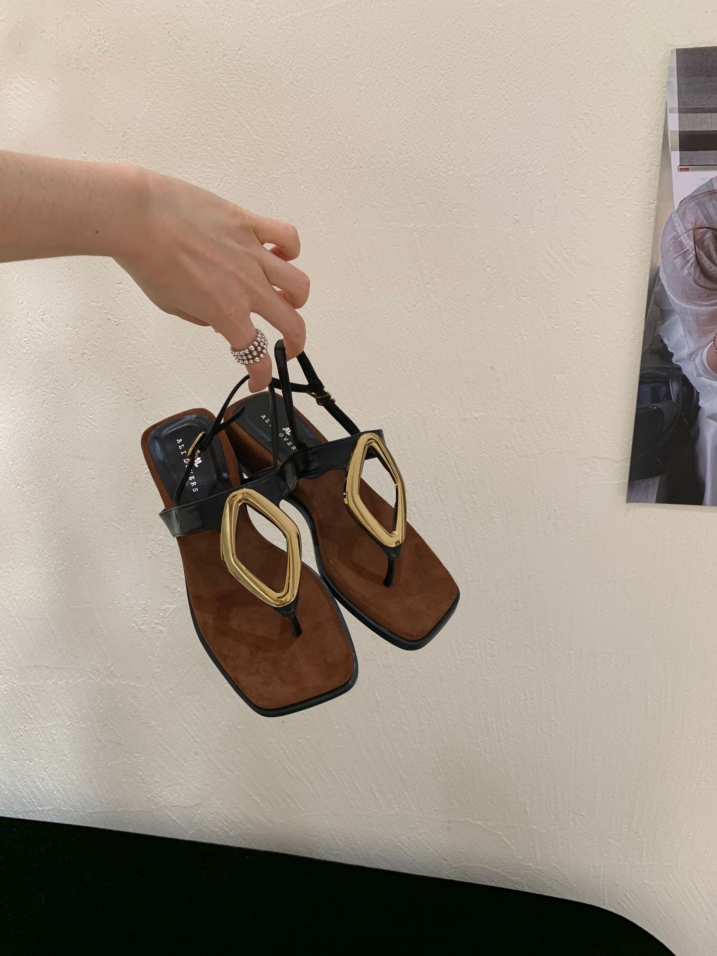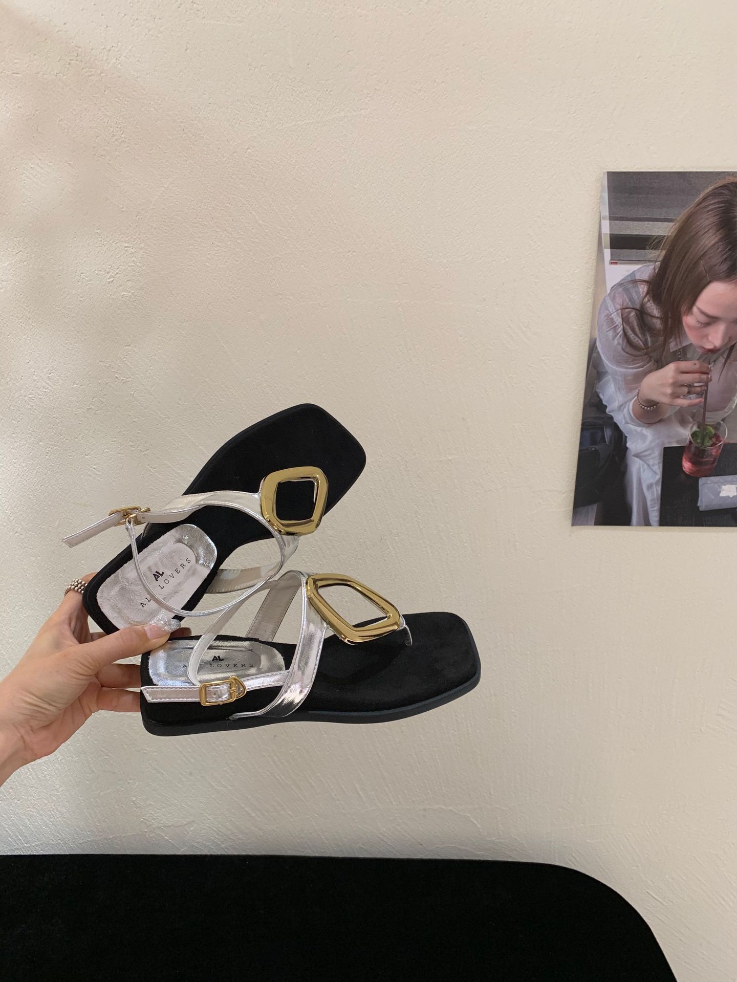 2025 새로운 프랑스 복고풍 스타일 금속 사각형 버클 웨지 캐주얼 플립 플롭 여성 여름 착용 플립 플롭 샌들스토어 가기