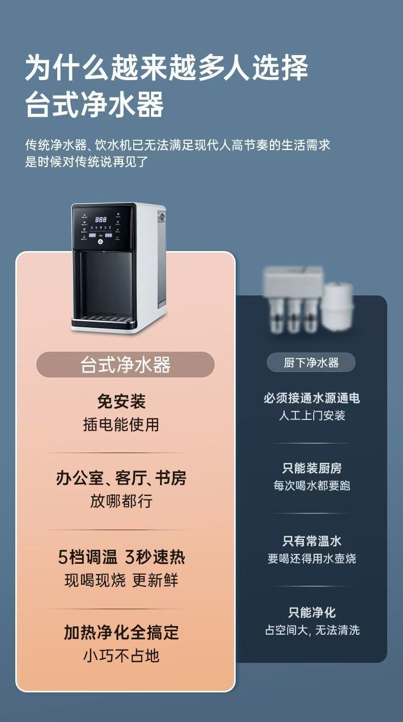 정수기 직접 마시는 온수 일체형 데스크탑 RO 역삼투 온수 정수기 2025 신형 가정용 필터스토어 가기