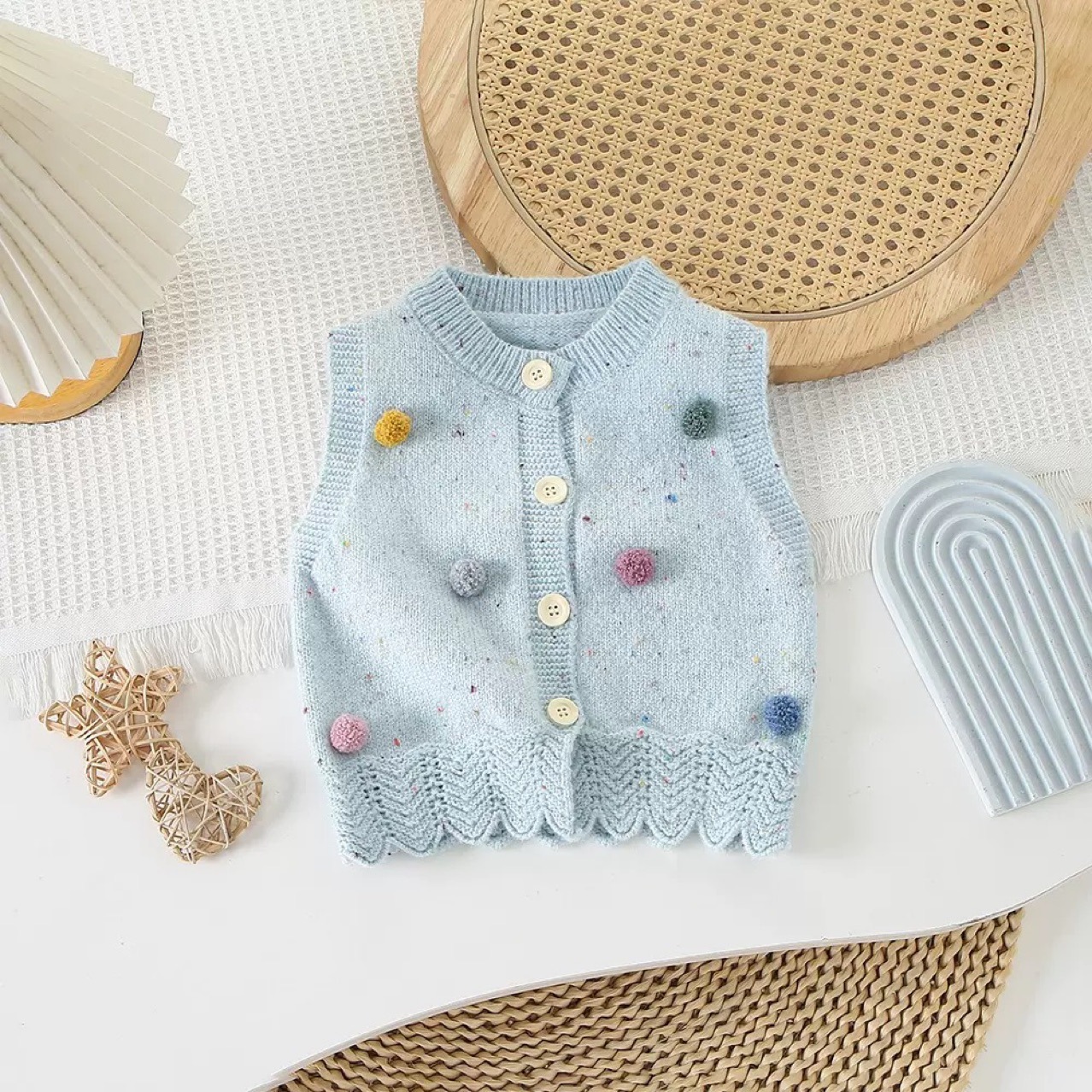 아동 조끼, 여아 패셔너블한 모피 볼 조끼, 가을 겨울 새로운 한국식 여아 패션 스웨터 카디건 조끼 유행스토어 가기