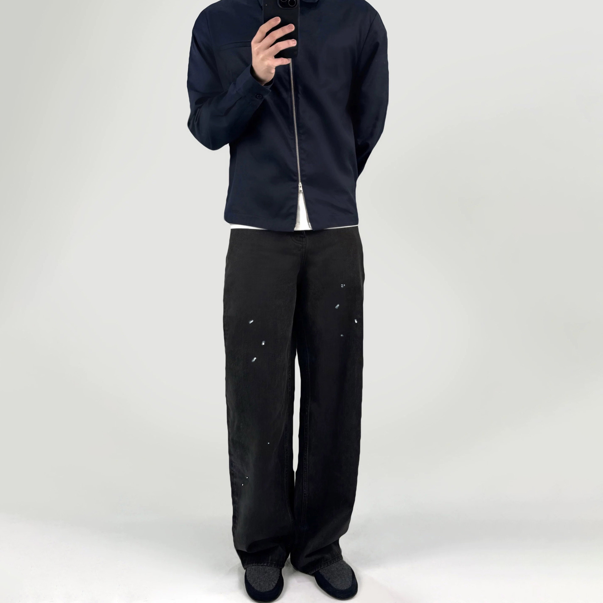 VUJADE010 퓨어 코튼 cleanfitvibe 카우 킹 켄 같은 스타일 블랙 디스트레스드 워싱 스트레이트 청바지 트렌디스토어 가기