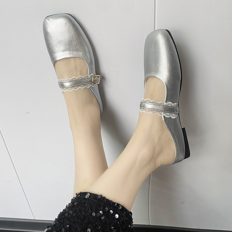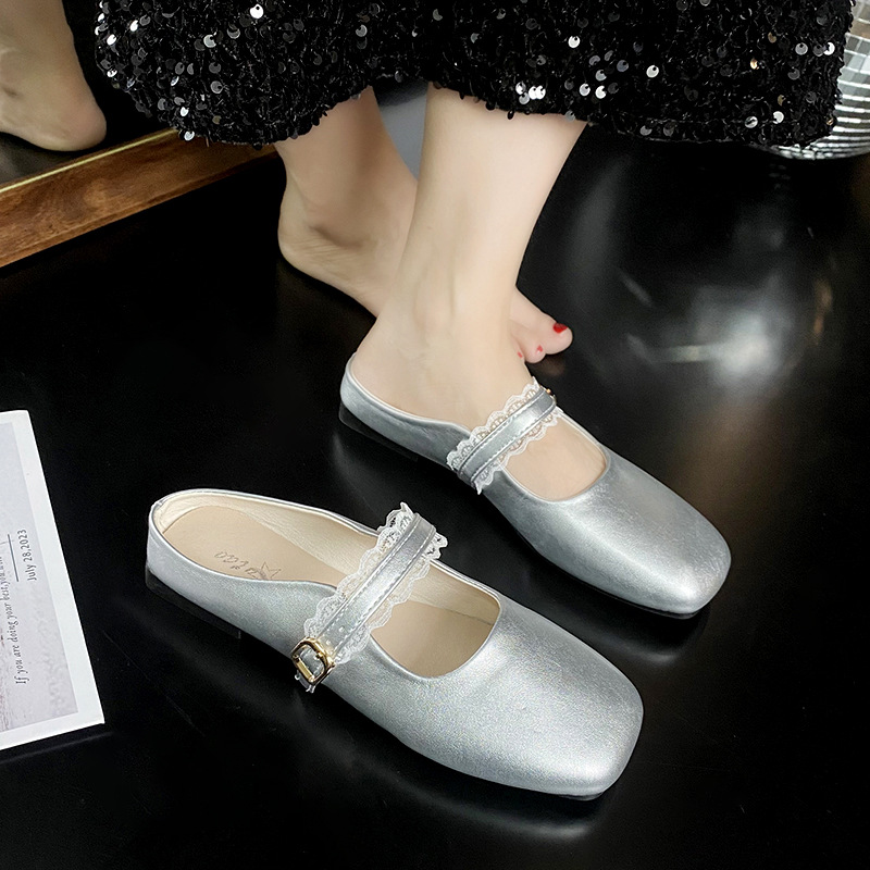 2025년 여름 인기 바오터우 레이스 슈즈, 여름 여성 신상 프렌치 플랫 소프트 메리 뮬 슈즈
