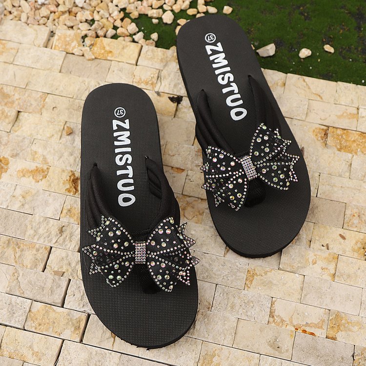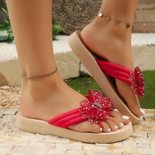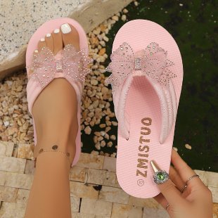 대외 무역 크로스 보더 대형 두꺼운 밑창 플립 플롭 여성용 패션 편안한 캐주얼 보우 로마 비치 슬리퍼