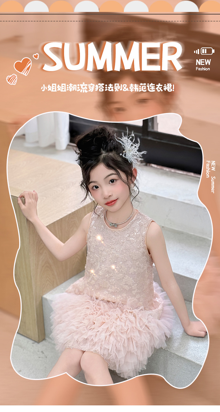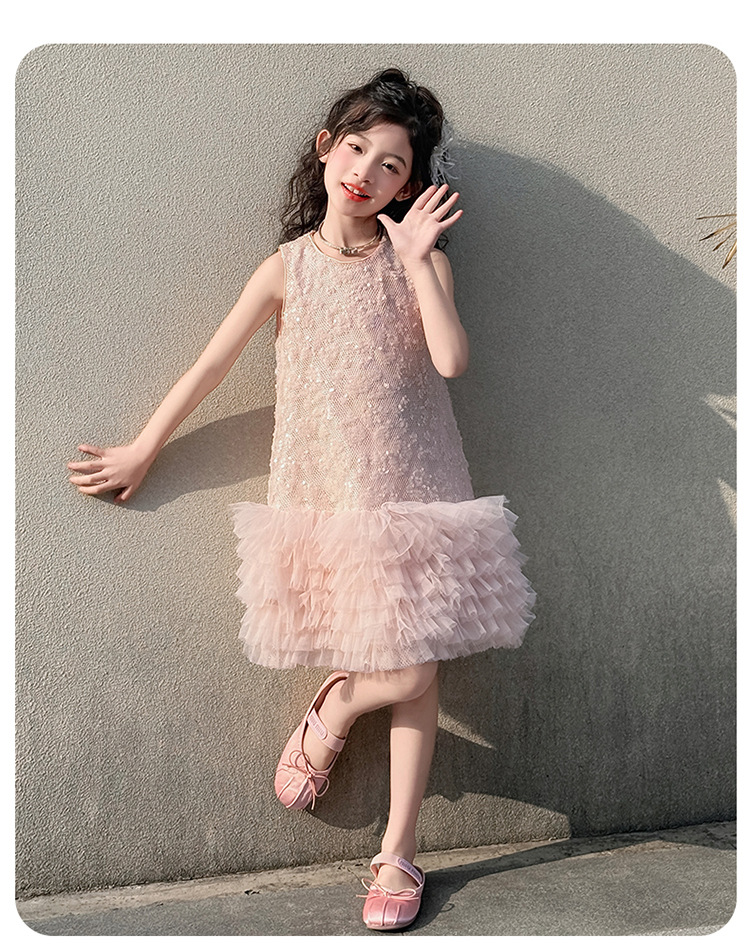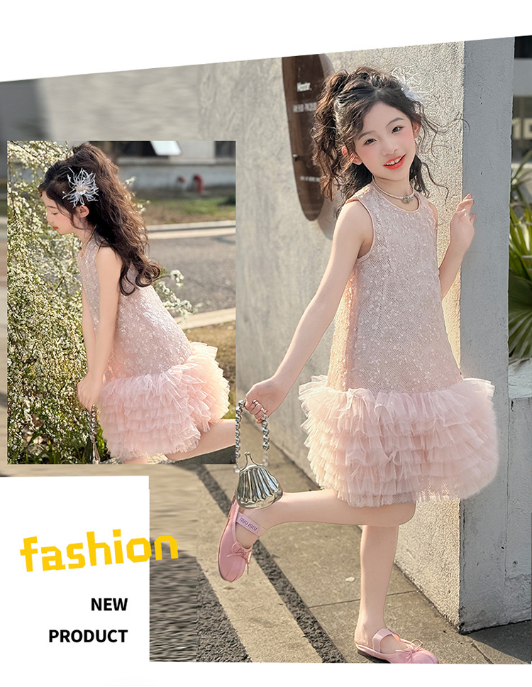 여자 드레스 2025 새로운 여름 어린이 스타일 공주 드레스 서양식 큰 어린이 여름 드레스 생일 드레스 유행 드레스스토어 가기