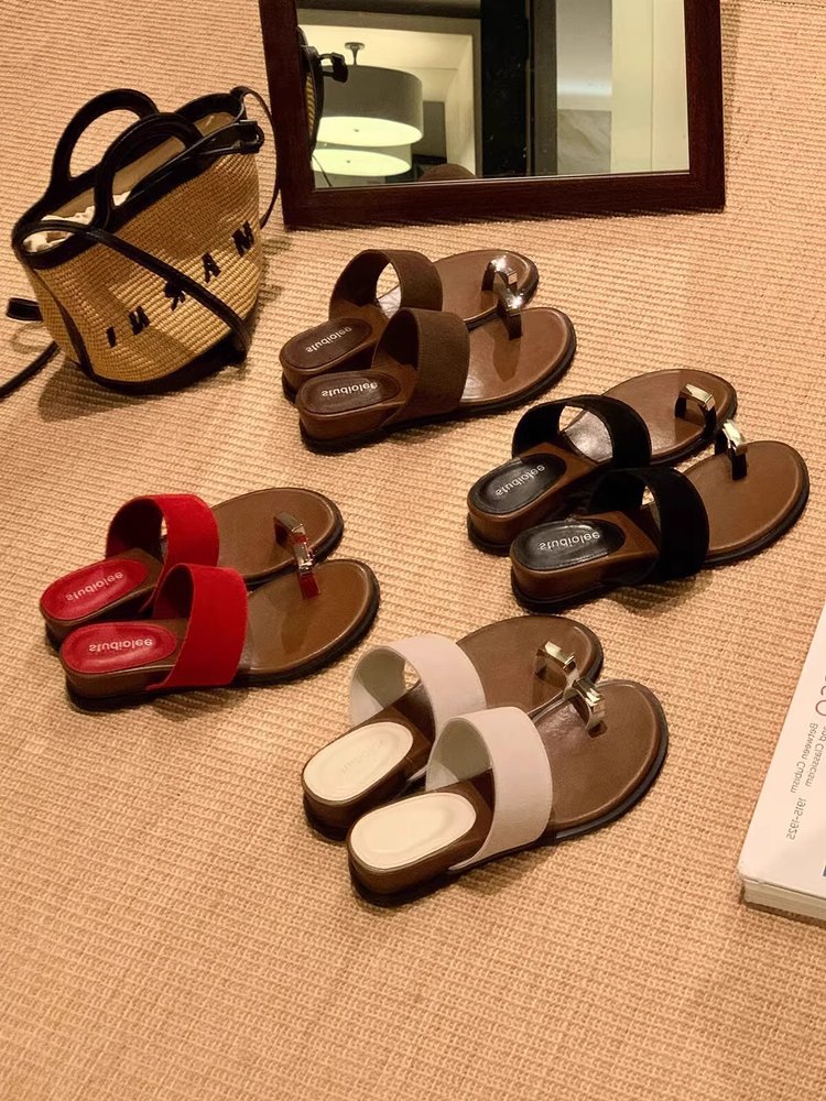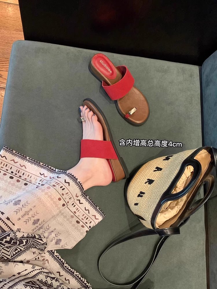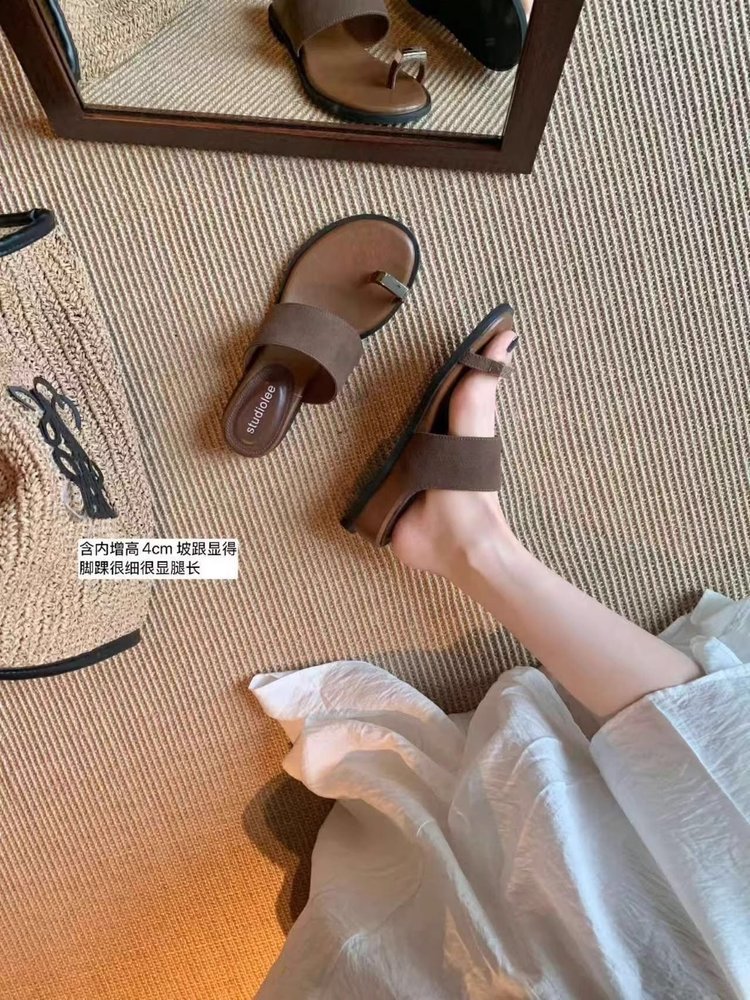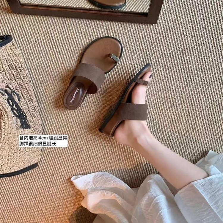 부드러운 가죽 버전 ~ 여성용 여름 아우터용 프렌치 두꺼운 밑창 키높이 슬리퍼 플랫 바닥 캐주얼 비치 샌들