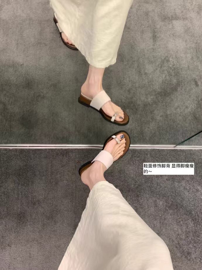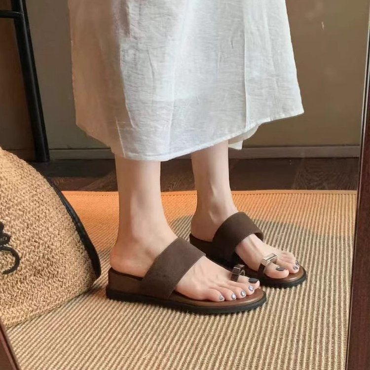부드러운 가죽 버전 ~ 여성용 여름 아우터용 프렌치 두꺼운 밑창 키높이 슬리퍼 플랫 바닥 캐주얼 비치 샌들스토어 가기