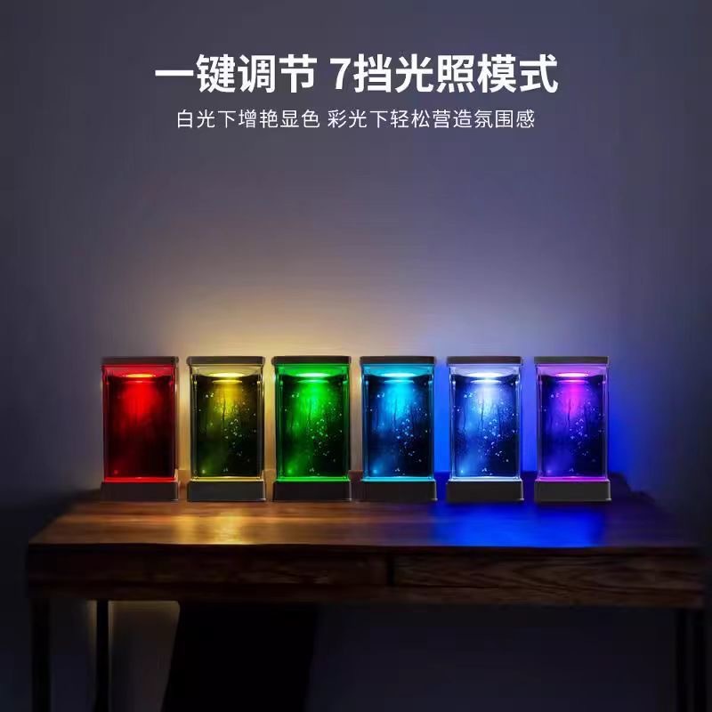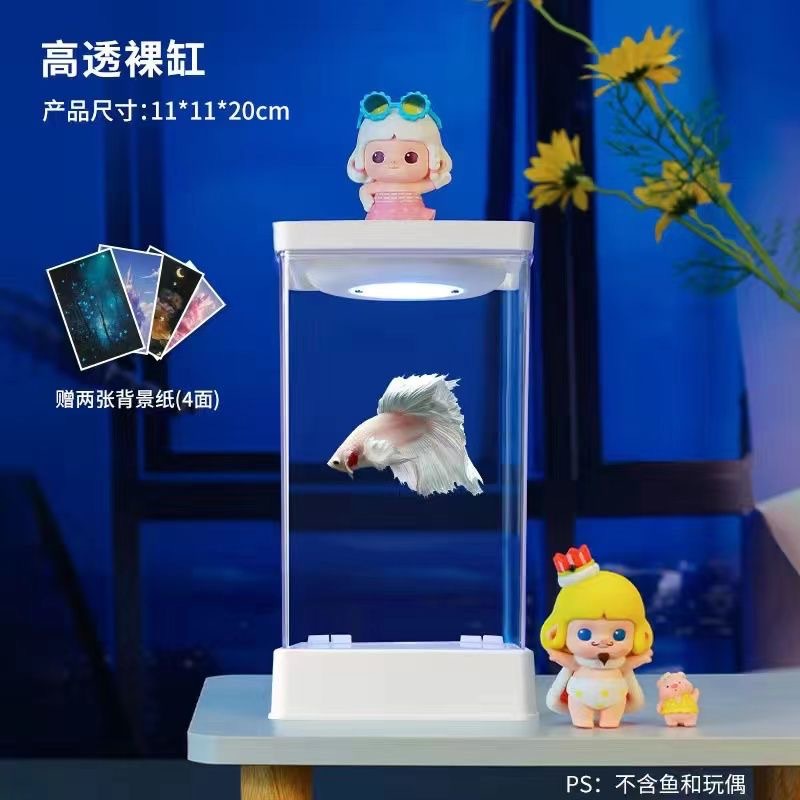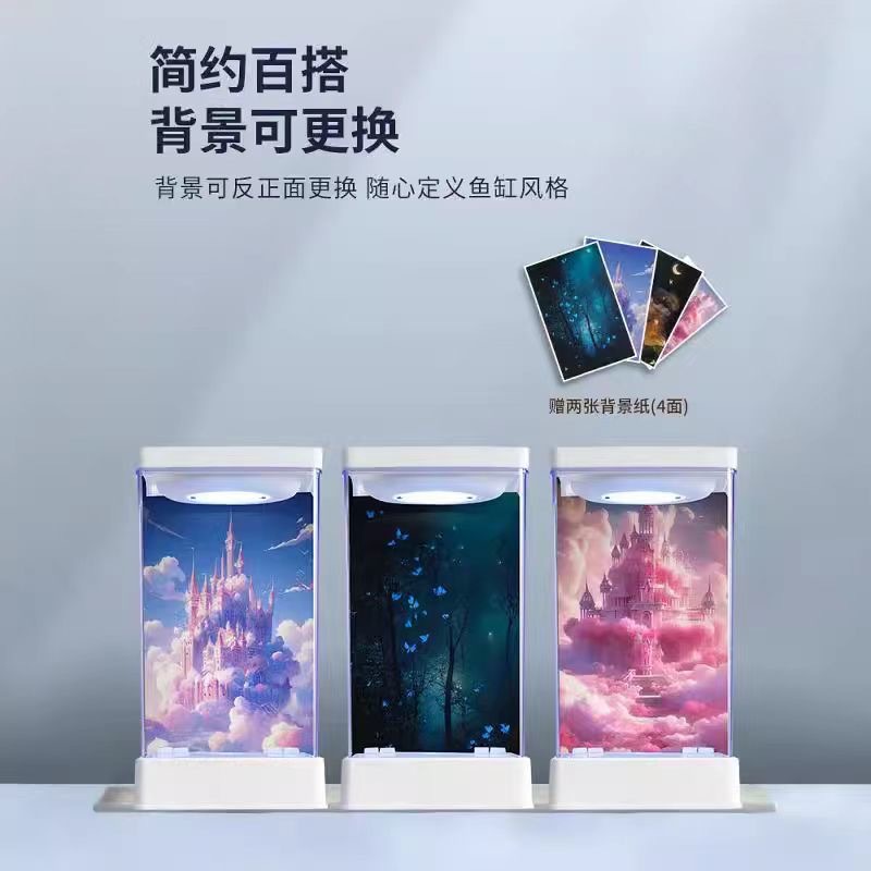 조정 가능한 7 색 USB 조명 배경 카드 종이 생태 크리 에이 티브 수족관 물고기 탱크가있는 태국 Betta 작은 거실
