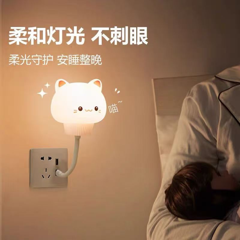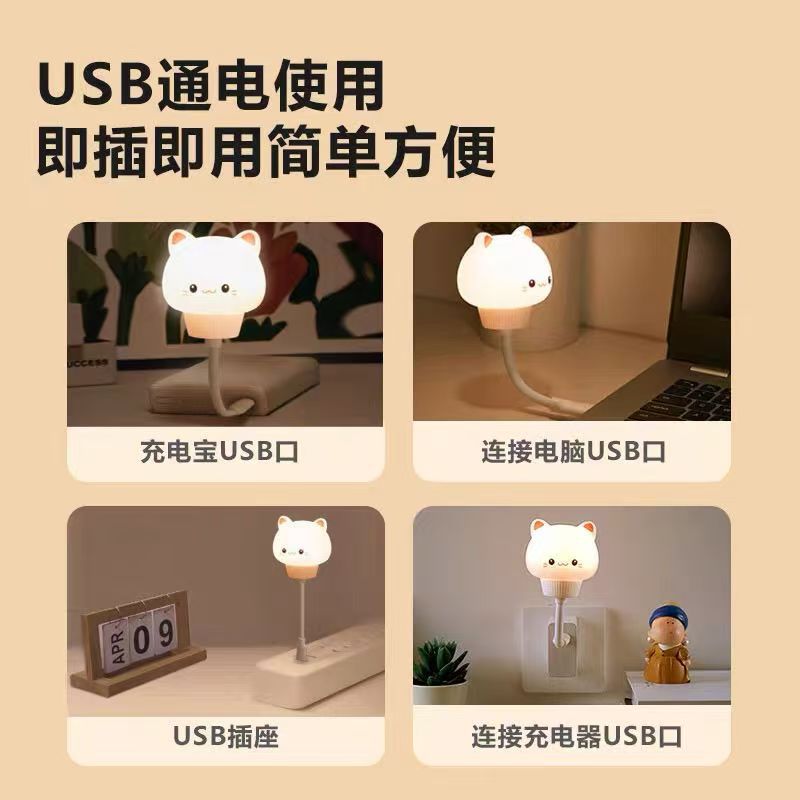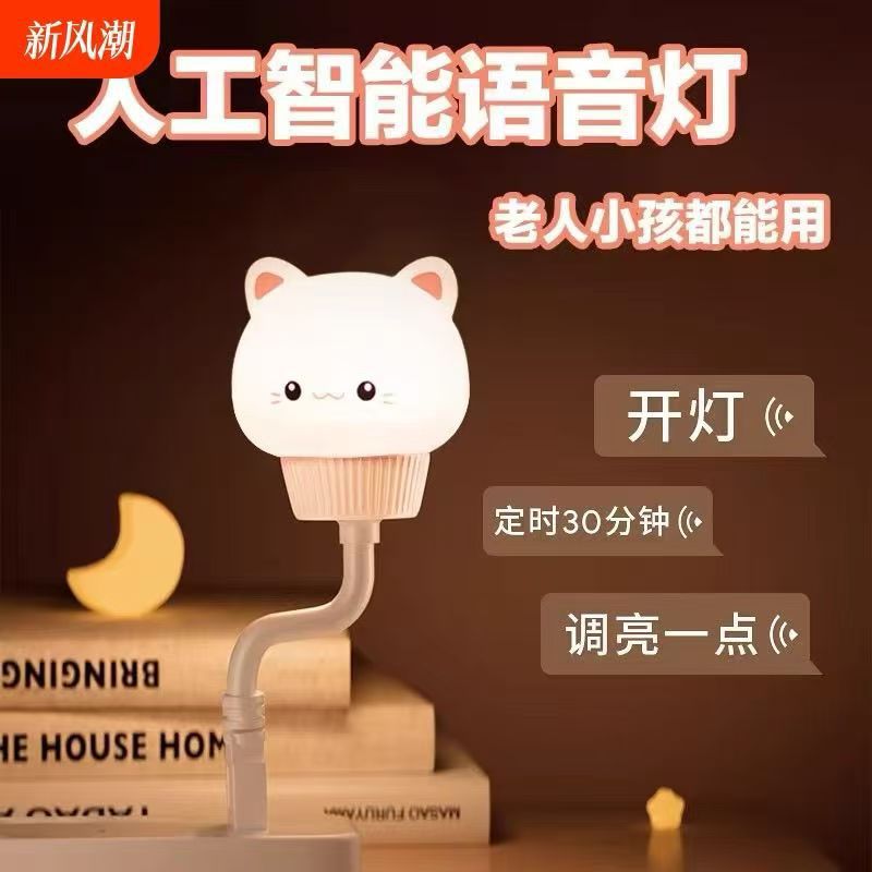 지능형 음성 제어 새끼 고양이 USB 침실 머리맡 음성 제어 부드러운 빛 야간 조명 야간 수유 수면 야간 조명