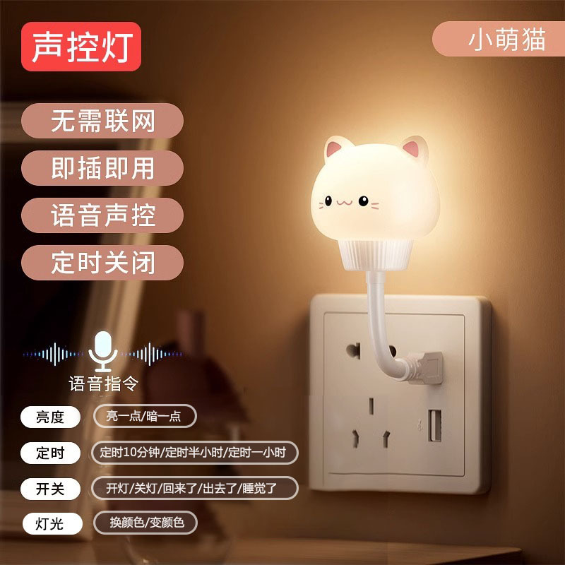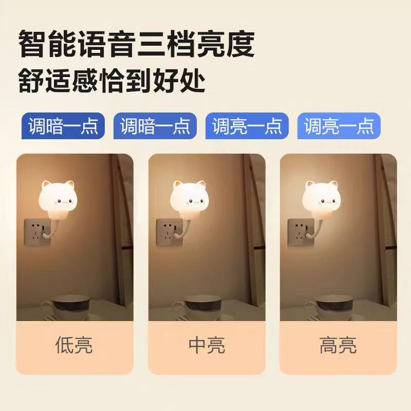 지능형 음성 제어 새끼 고양이 USB 침실 머리맡 음성 제어 부드러운 빛 야간 조명 야간 수유 수면 야간 조명스토어 가기