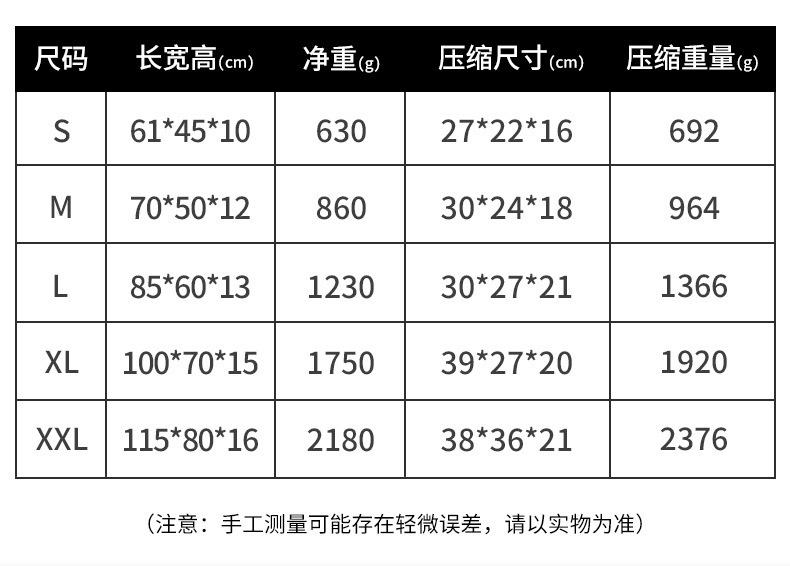 • XXL(115X80X16cm)