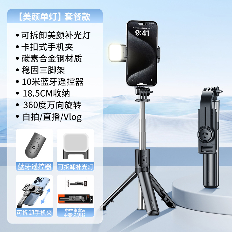 • 【F01D-Black- 67cm 】스테인리스 스틸 샤프트 + 안정적인 삼각대 + 블루투스 리모컨 + 듀얼 필 라이트