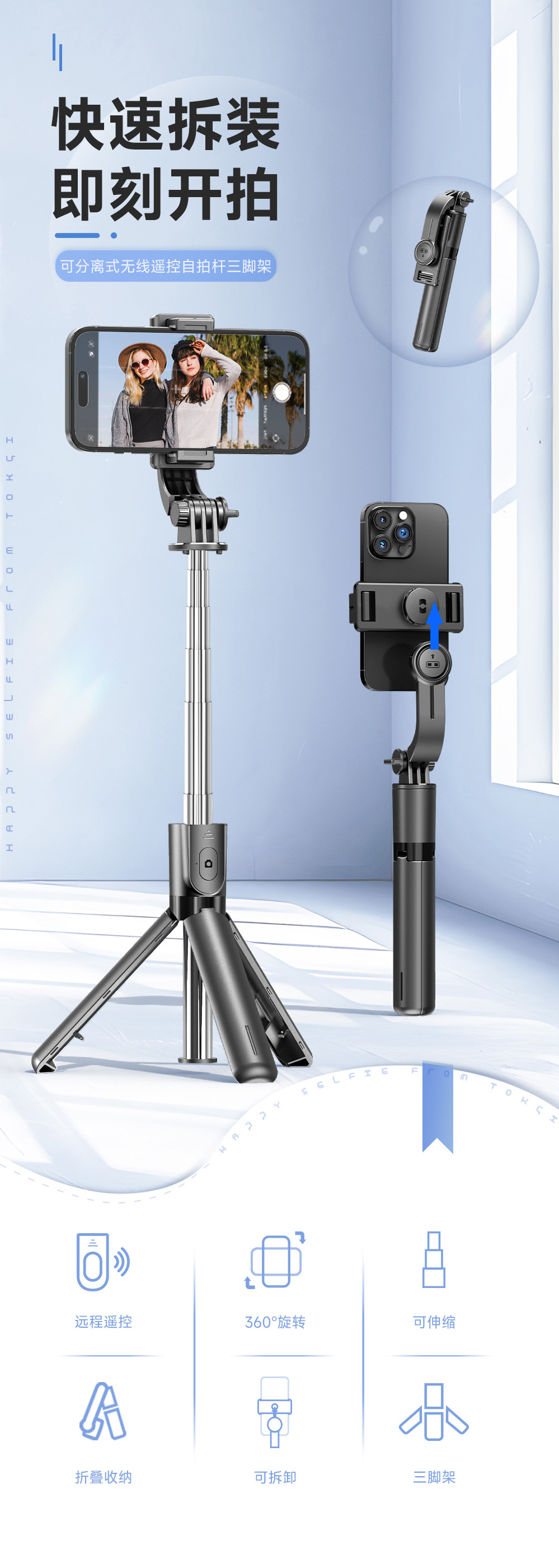 휴대 전화 셀카 스틱 미니 휴대 전화 삼각대 스탠드 휴대용 사진 라이브 방송 유물 여행 휴대용 블루투스 개폐식스토어 가기