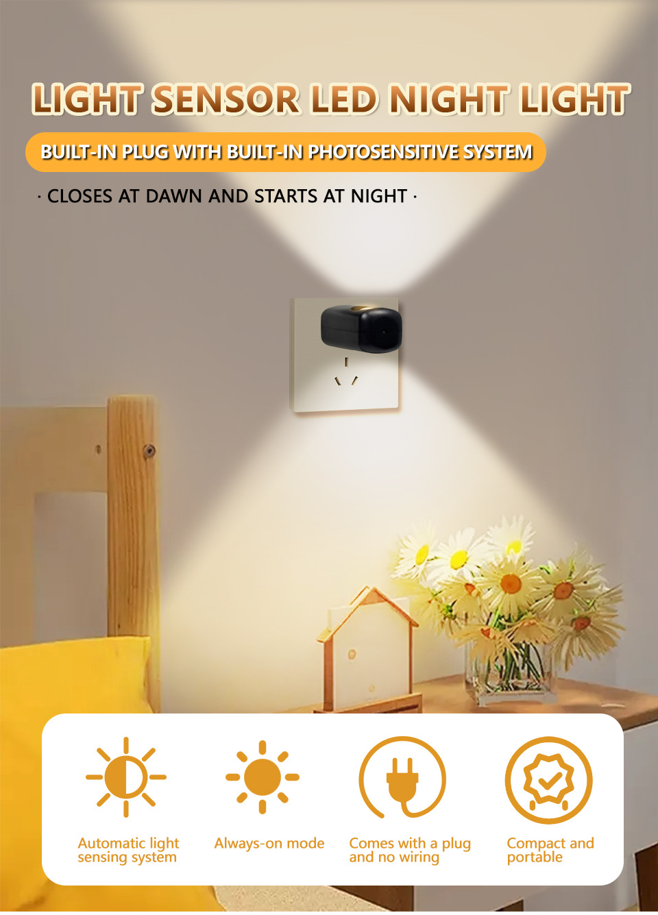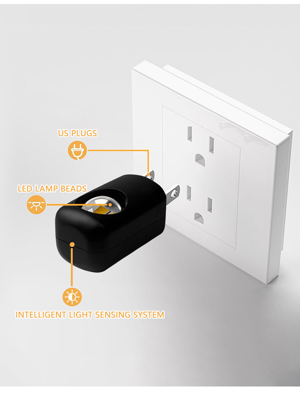 대외 무역 미니 조명 제어 손가락 램프 플러그인 벽 침실 수면 램프 LED 에너지 절약 야간 조명 플러그 회전 가능