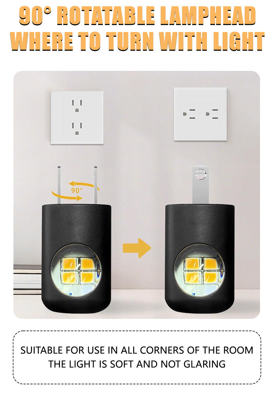 대외 무역 미니 조명 제어 손가락 램프 플러그인 벽 침실 수면 램프 LED 에너지 절약 야간 조명 플러그 회전 가능스토어 가기