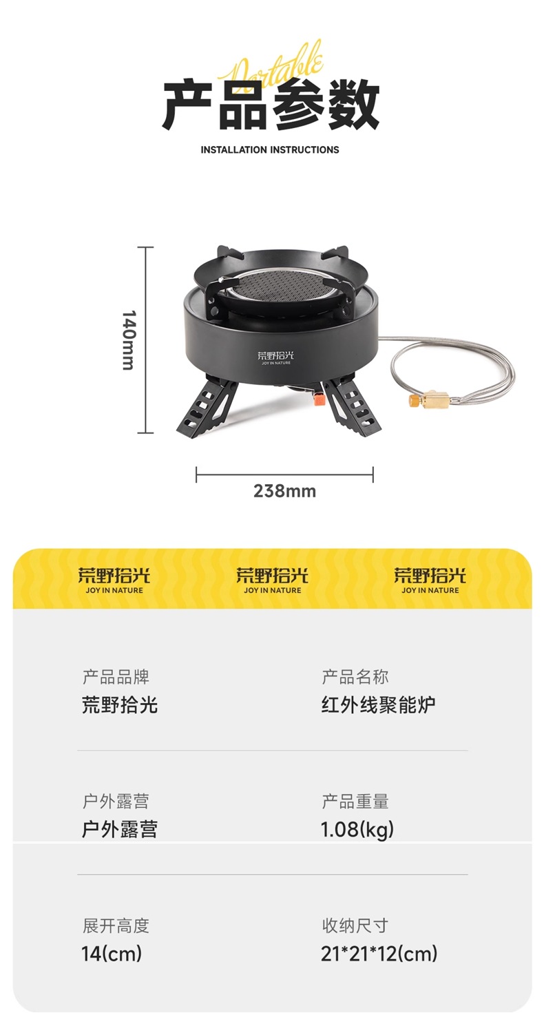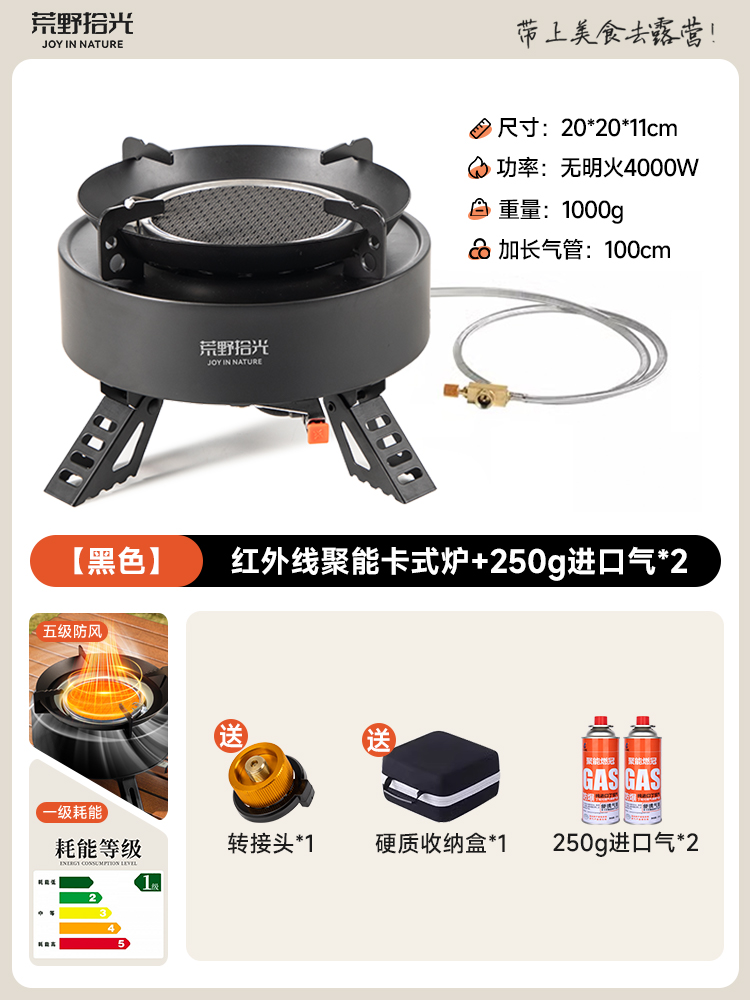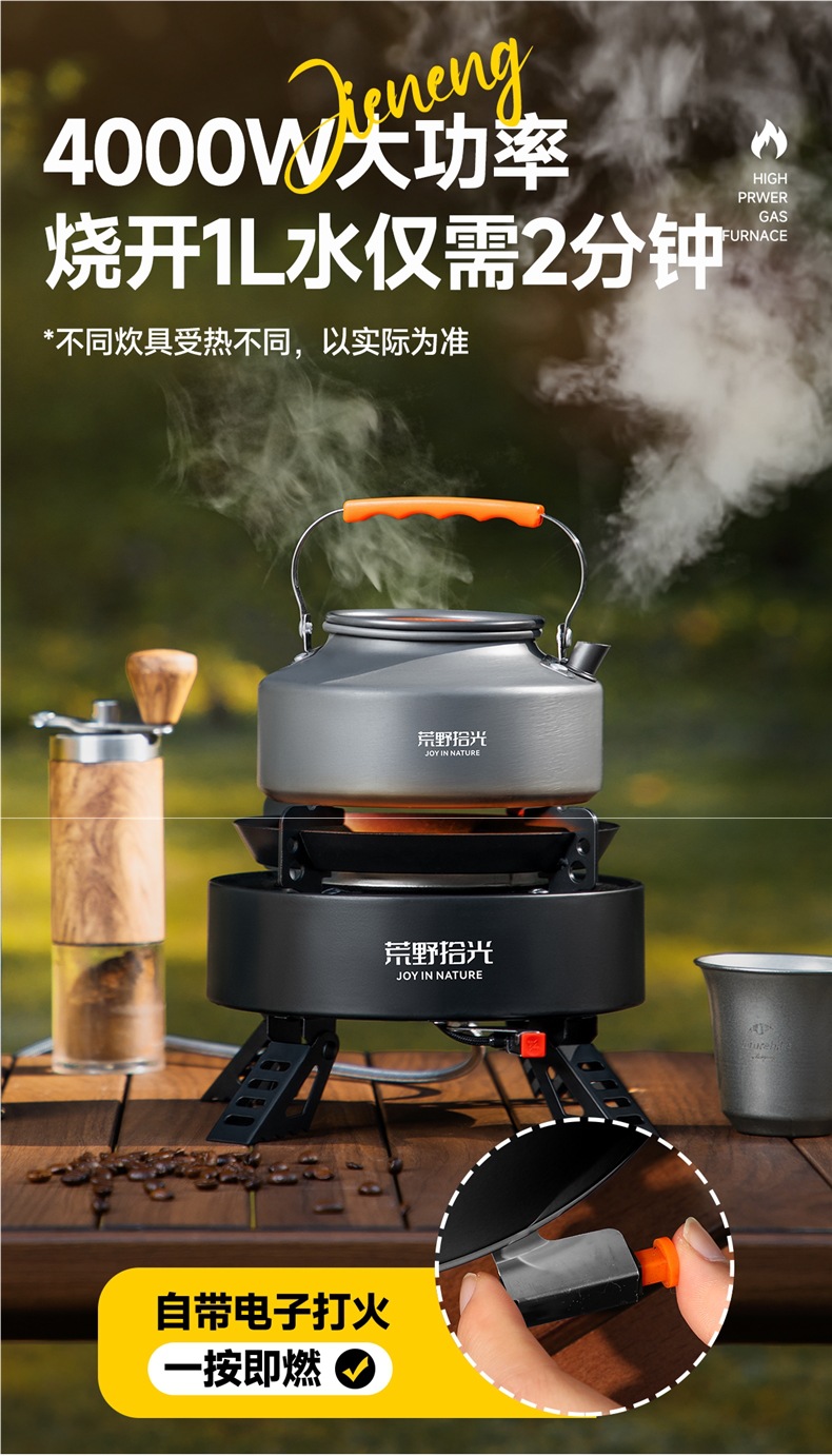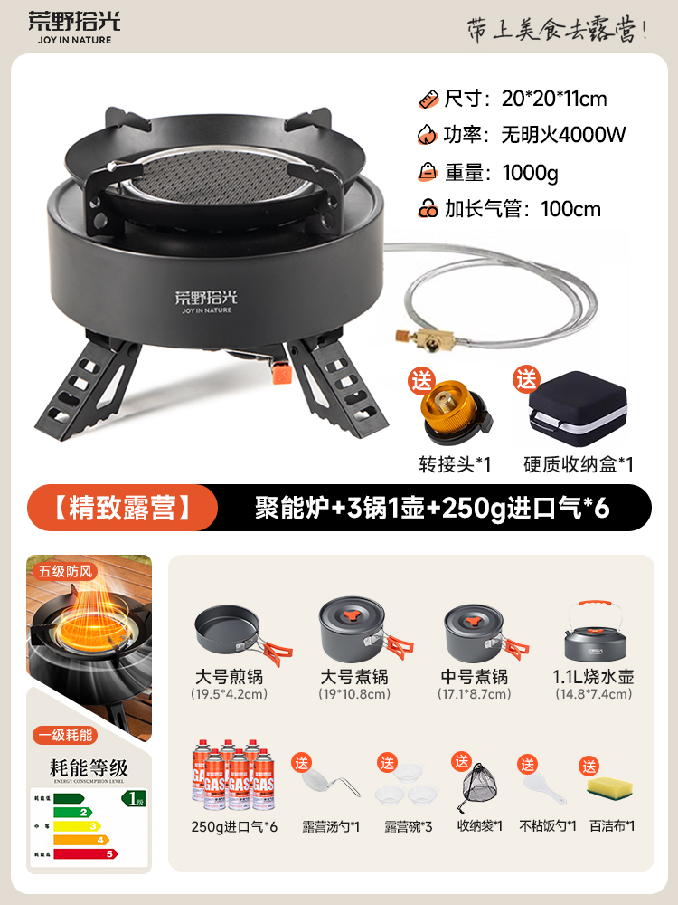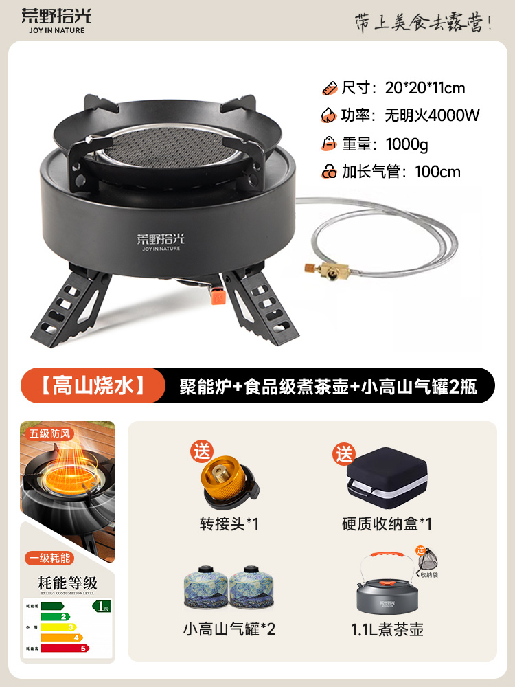 • [산 물 끓이기] 에너지 수집 난로 + 식품 등급 찻주전자 1.1L + 소형 산 가스 탱크 2병
