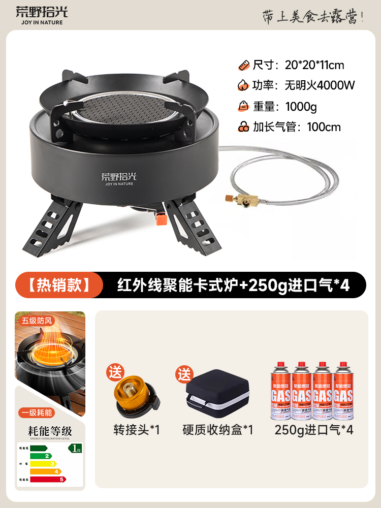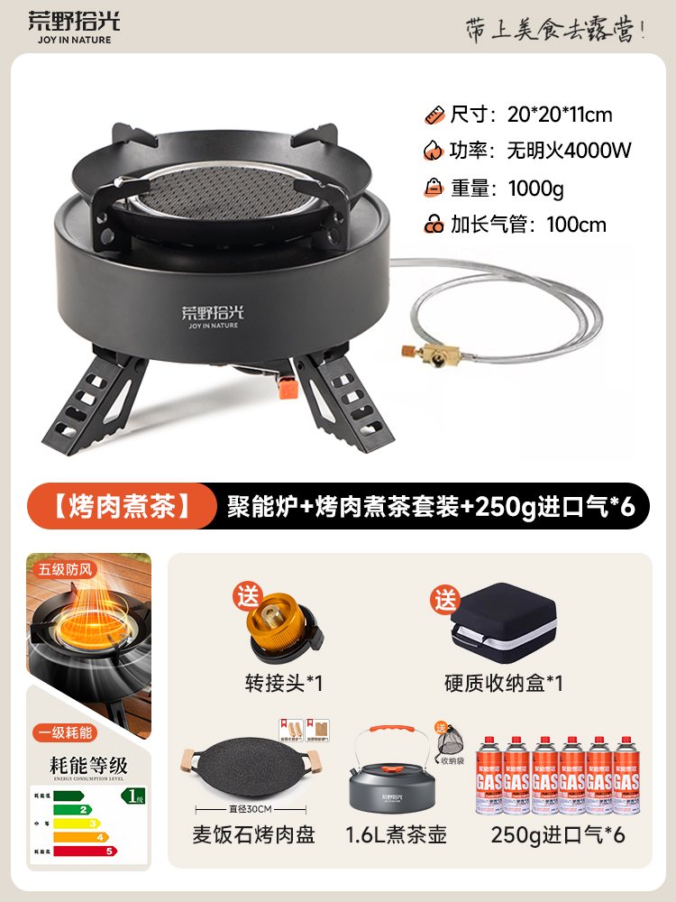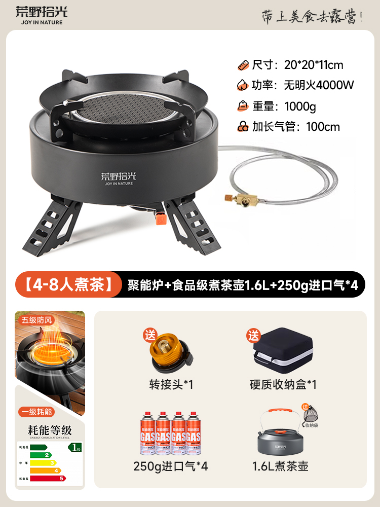• [1~3인용 차 만들기] 에너지 수집 스토브 + 식품등급 찻주전자 + 방폭 가스통 4병
