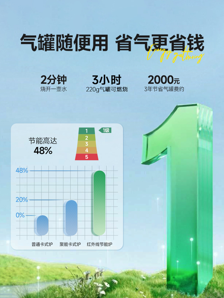 • 냄비 1개 물 끓이는 데 2분 + 방풍 5단계 + 에너지 절약 48%