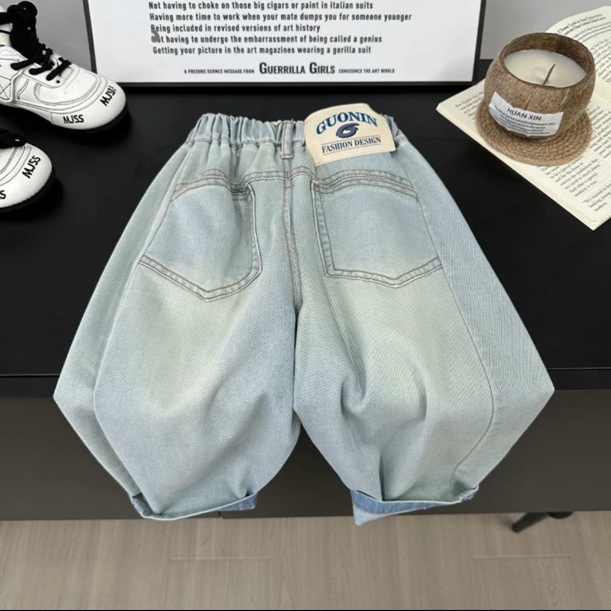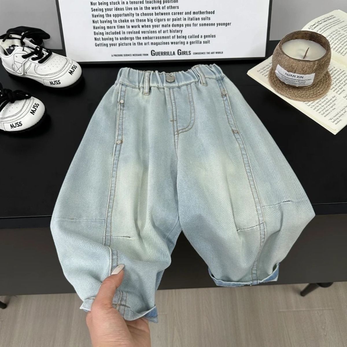 2025 새로운 여름 유행 소년 밝은 색상 청바지 어린이 느슨한 청바지 소녀 얇은 부드러운 청바지스토어 가기