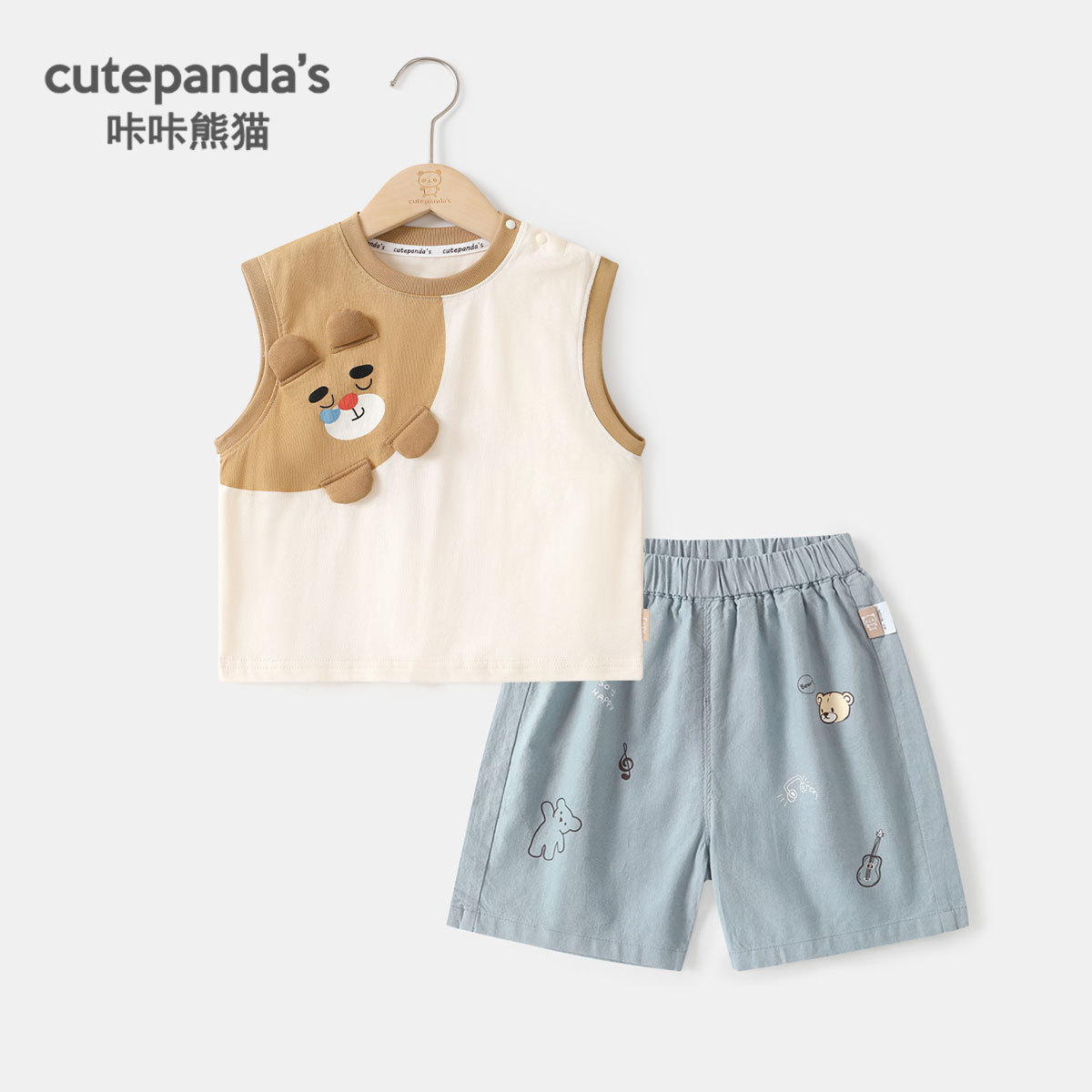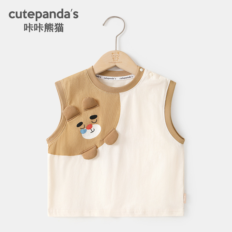Kaka Panda 어린이 조끼 반바지 소년 정장 소녀 여름 캐주얼 여름 옷 아기 옷 아기 아동복스토어 가기
