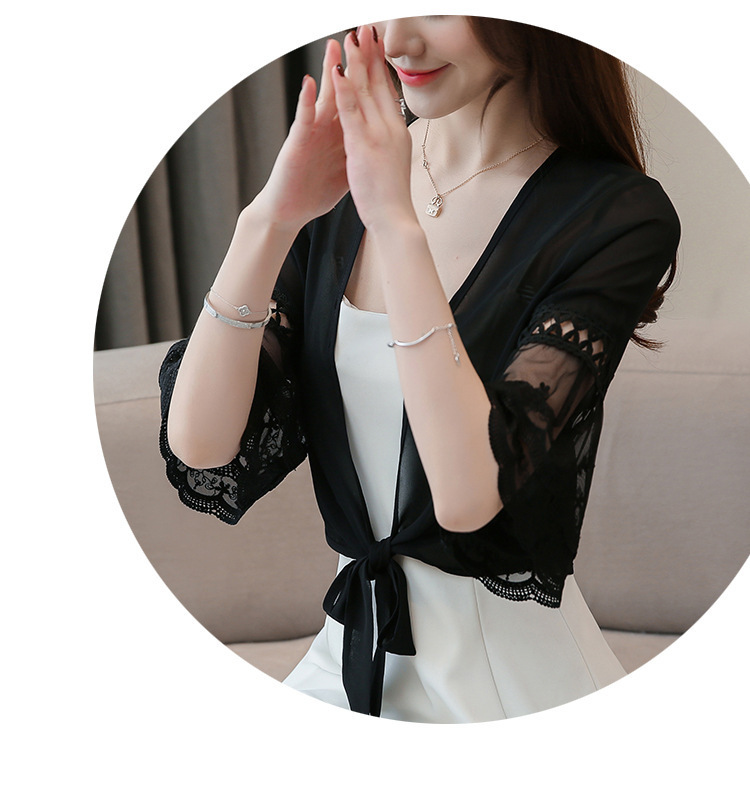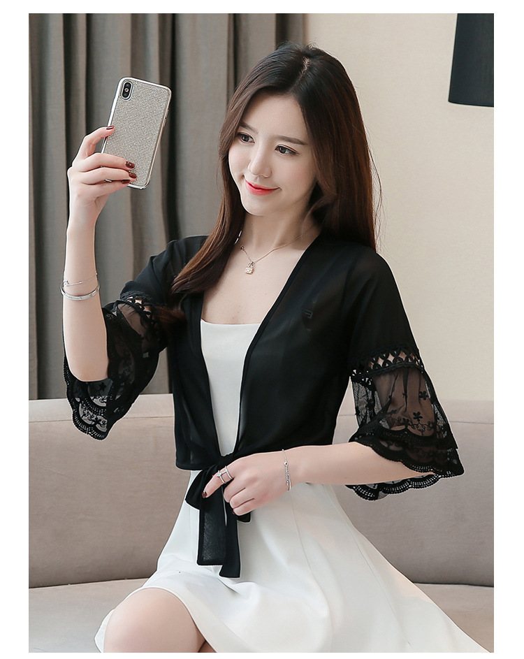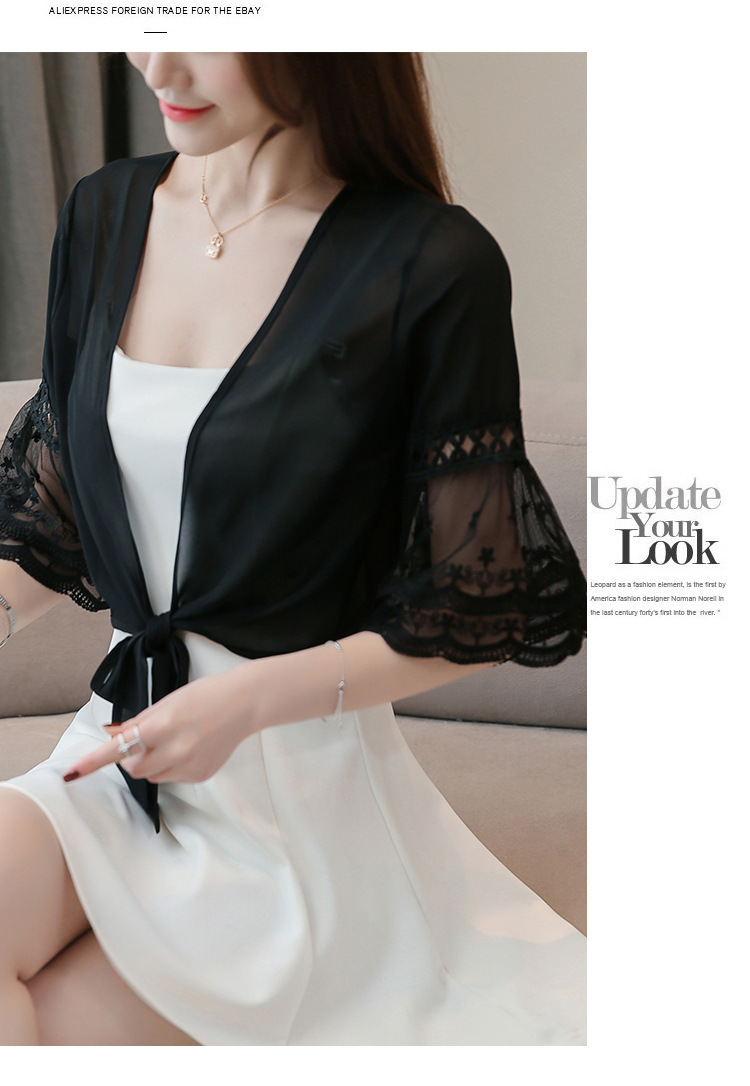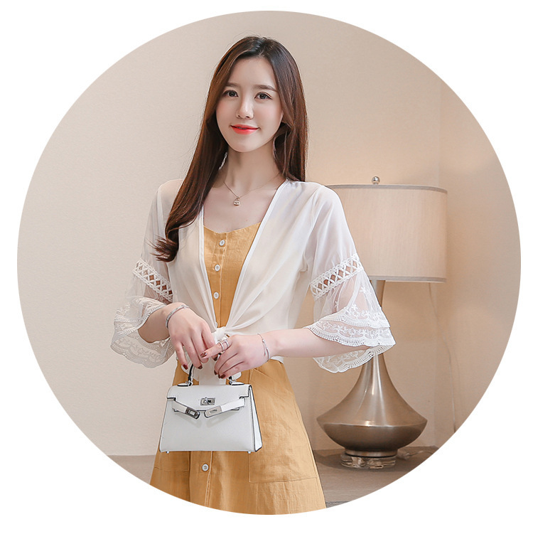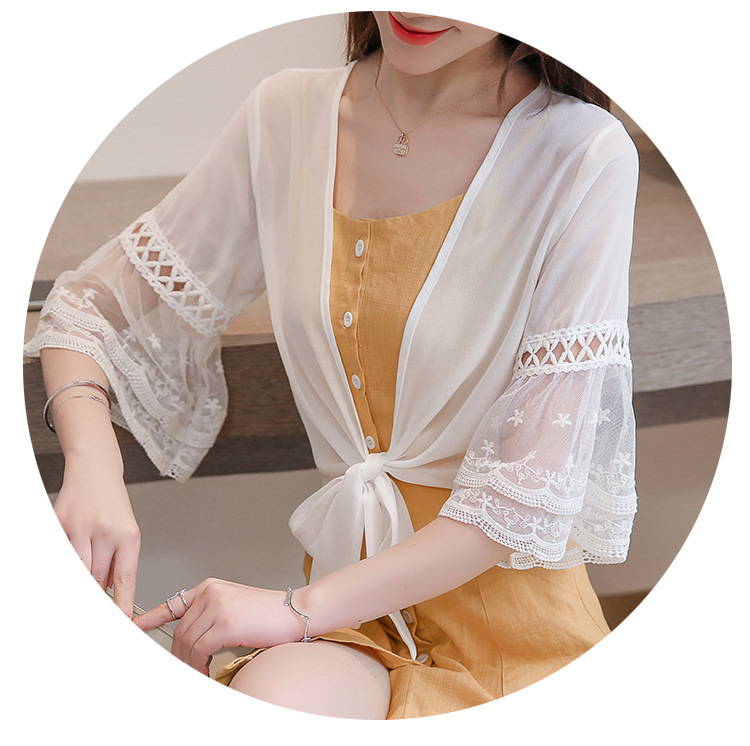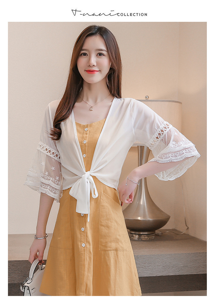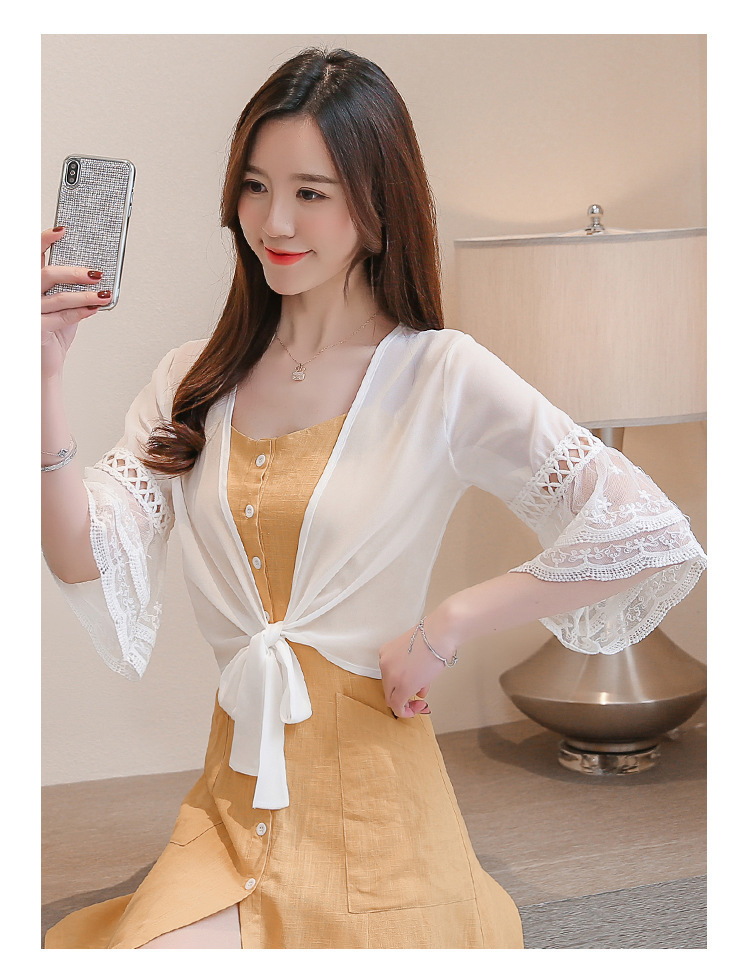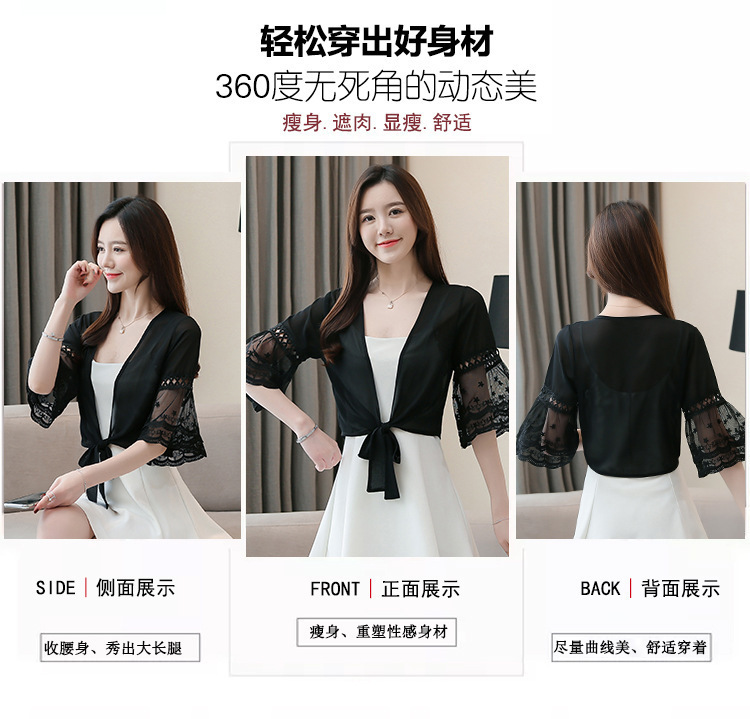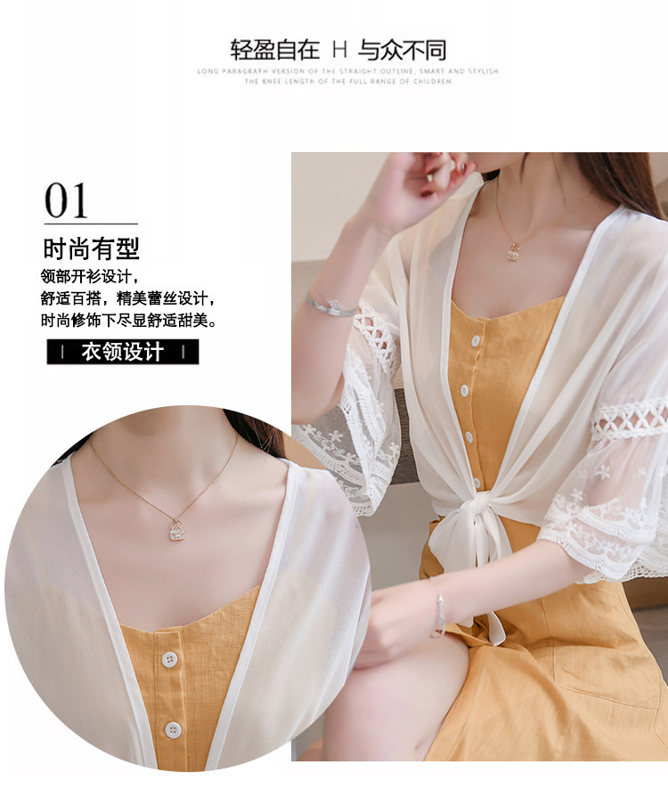 여름 아우터 얇은 가디건 여성용 반팔 자외선 차단 의류 레이스 다용도 작은 양복 조끼와 서스펜더 스커트 쉬폰 탑