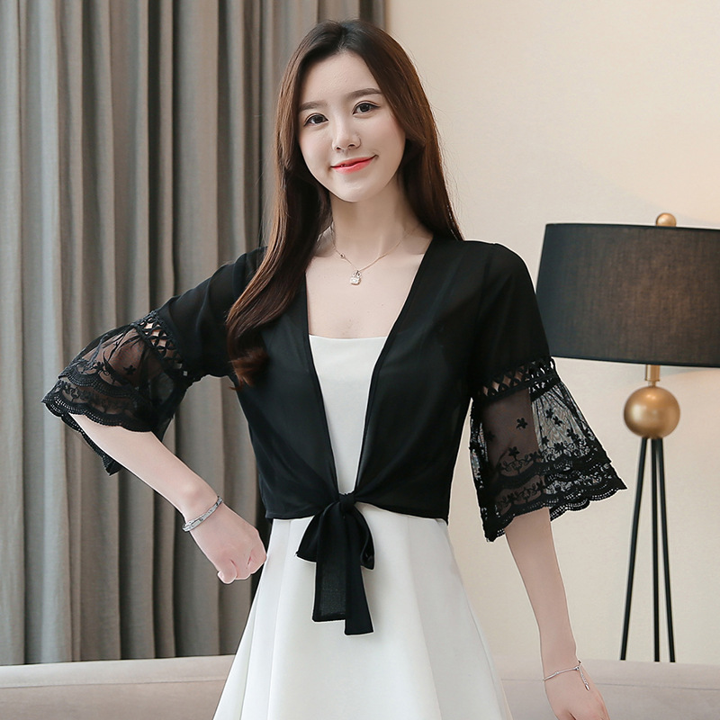 여름 아우터 얇은 가디건 여성용 반팔 자외선 차단 의류 레이스 다용도 작은 양복 조끼와 서스펜더 스커트 쉬폰 탑스토어 가기