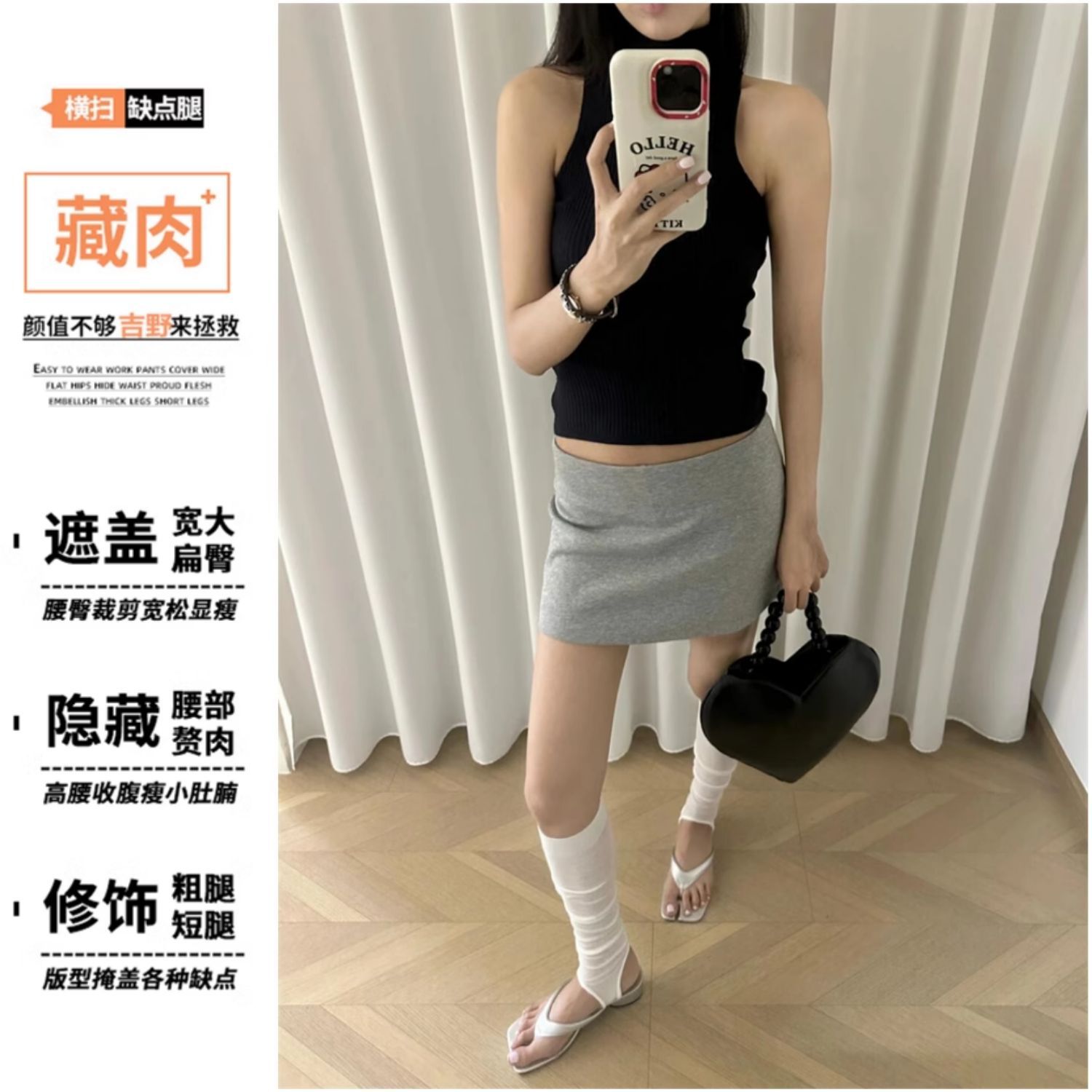 뚱뚱한 mm 블랙 a 라인 힙 스커트 여성 2025 여름 작은 꽉 섹시한 노출 방지 울트라 짧은 스커트스토어 가기