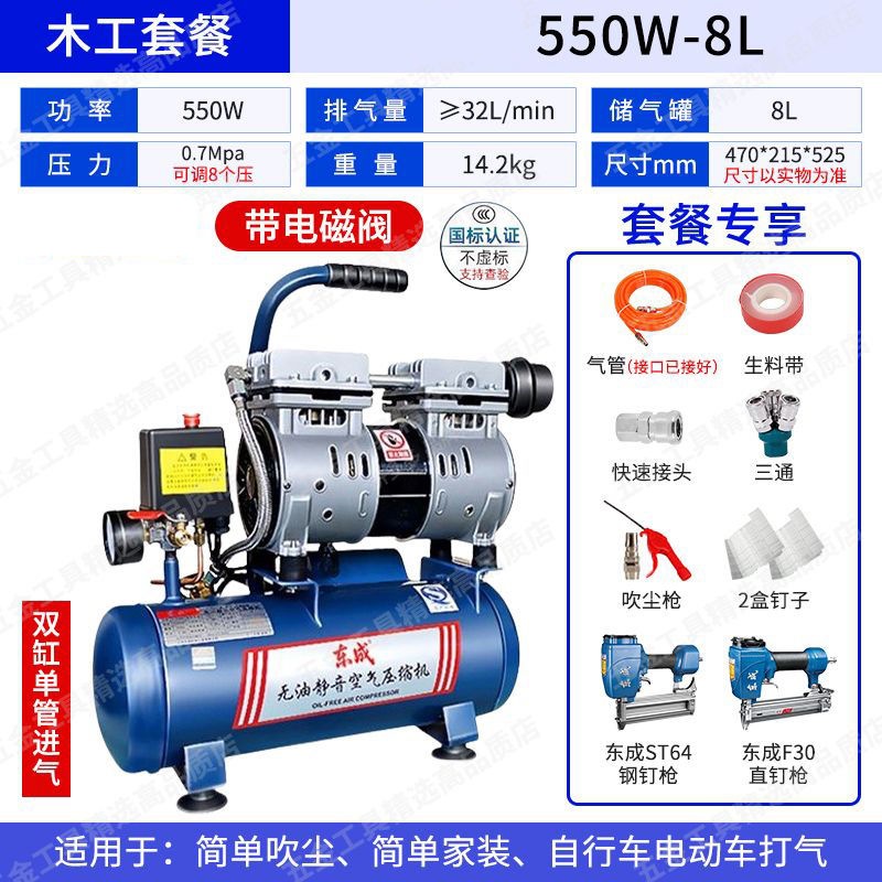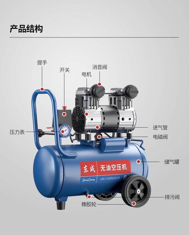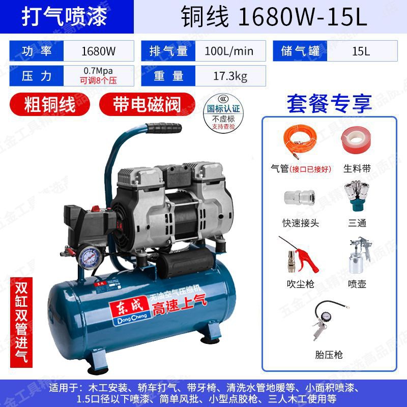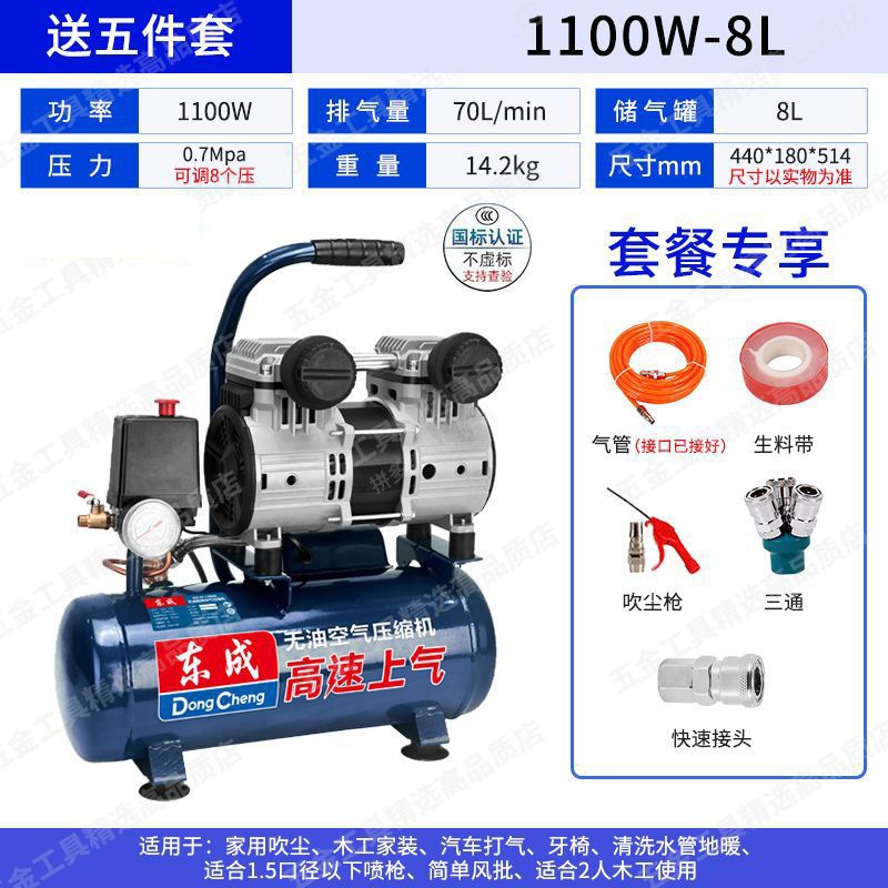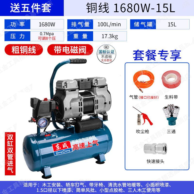 Dongcheng 공기 펌프 공기 압축기 220V 미니 소형 오일 프리 소음기 목공 가정용 휴대용 공기 압축기