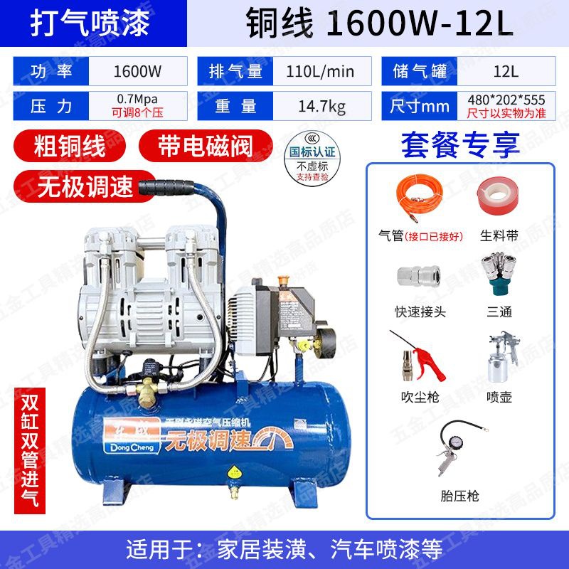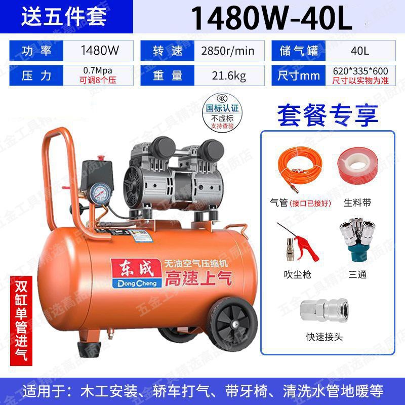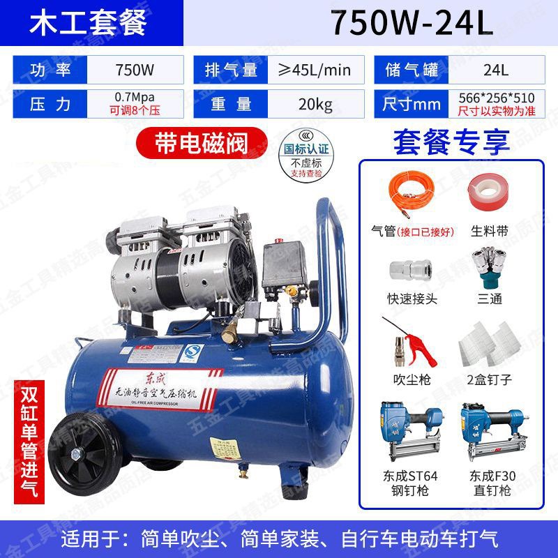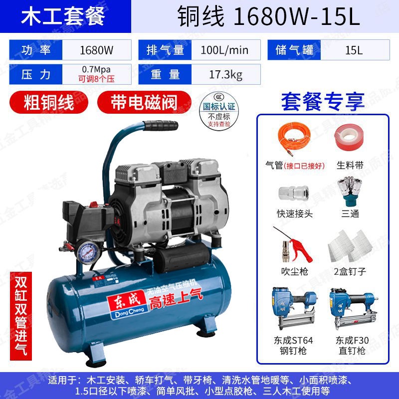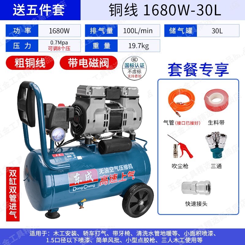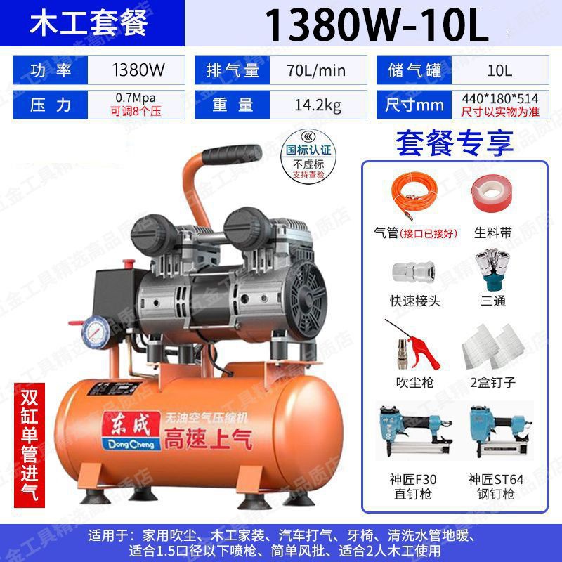 Dongcheng 공기 펌프 공기 압축기 220V 미니 소형 오일 프리 소음기 목공 가정용 휴대용 공기 압축기