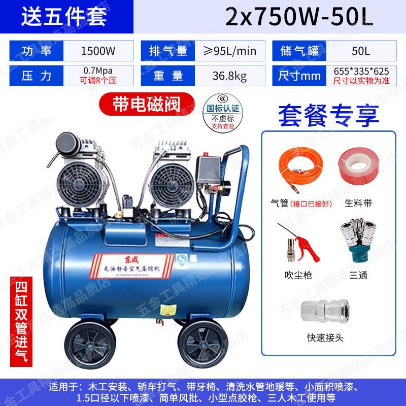 Dongcheng 공기 펌프 공기 압축기 220V 미니 소형 오일 프리 소음기 목공 가정용 휴대용 공기 압축기스토어 가기