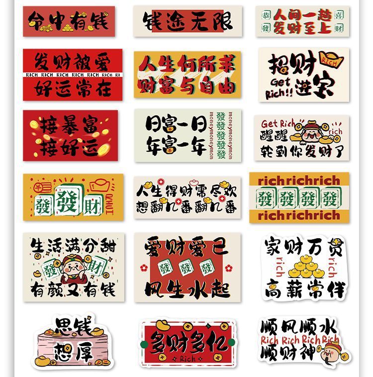 돈과 행운을 위한 독창적인 부 스티커 100개, 방수 DIY 핸드북, 휴대폰 케이스 및 노트북