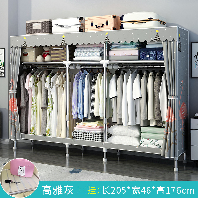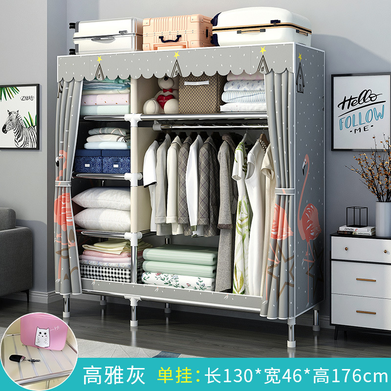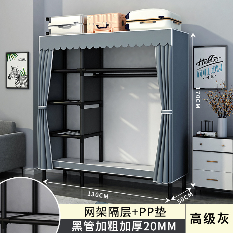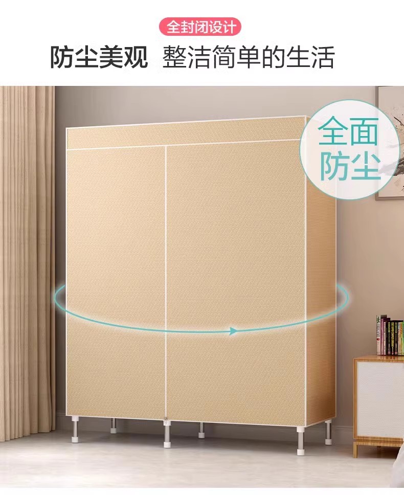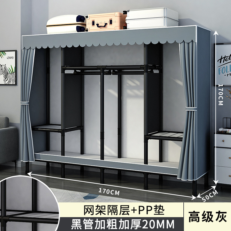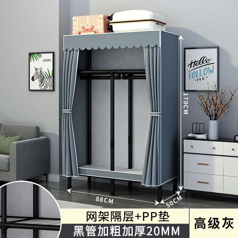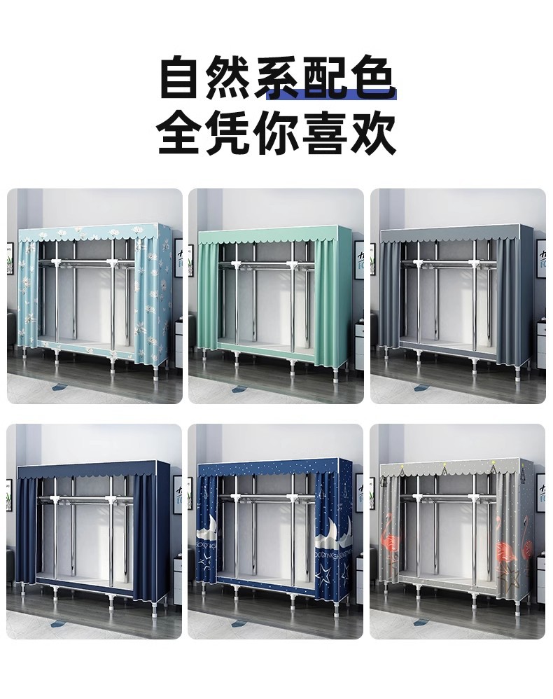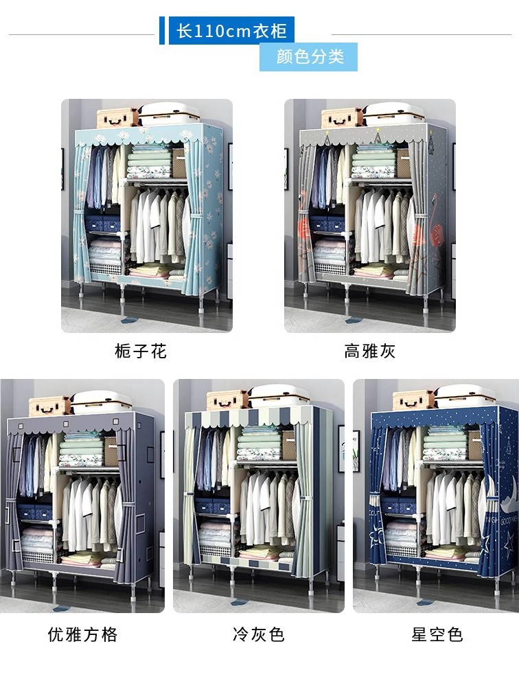 간단한 옷장 홈 침실 조립 천 옷장 강철 파이프 강력하고 내구성이 뛰어난 임대 주택 옷장 캐비닛 경제적스토어 가기