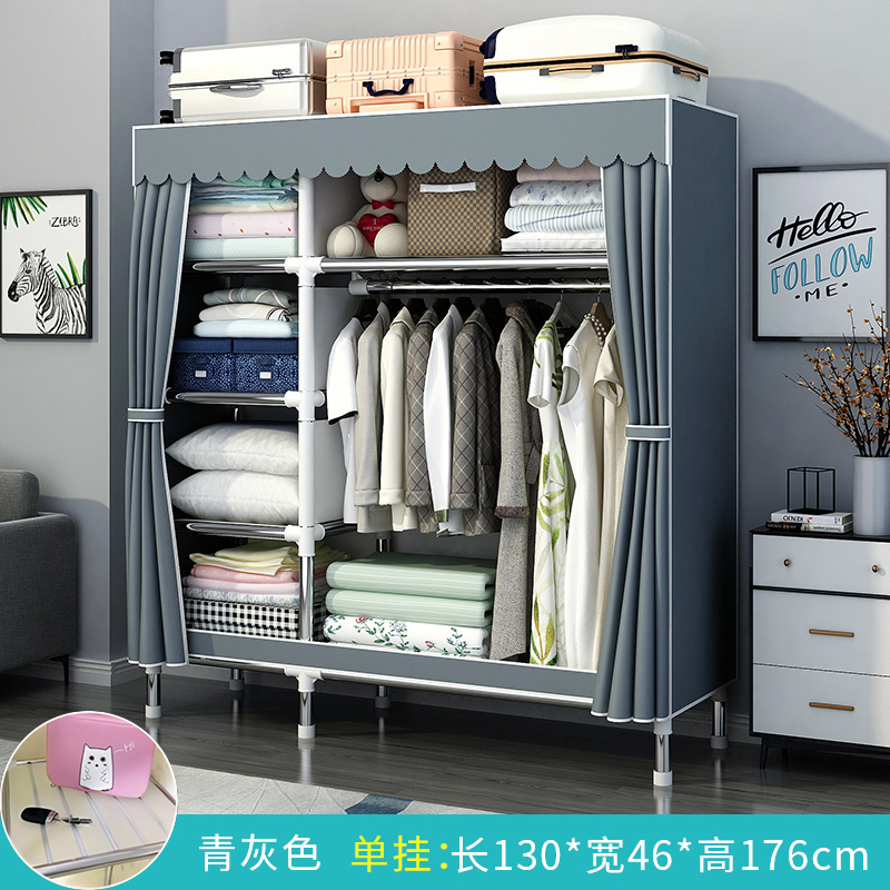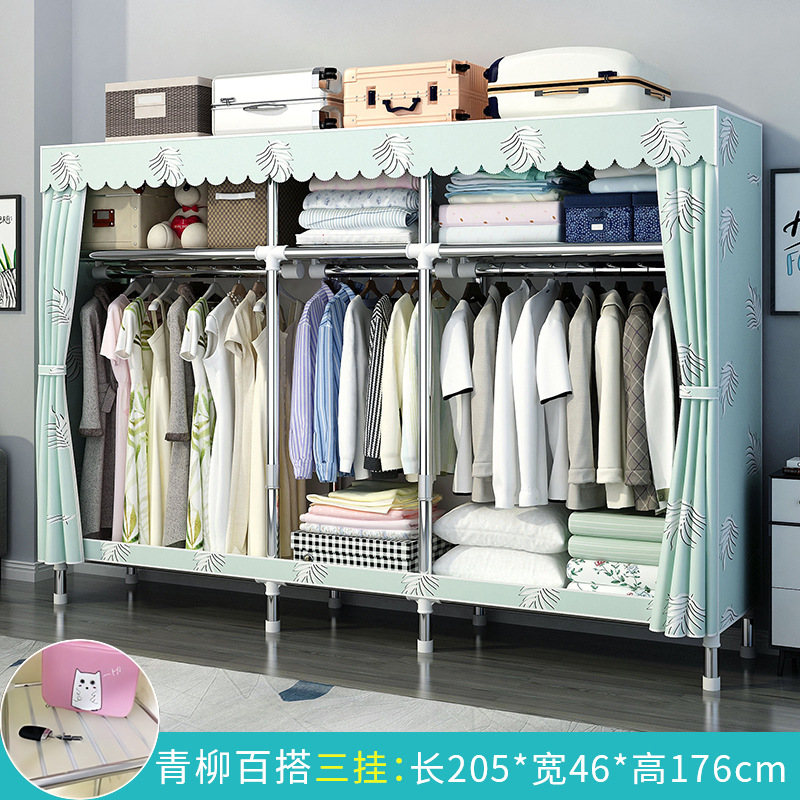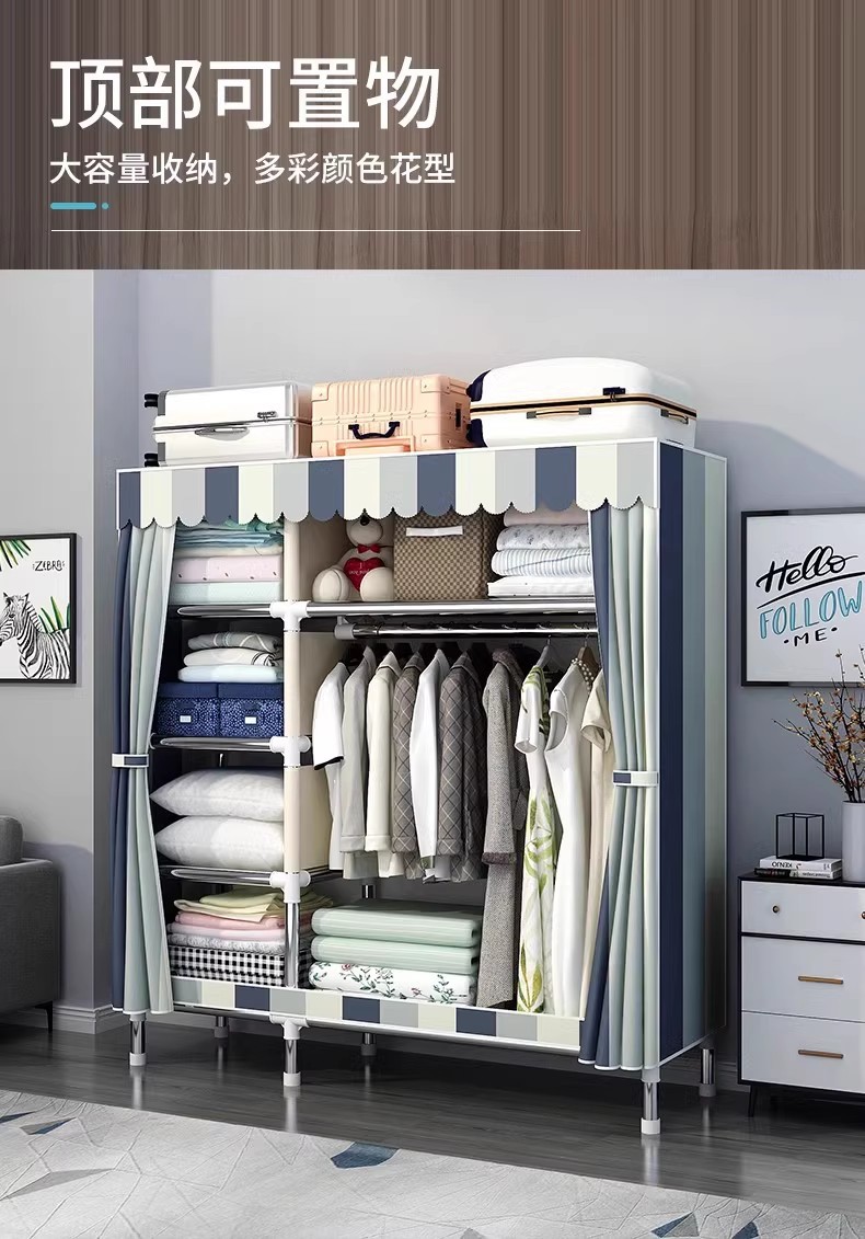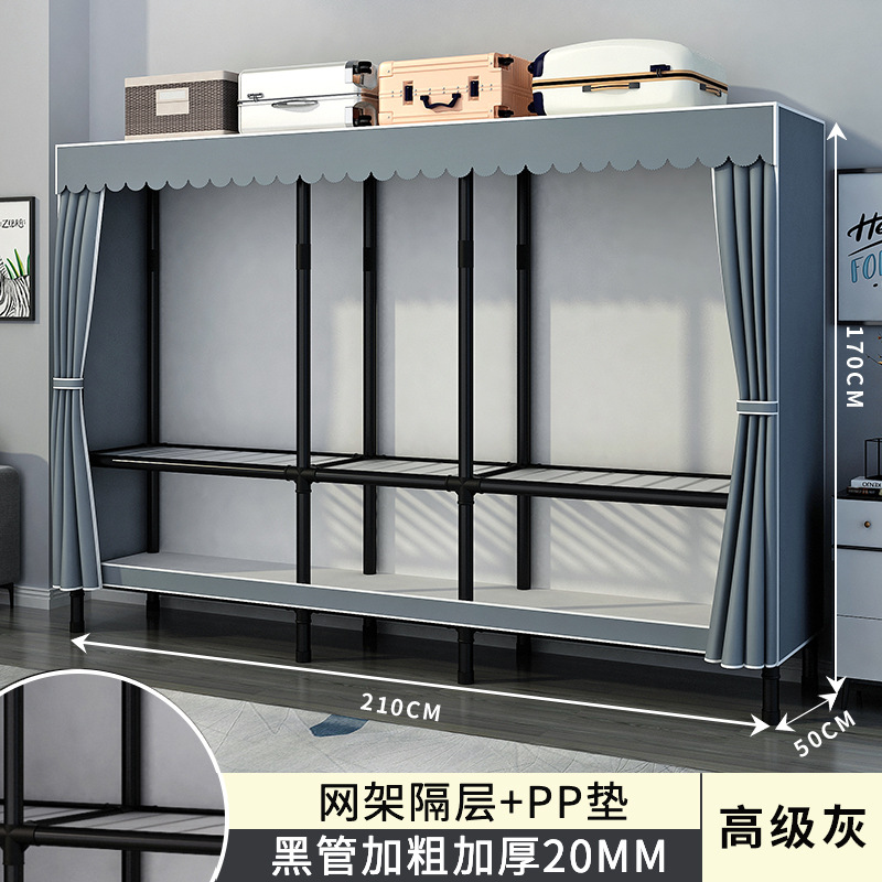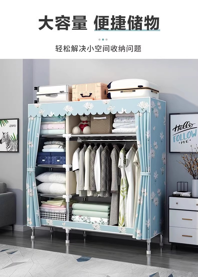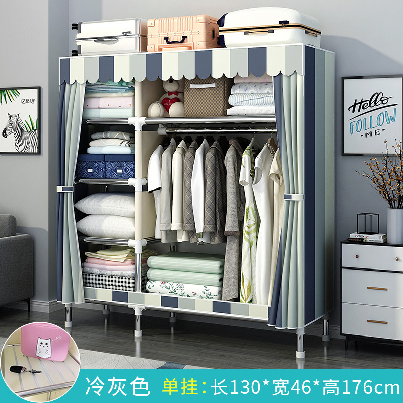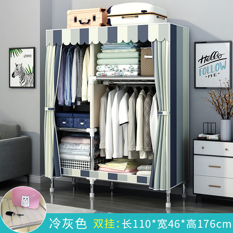 간단한 옷장 홈 침실 조립 천 옷장 강철 파이프 강력하고 내구성이 뛰어난 임대 주택 옷장 캐비닛 경제적스토어 가기