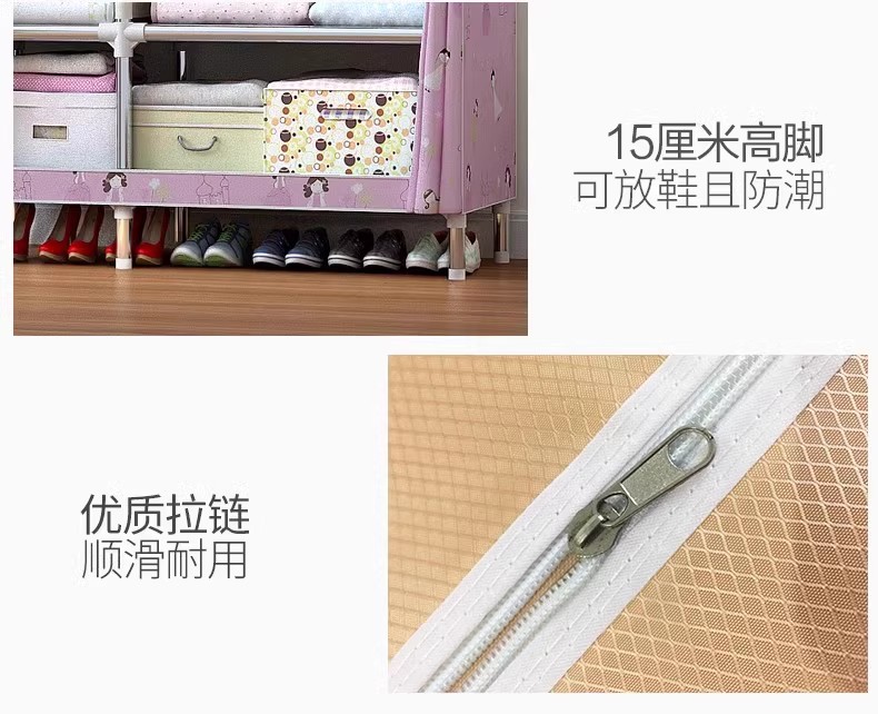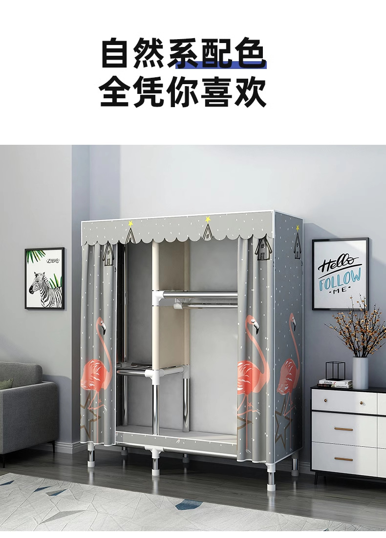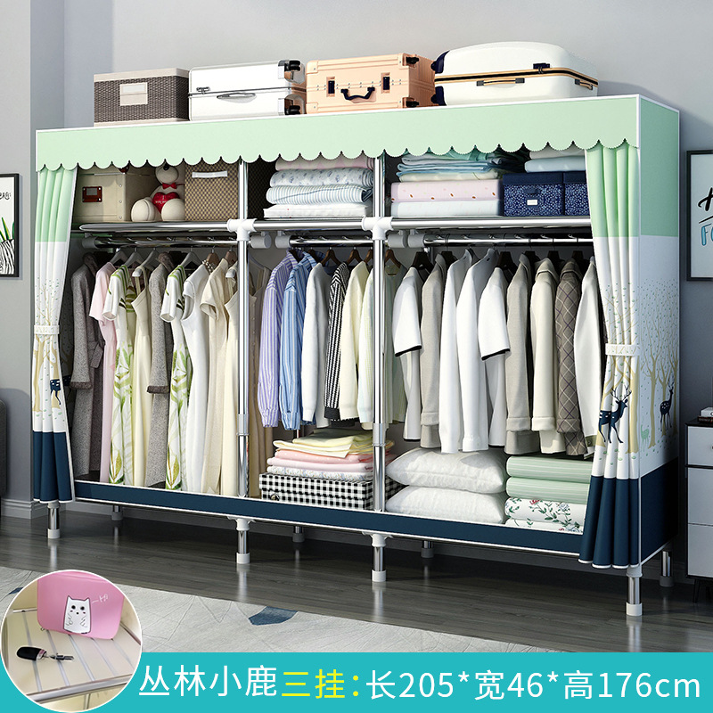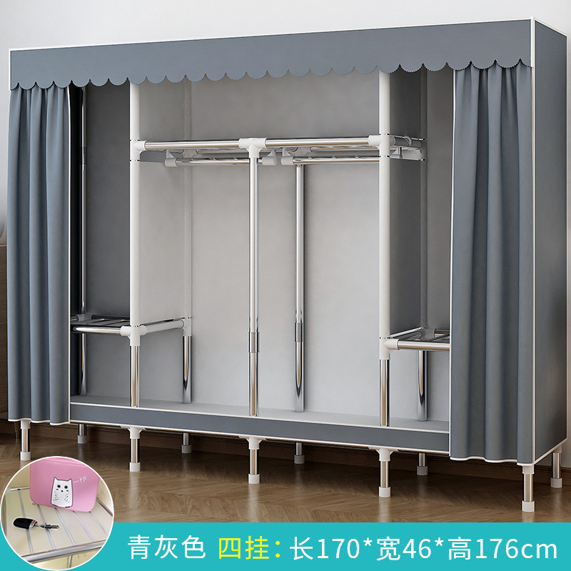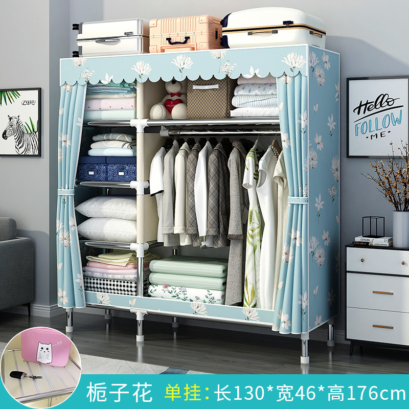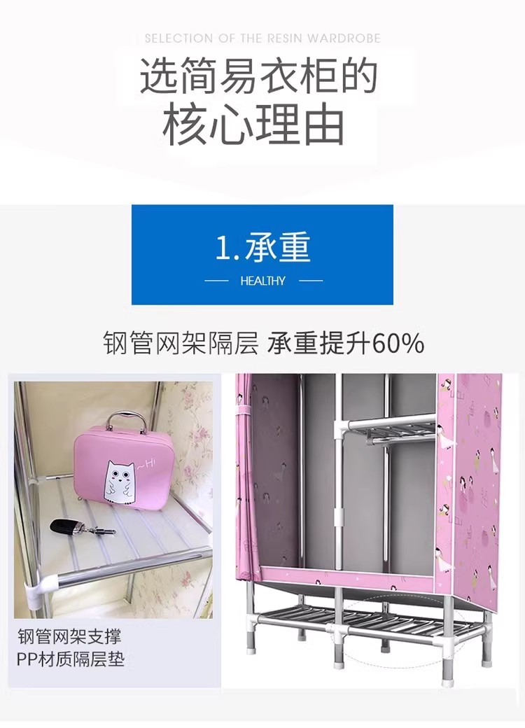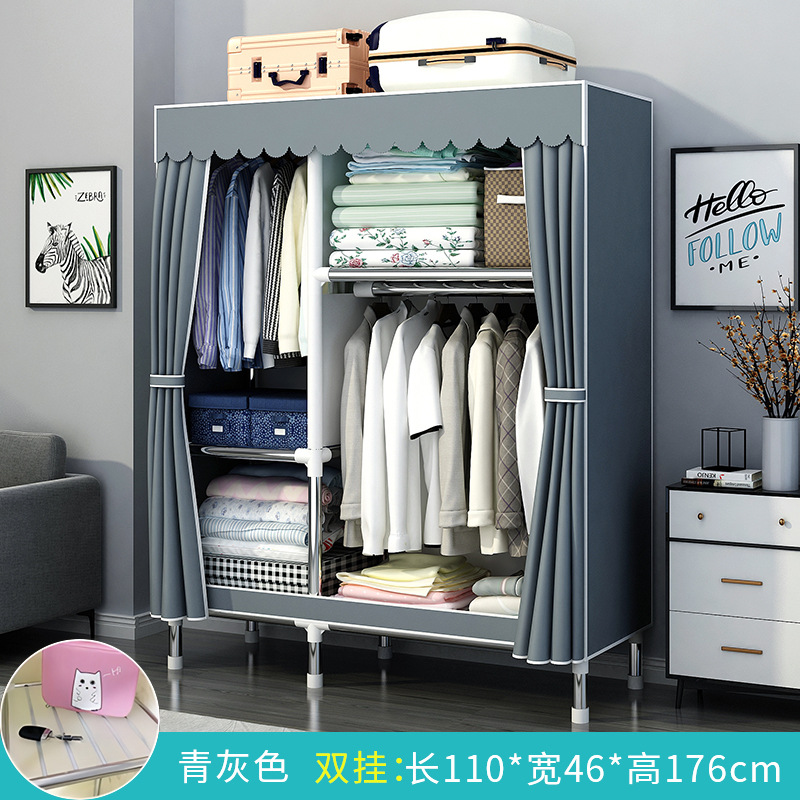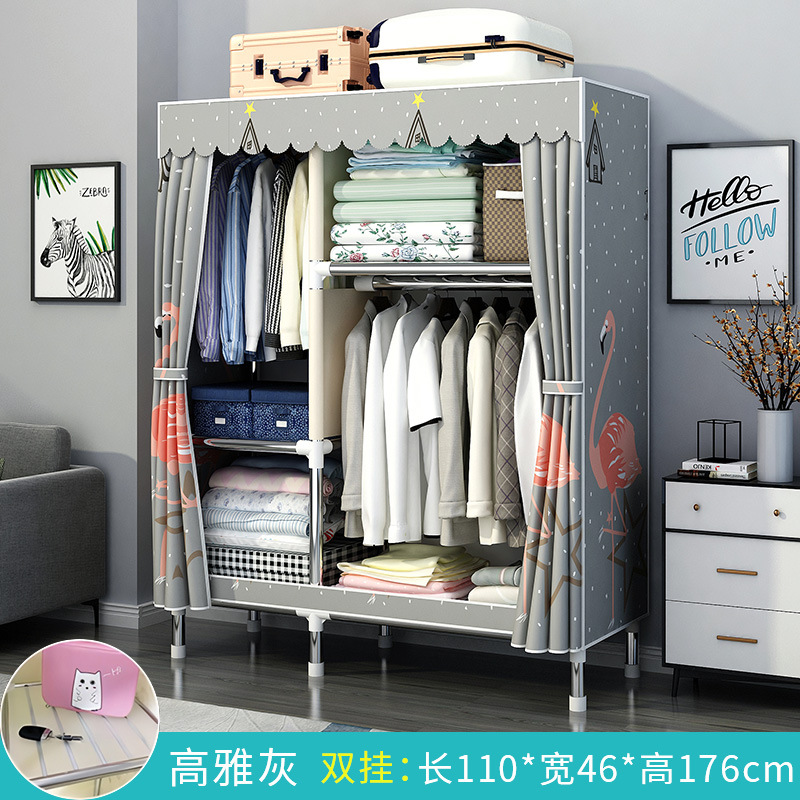 간단한 옷장 홈 침실 조립 천 옷장 강철 파이프 강력하고 내구성이 뛰어난 임대 주택 옷장 캐비닛 경제적스토어 가기