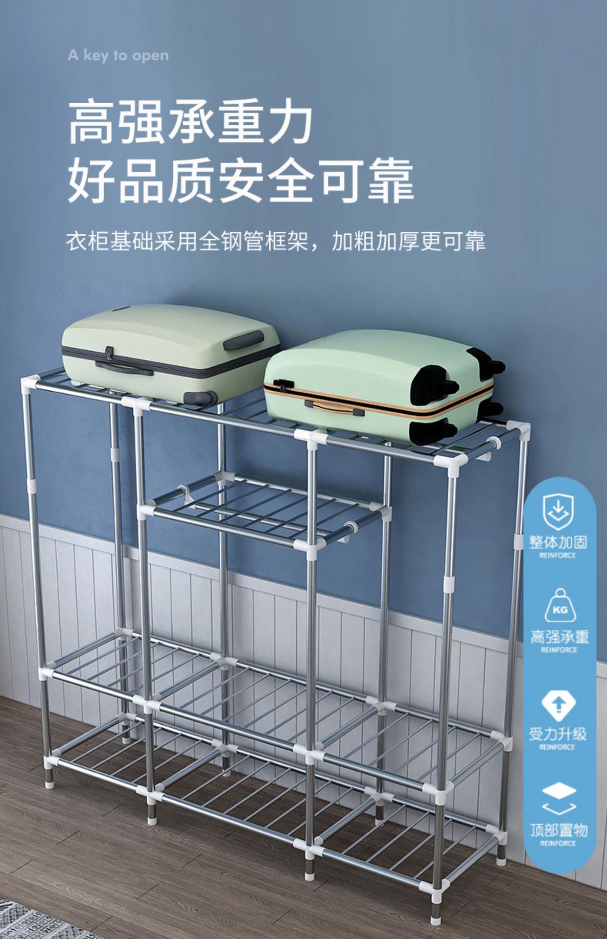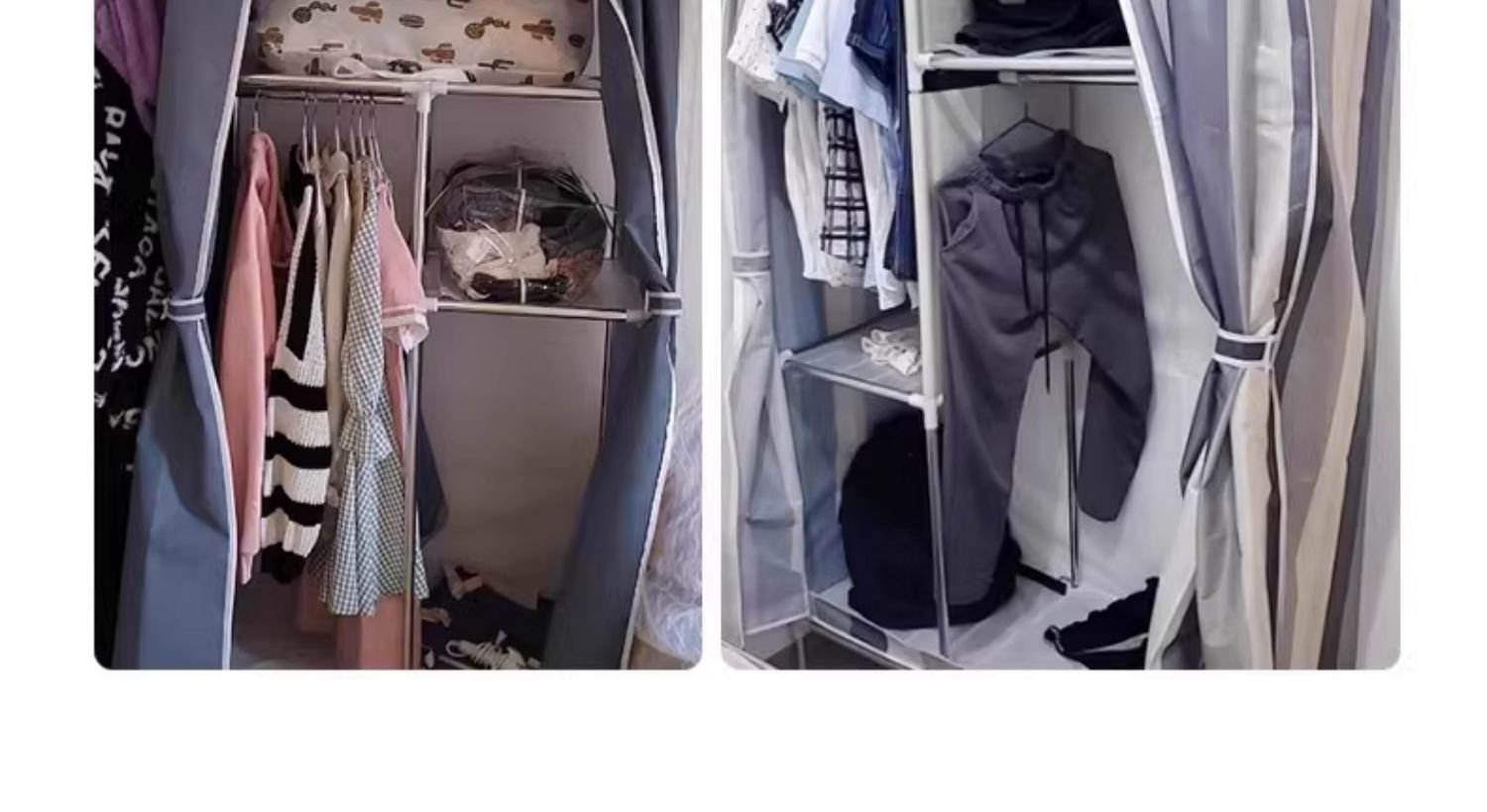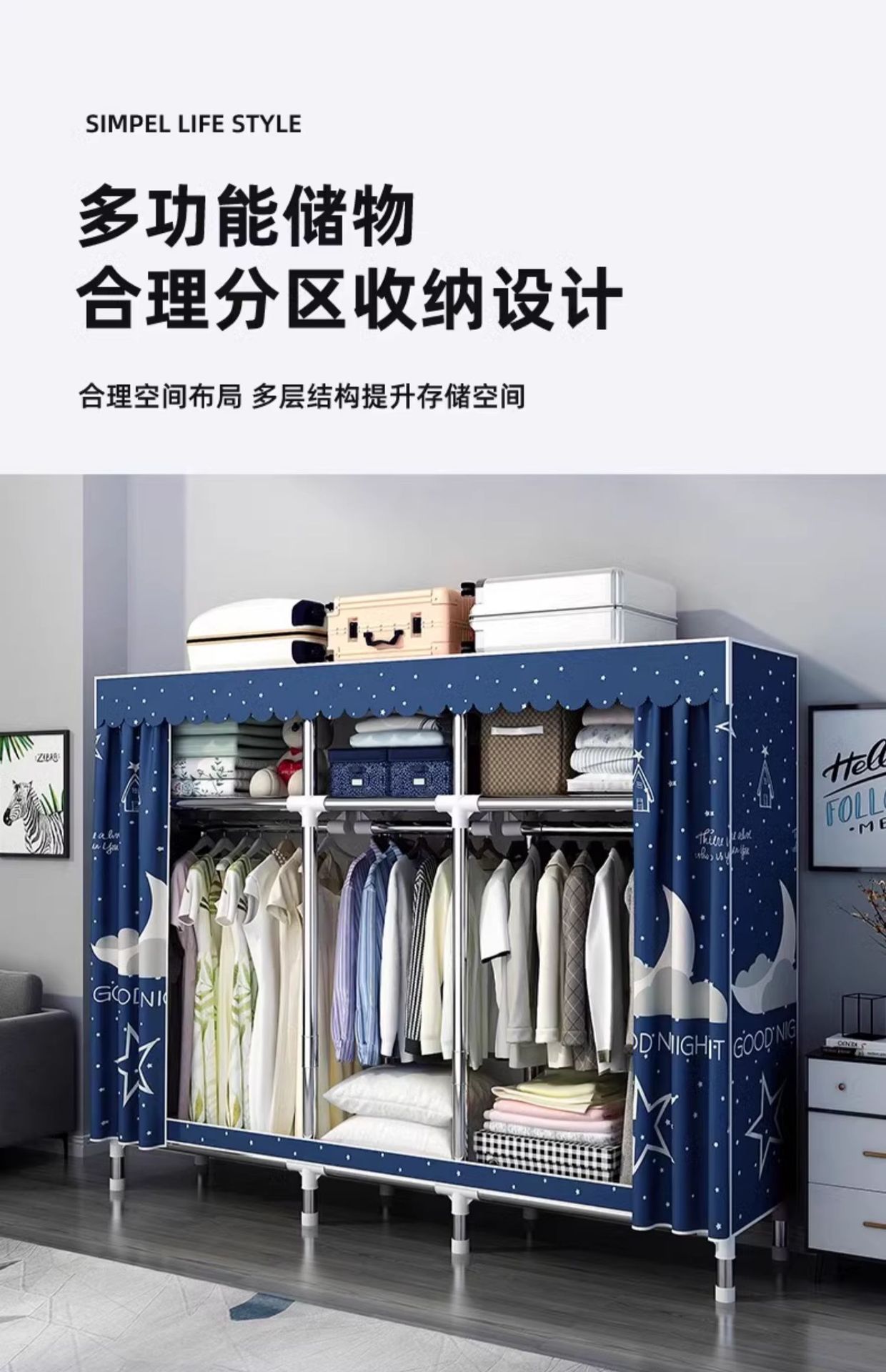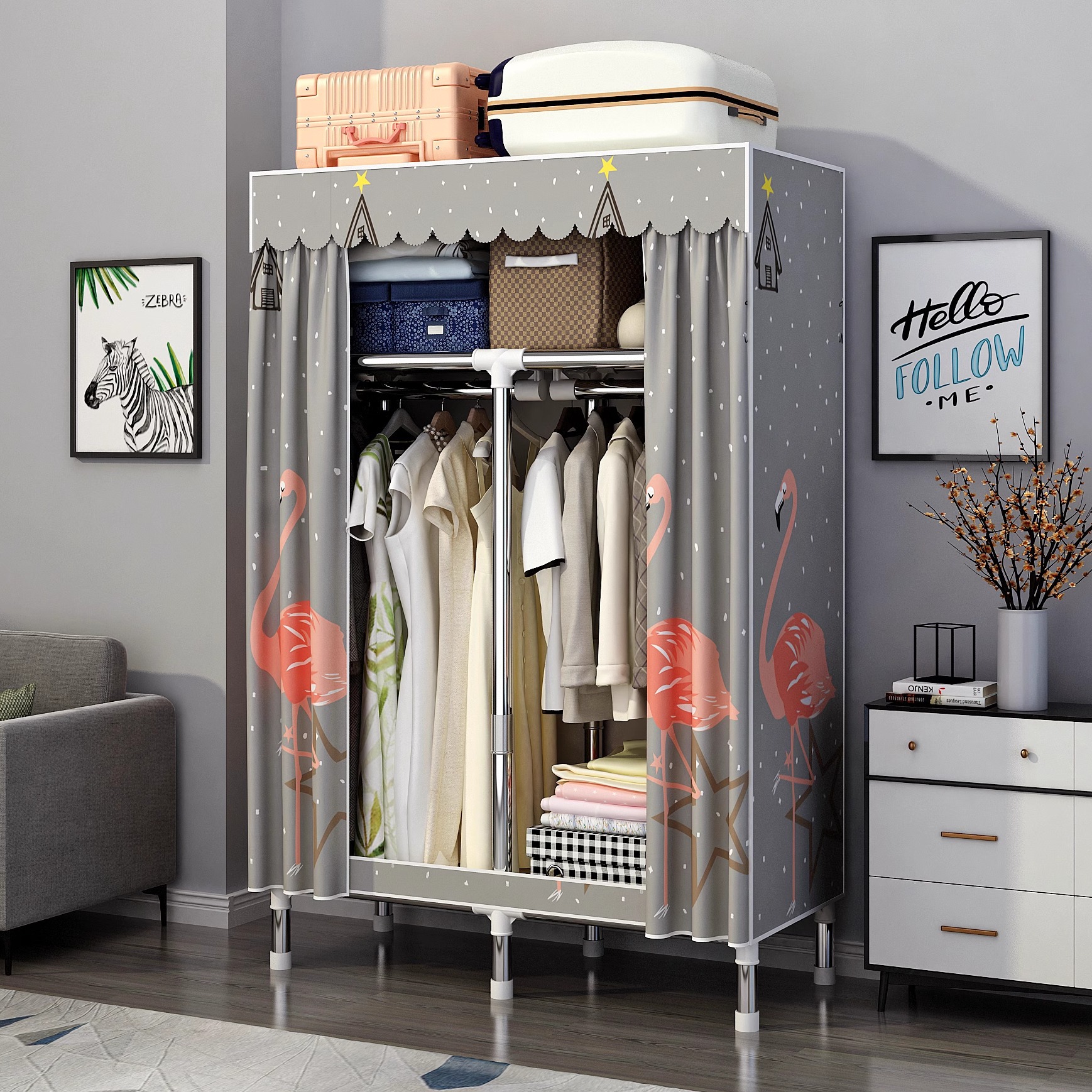간단한 옷장 홈 침실 조립 천 옷장 강철 파이프 강력하고 내구성이 뛰어난 임대 주택 옷장 캐비닛 경제적스토어 가기