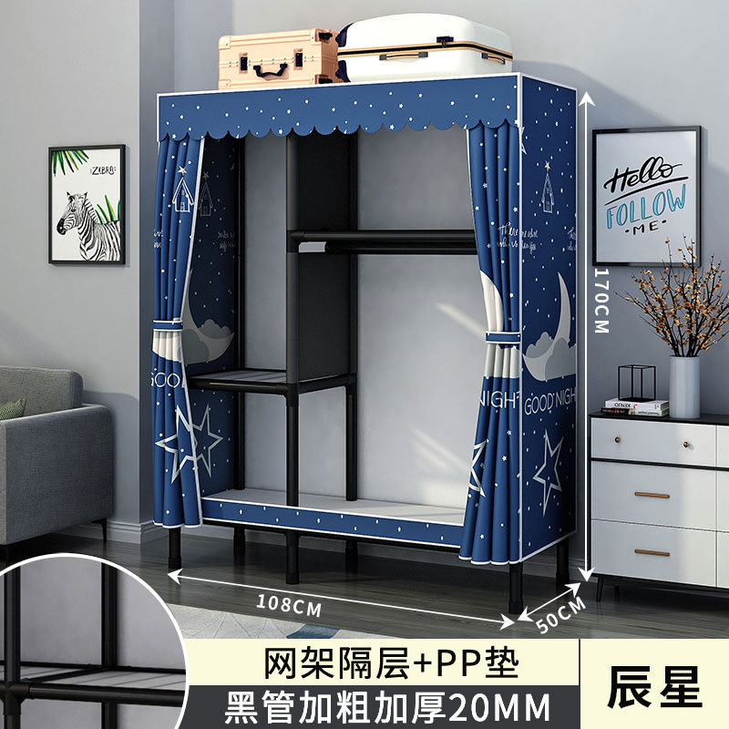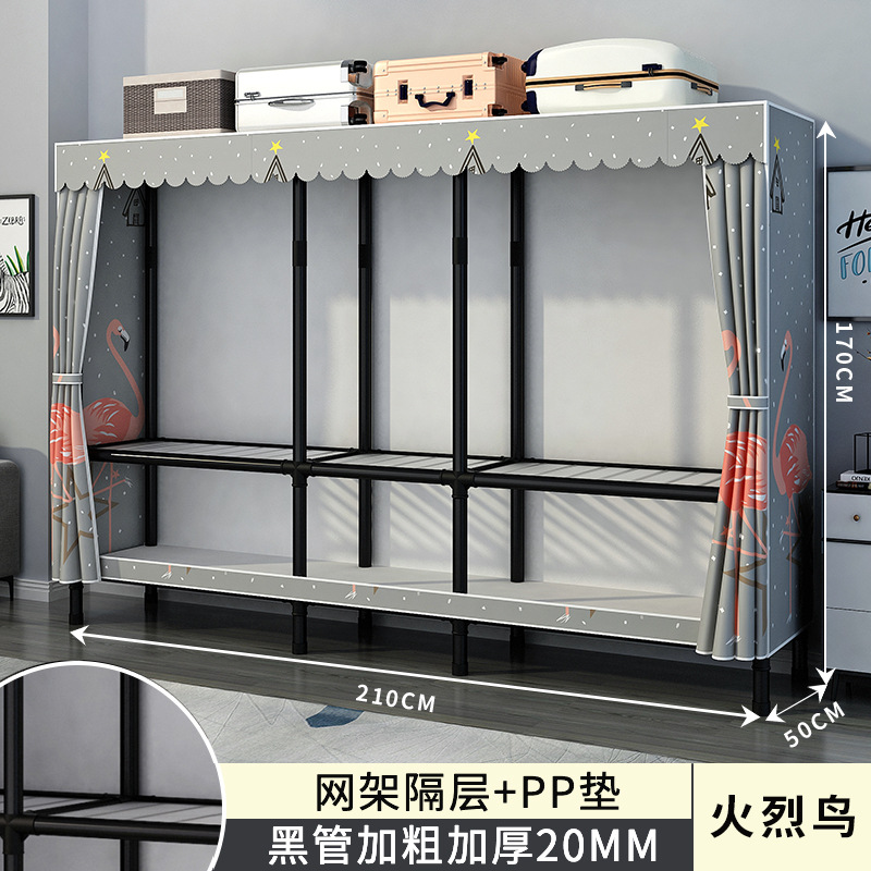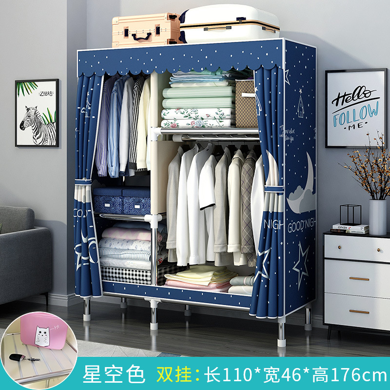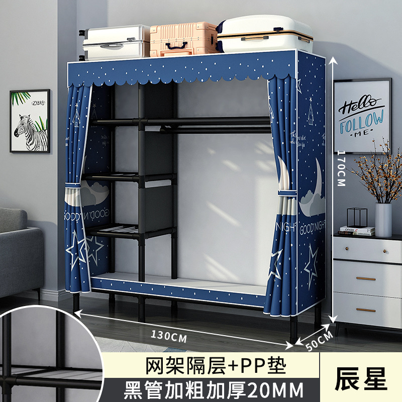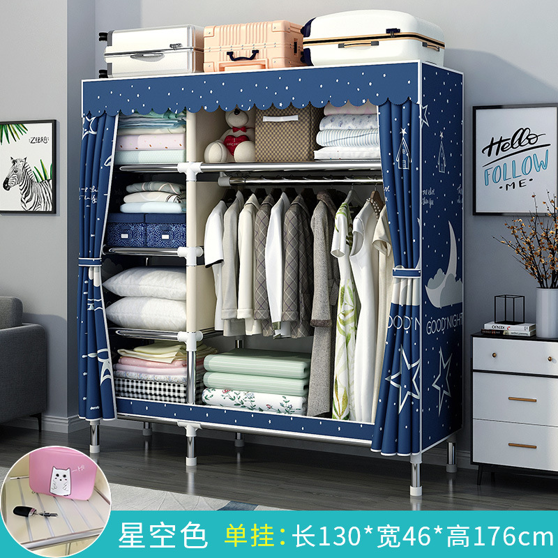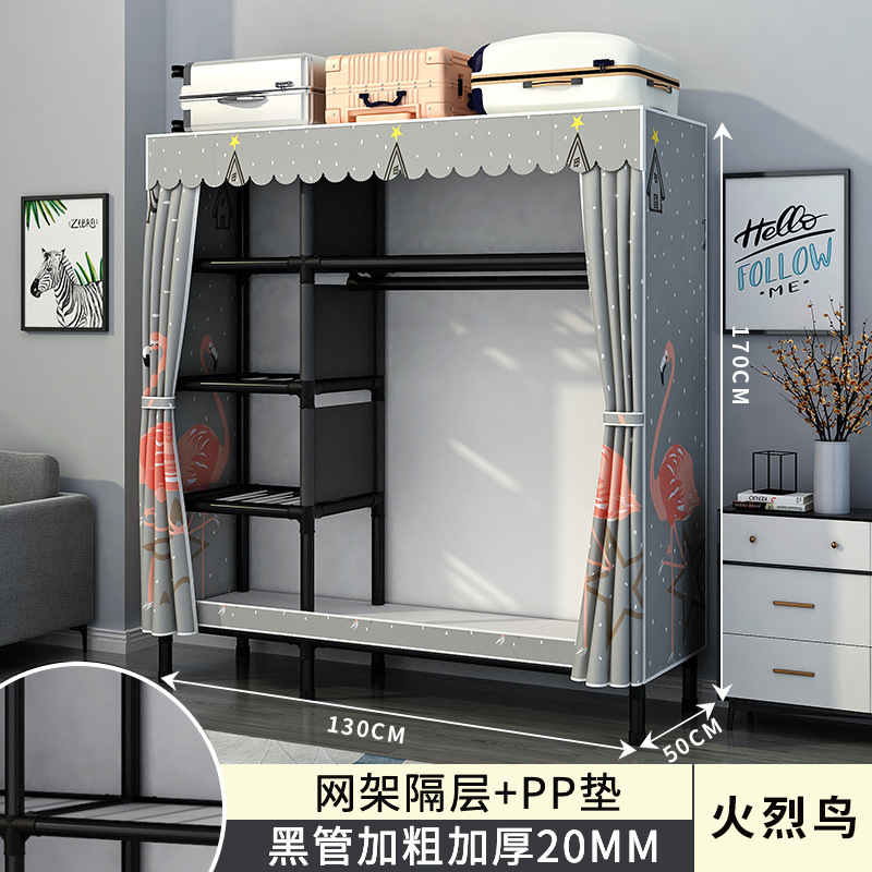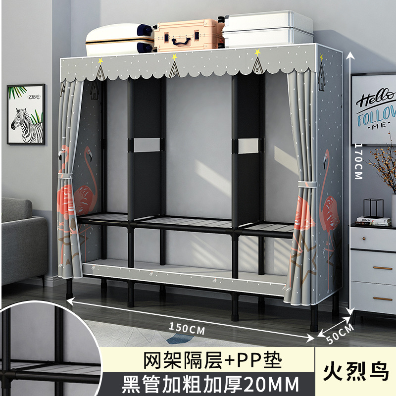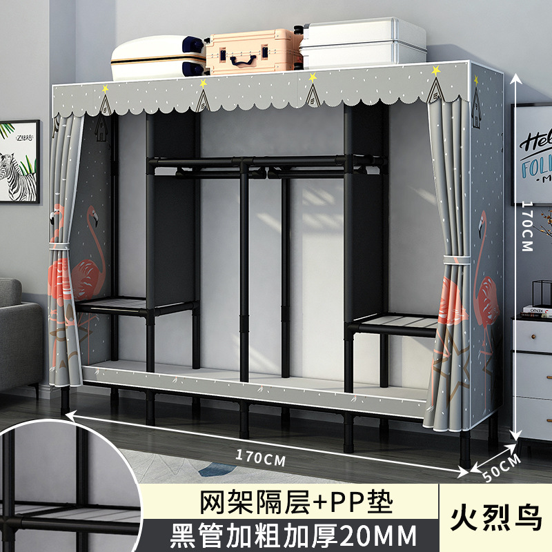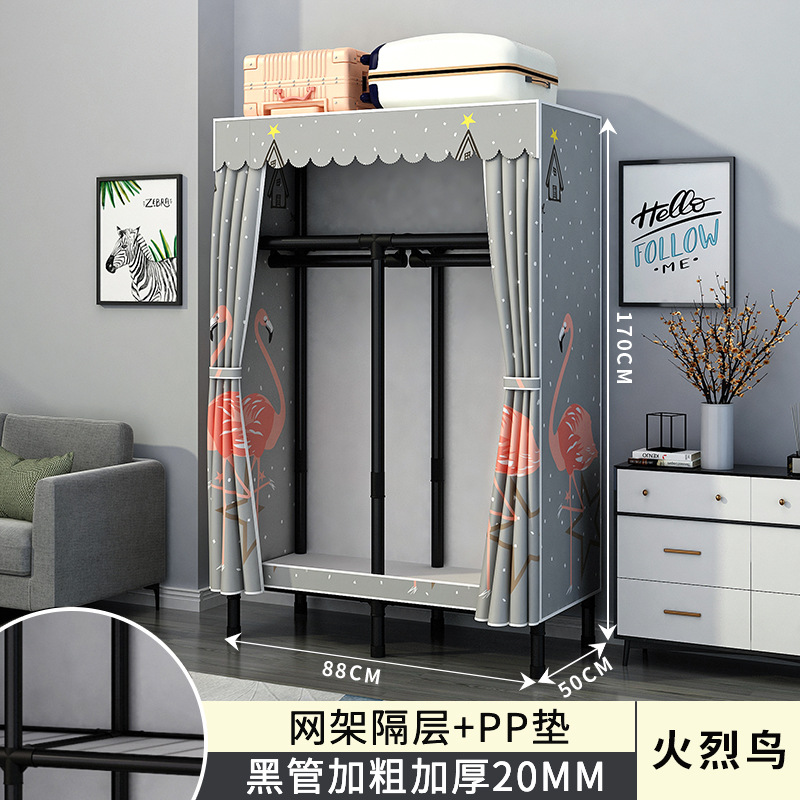 간단한 옷장 홈 침실 조립 천 옷장 강철 파이프 강력하고 내구성이 뛰어난 임대 주택 옷장 캐비닛 경제적