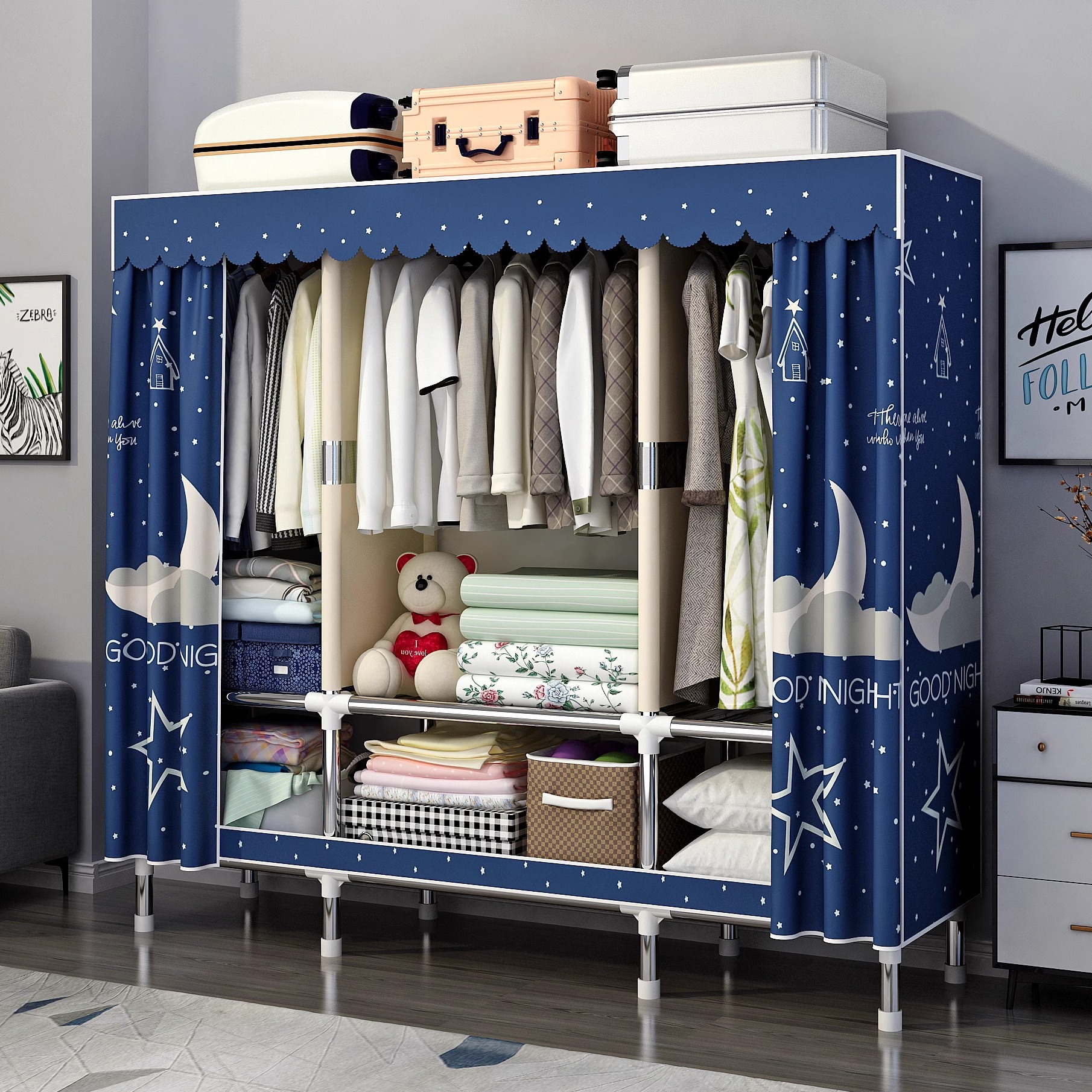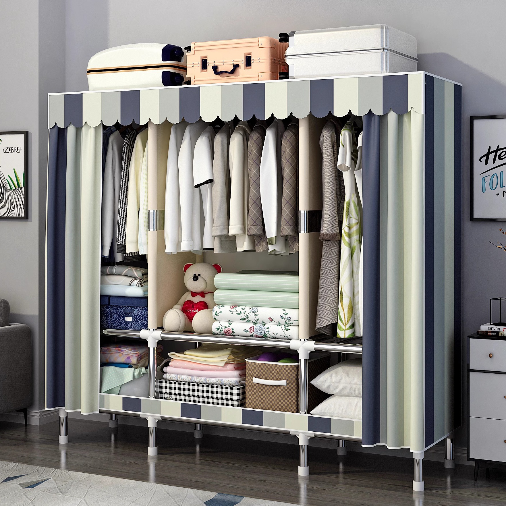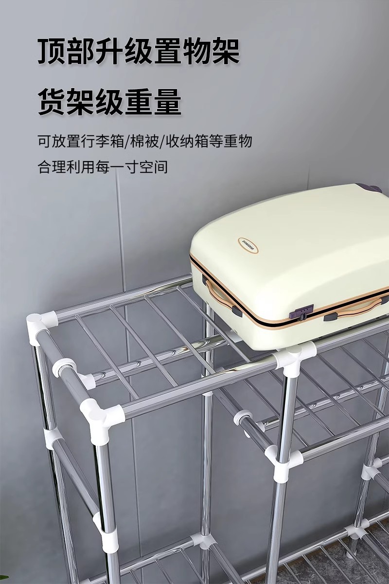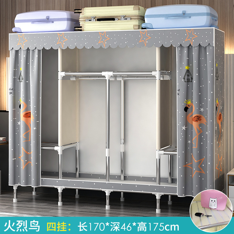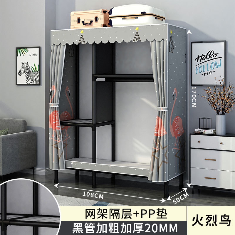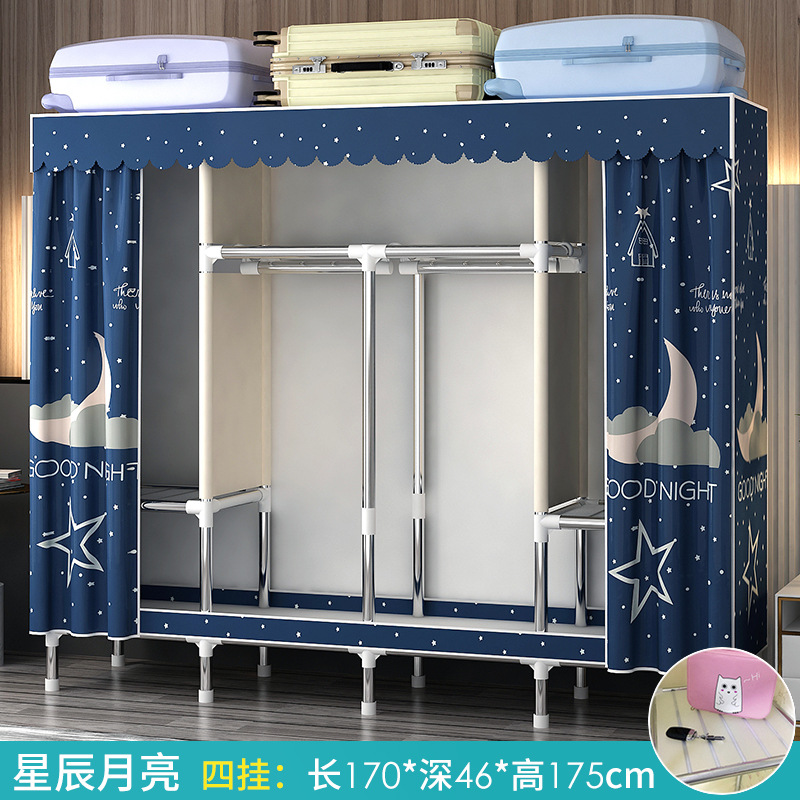 간단한 옷장 홈 침실 조립 천 옷장 강철 파이프 강력하고 내구성이 뛰어난 임대 주택 옷장 캐비닛 경제적
