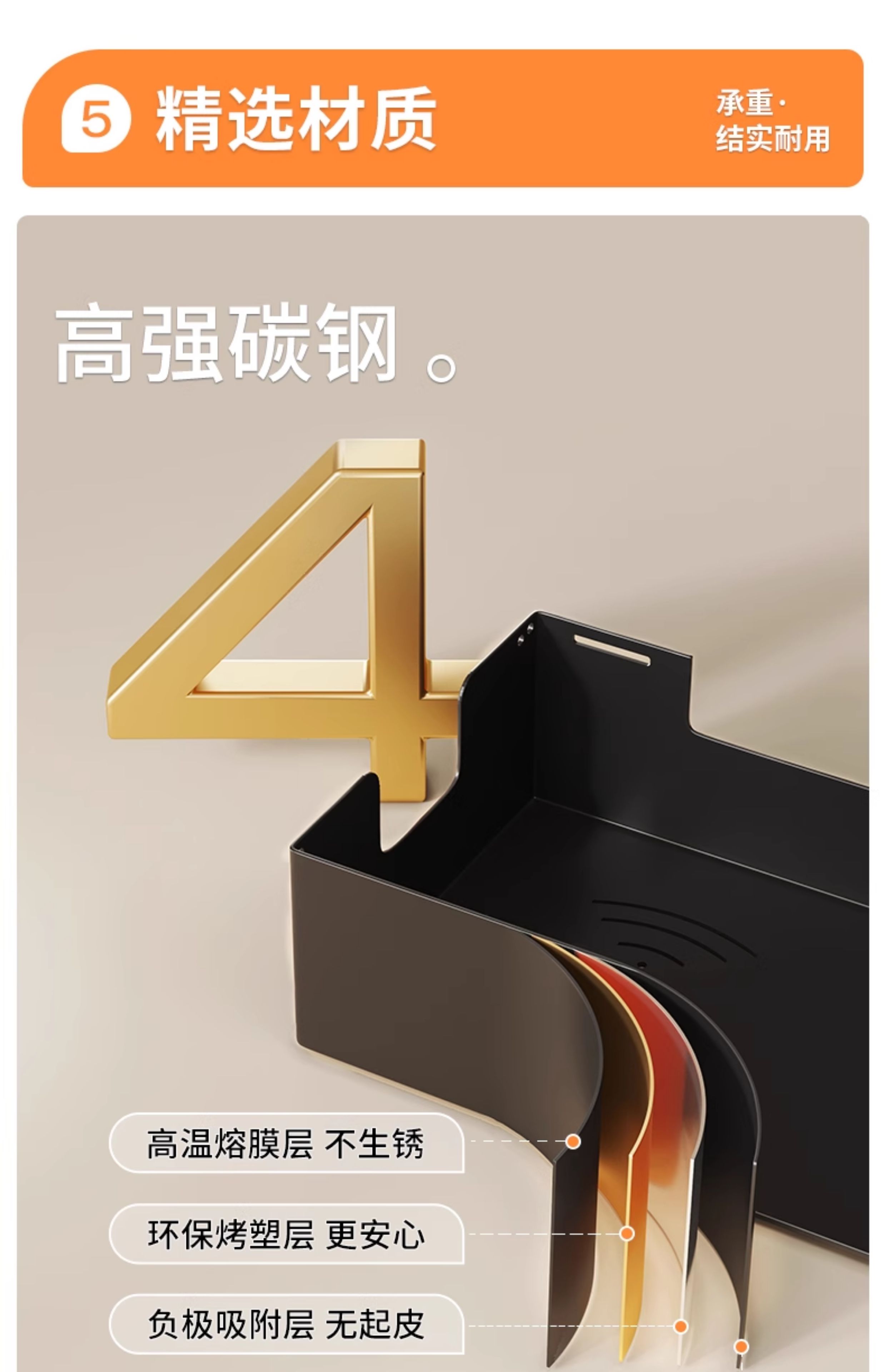 • ◈ ◈ ▼ ▲ ✤ ✥ 블랙 [업그레이드된 둥근 모서리 스타일] - 길이 40cm [구멍을 뚫지 않고 벽걸이] ◈ ◈ ▼ ▲ ✤ ✥