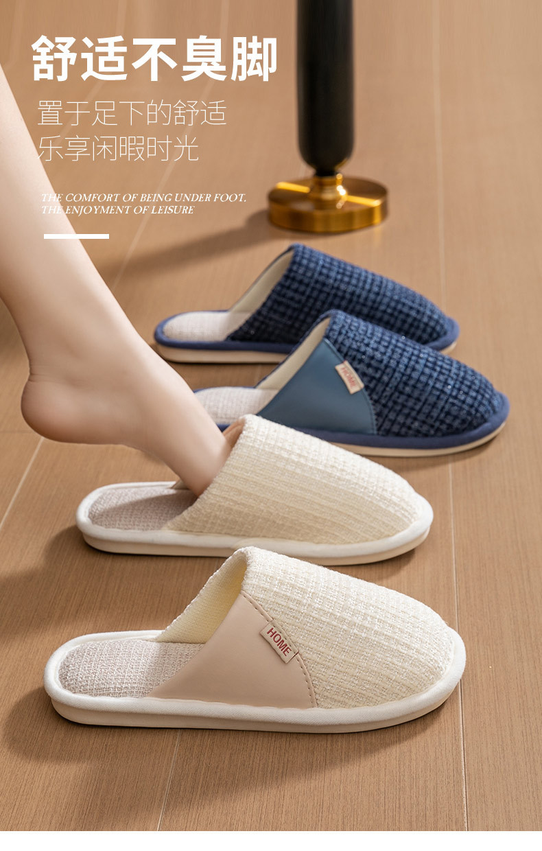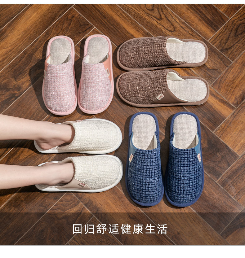 여성용 봄, 가을 면화 슬리퍼, 사계절 겨울, 실내 가정용, 면 및 린넨, 미끄럼 방지 가정용 커플, 남성용 도매 린넨 슬리퍼스토어 가기