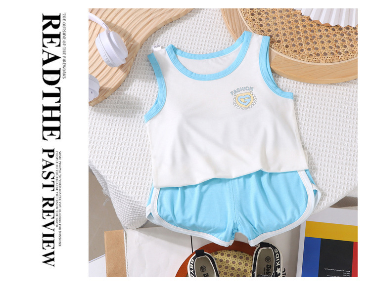 아동 모달 조끼 세트 여름 얇은 민소매 에어컨 의류 여름 캐주얼 조끼 반바지 투피스 세트