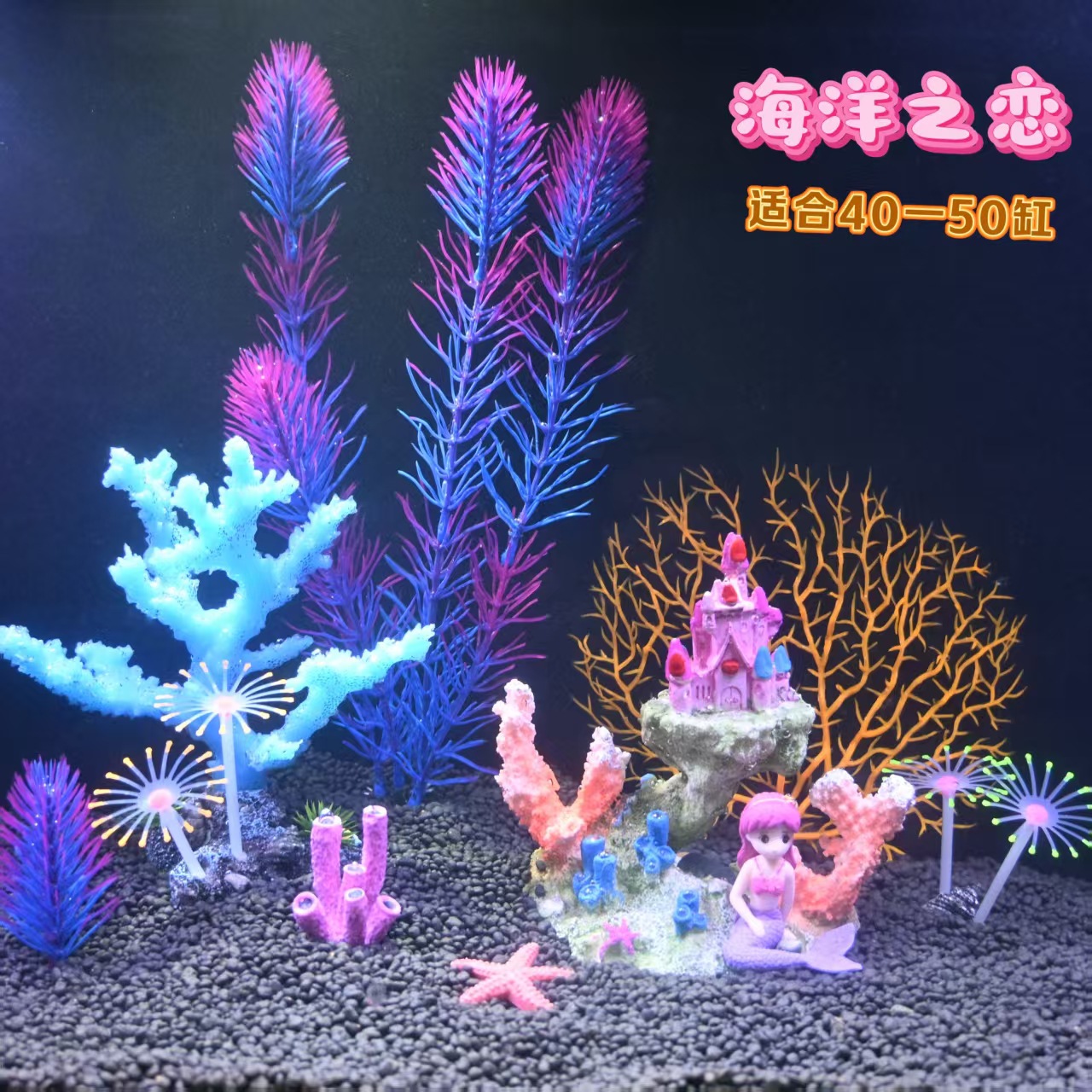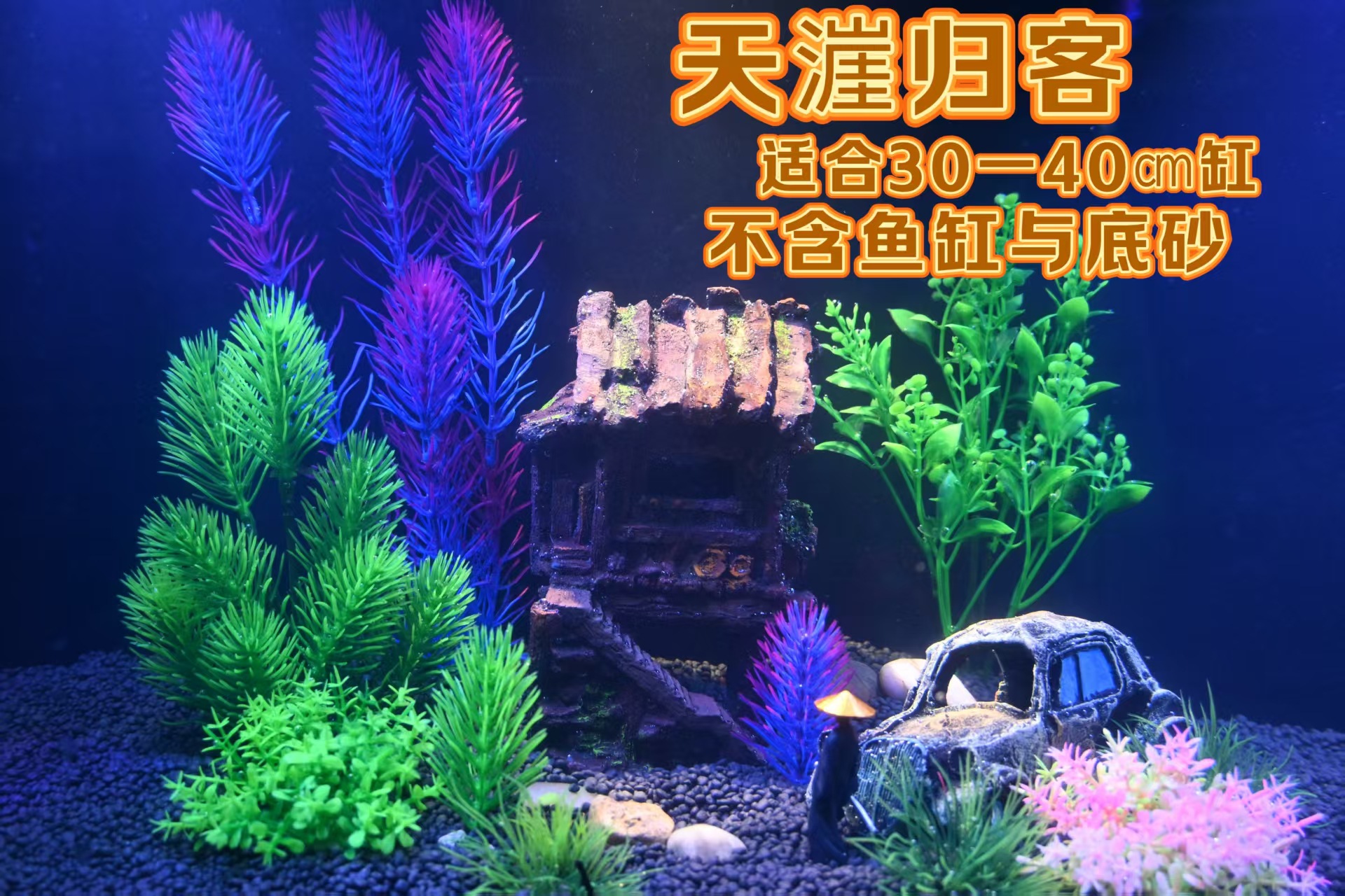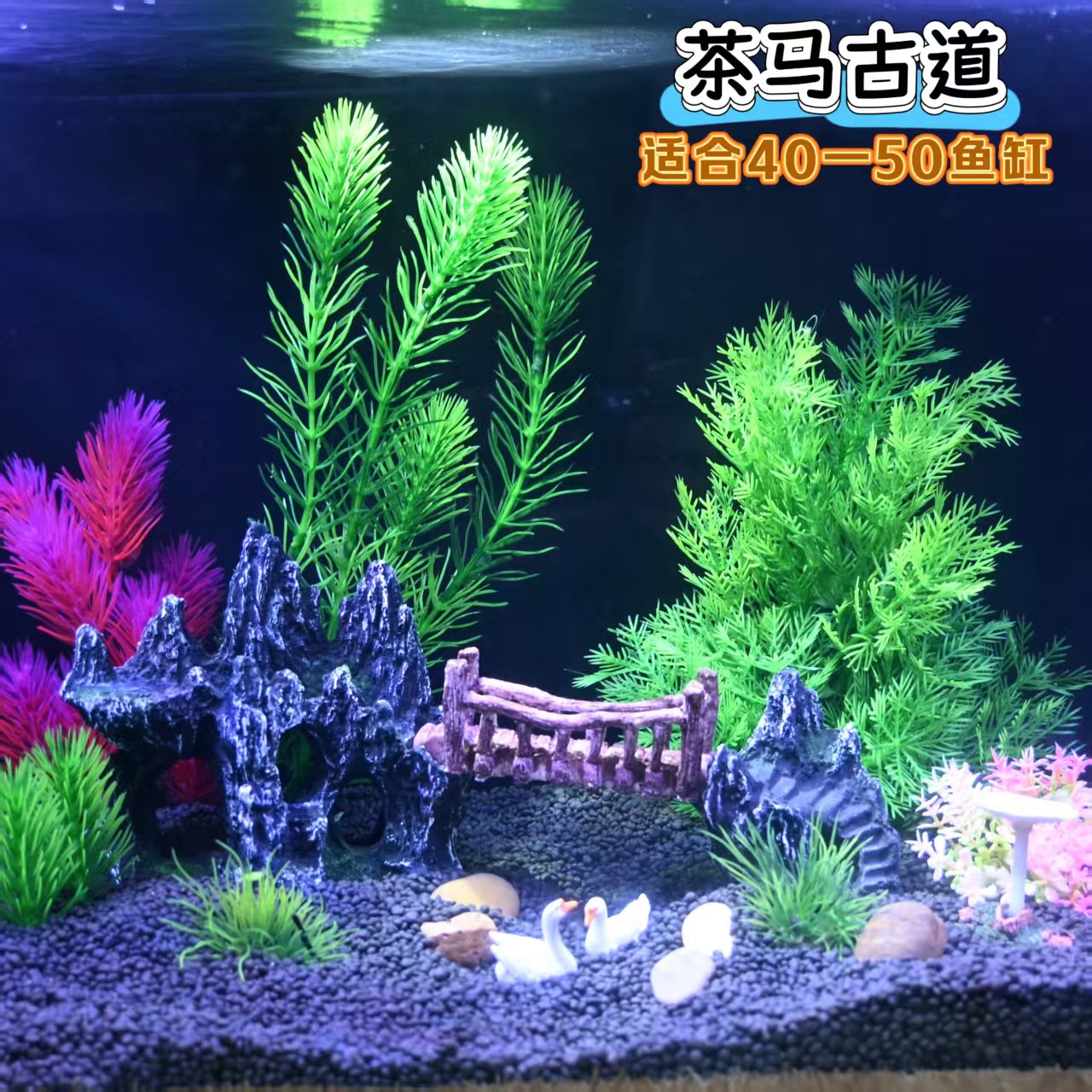 수조 조경 세트, 모조 수생 식물 30-40- 50cm 수조, 게으른 조경 장식품, 수조 조경 공장스토어 가기