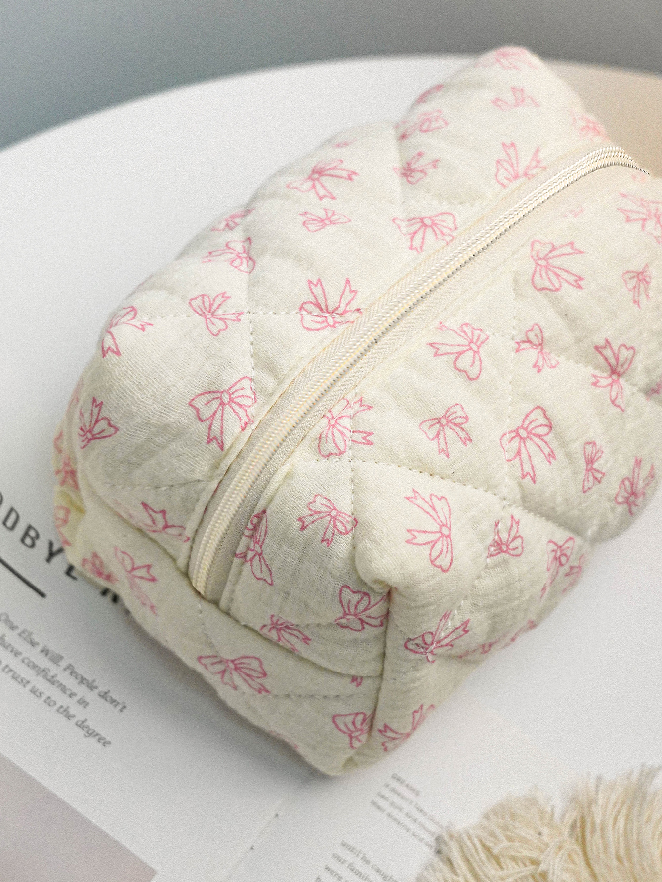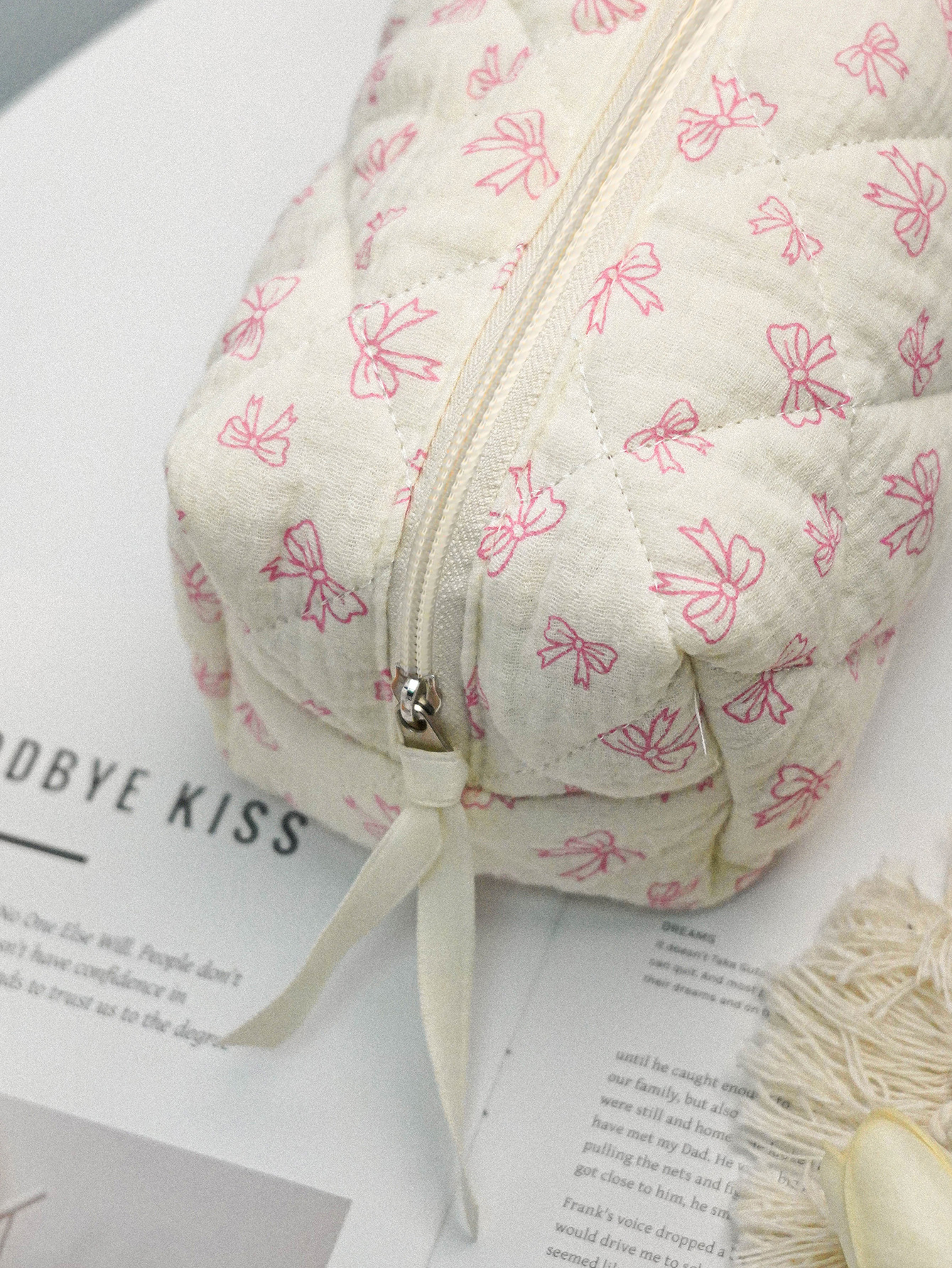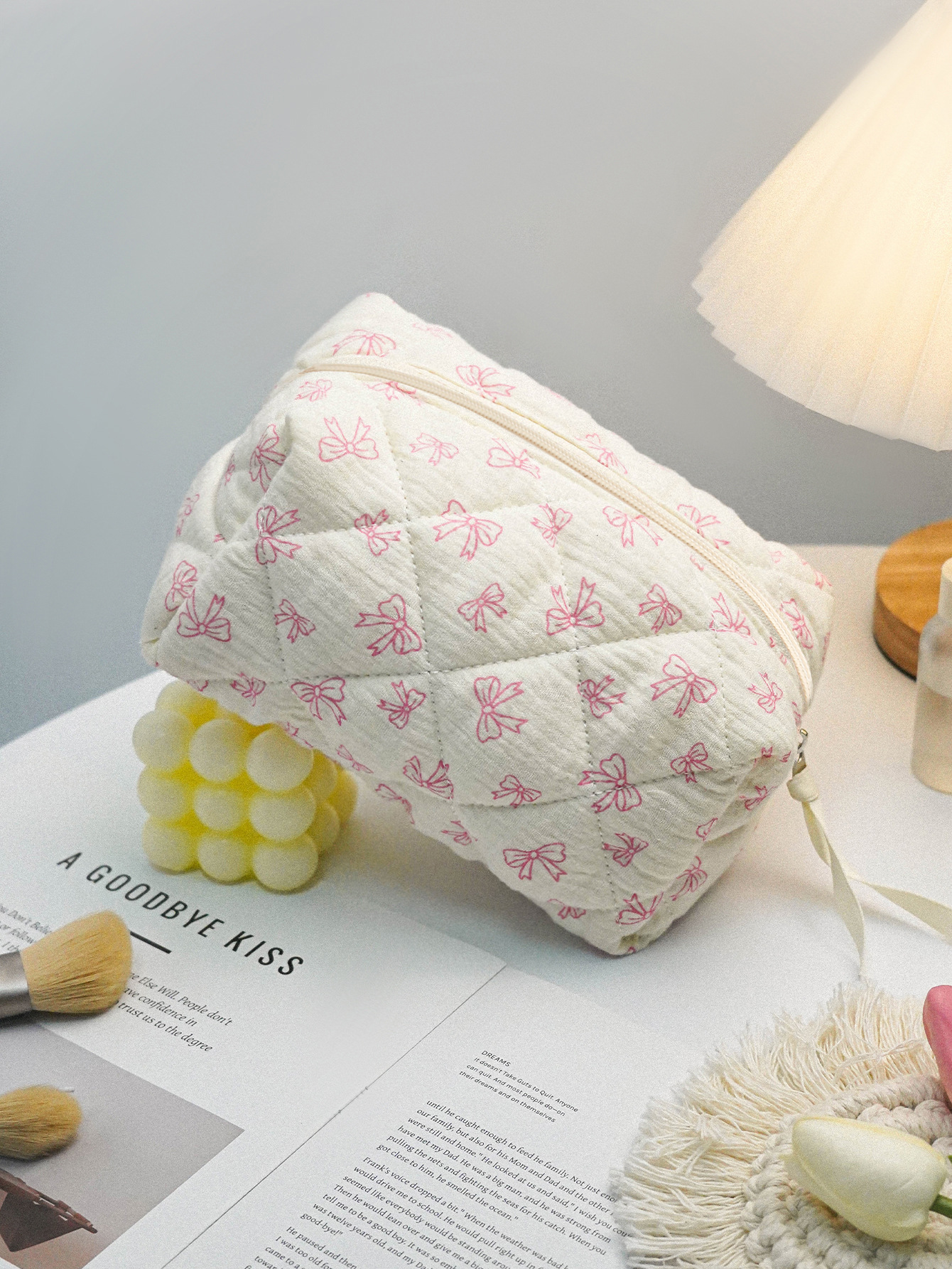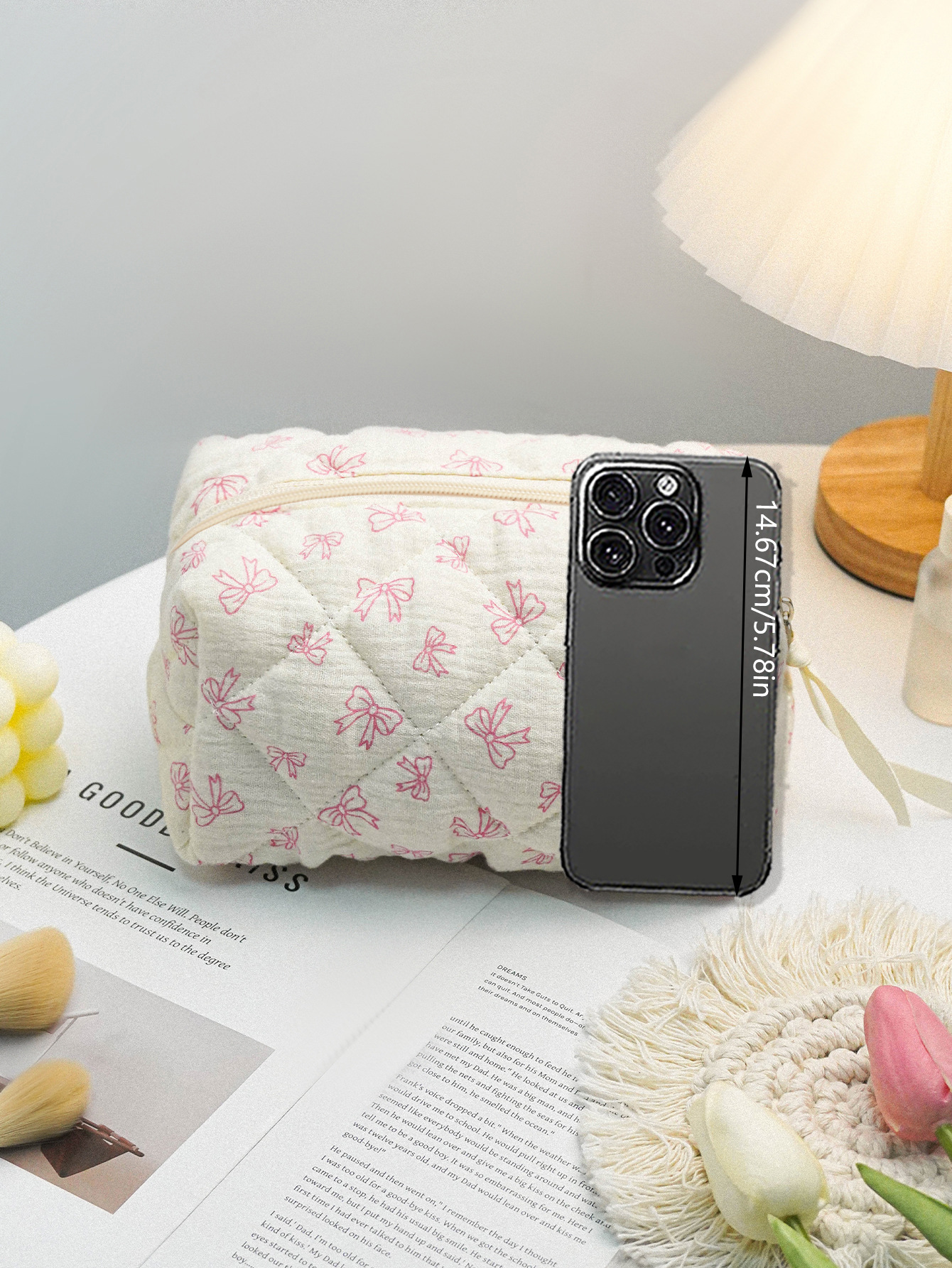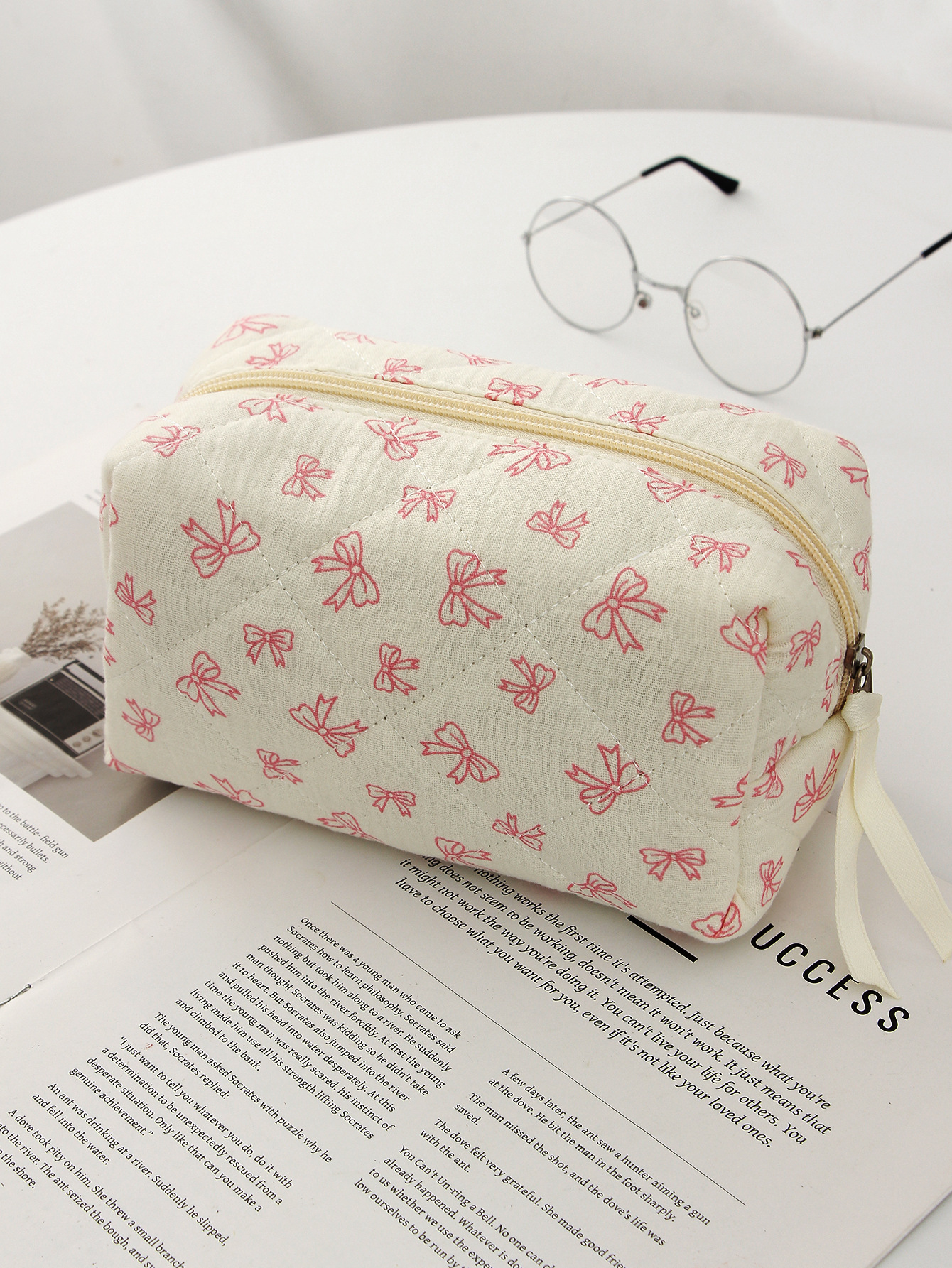 심플하고 상큼한 화장품 가방, 귀여운 소녀 하트 리본 지퍼 화장품 수납 가방, 여행용 휴대용 가방