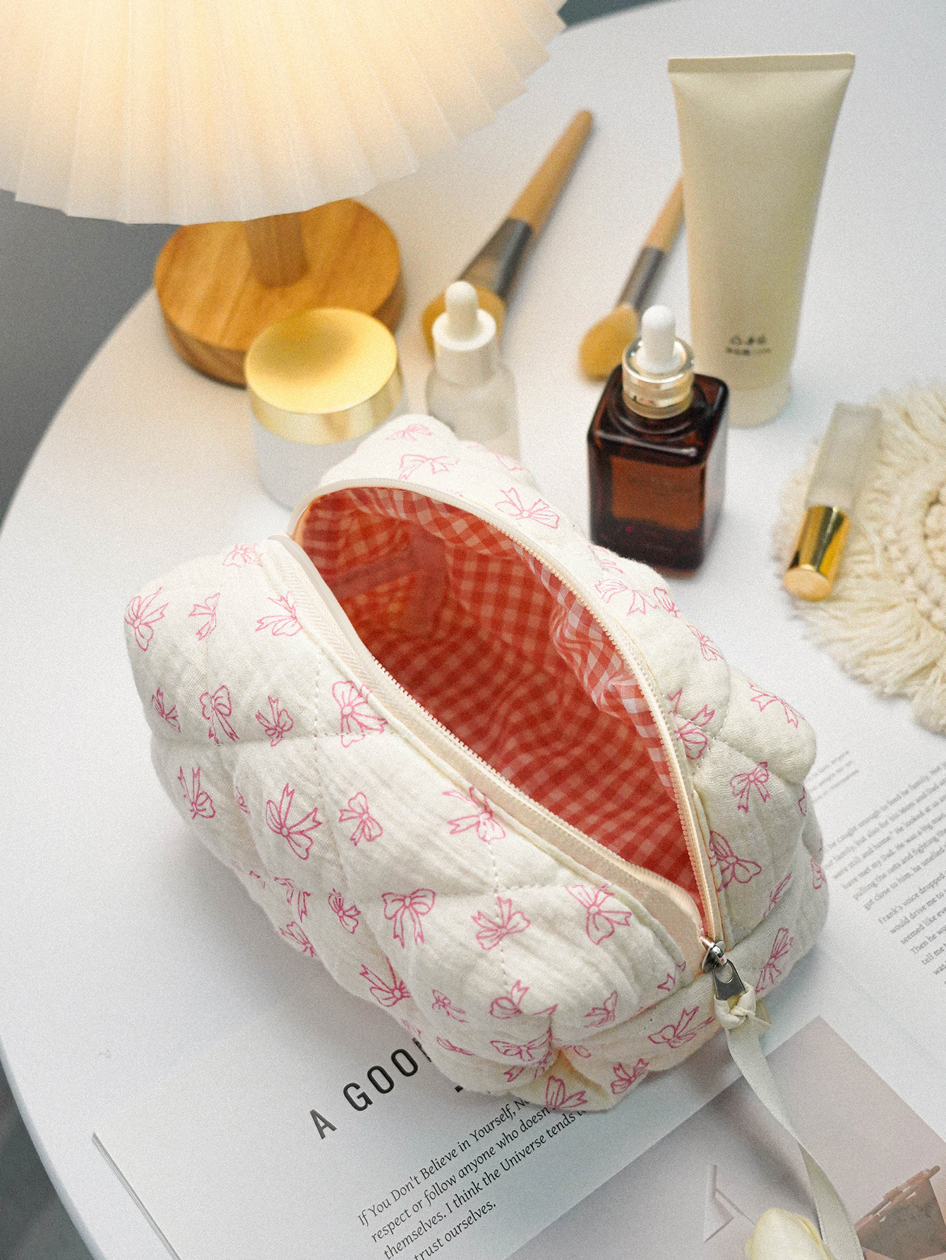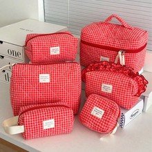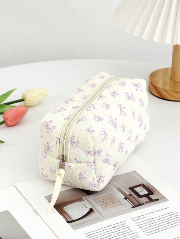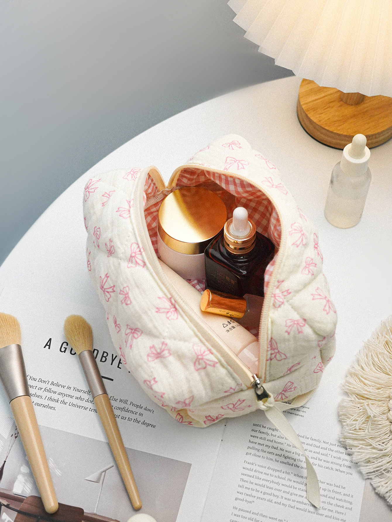 심플하고 상큼한 화장품 가방, 귀여운 소녀 하트 리본 지퍼 화장품 수납 가방, 여행용 휴대용 가방스토어 가기
