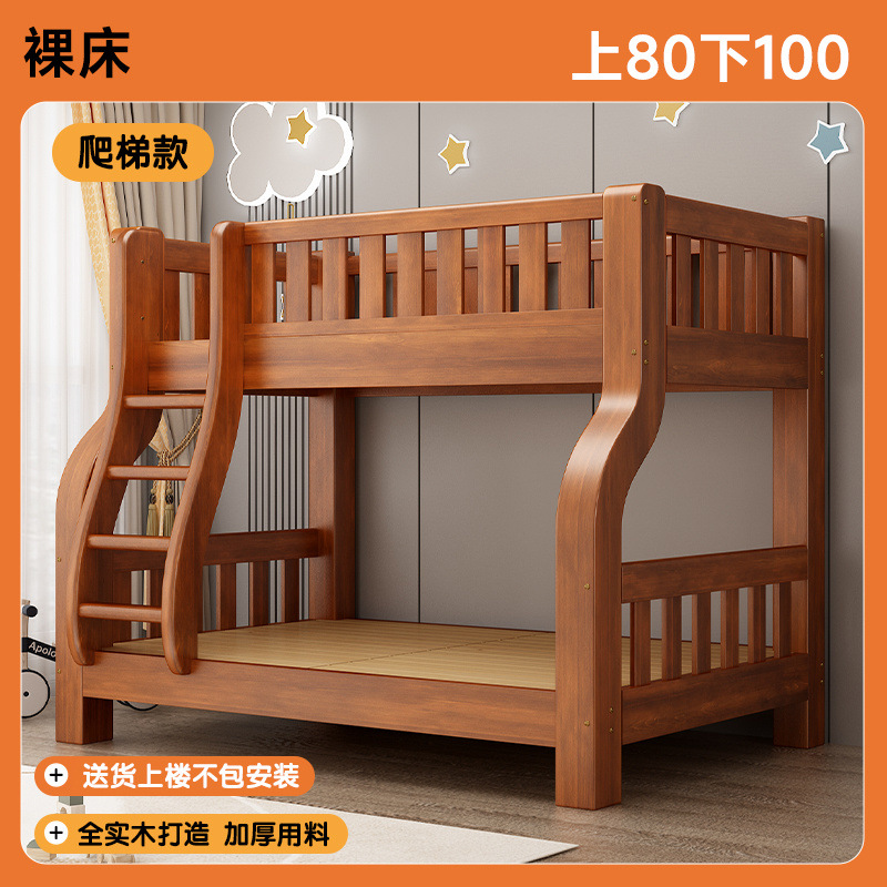 • 브라운 사다리 스타일 원목 알몸 침대 [위층으로 보내기]