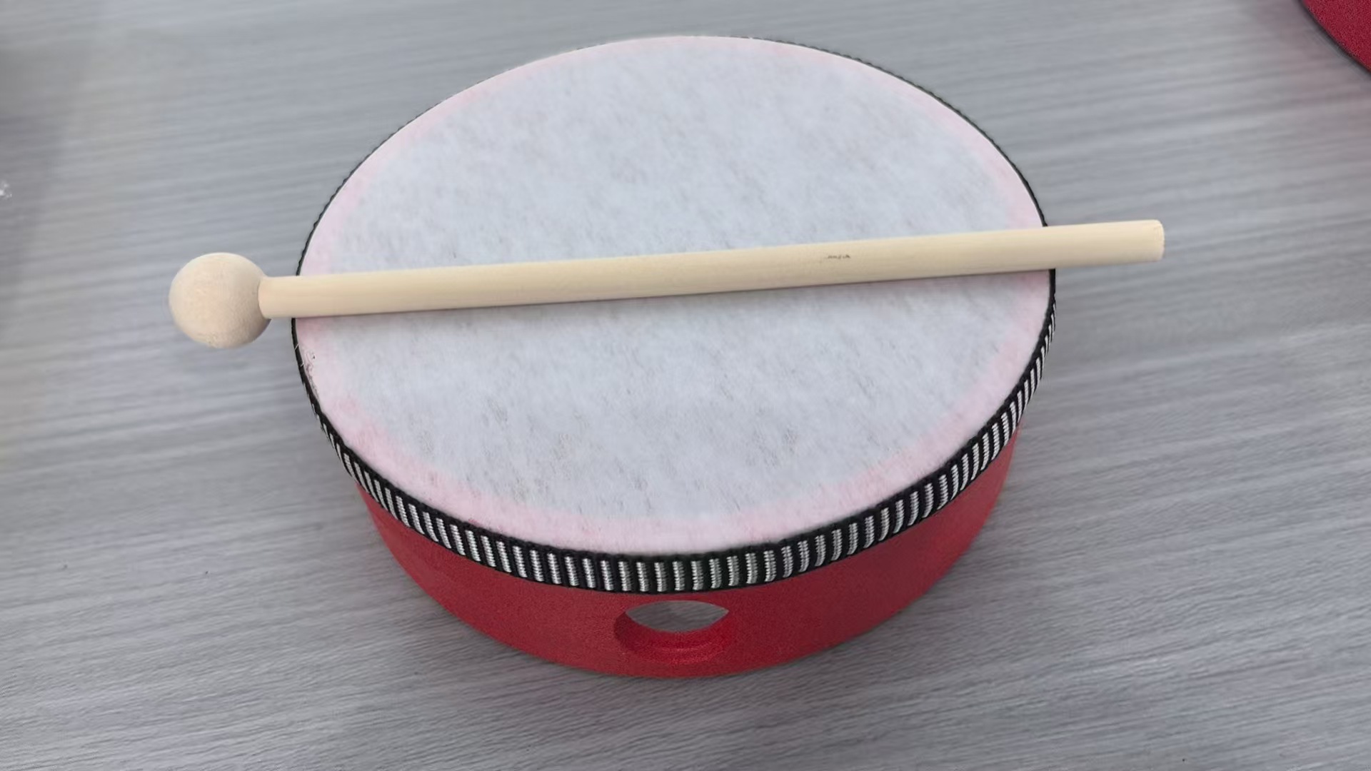 • 7inch 망치가 달린 빨간색 탬버린 17.5*4.5