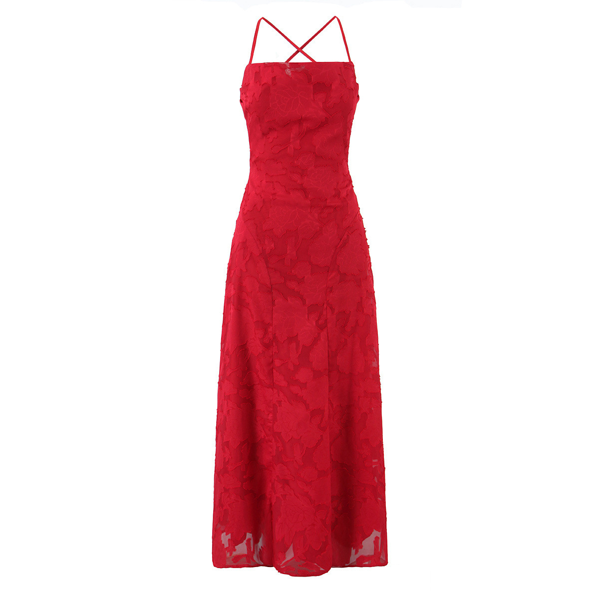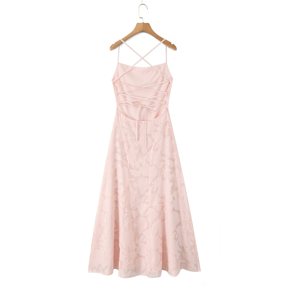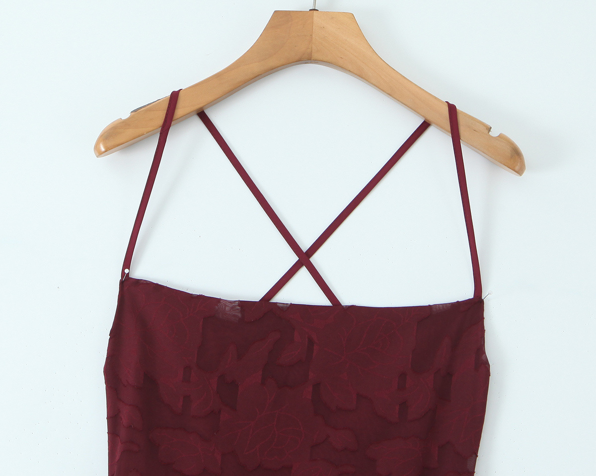 유럽과 미국 여성 의류 대외 무역 도매 자카드 섹시 슬림 서스펜더 드레스 백리스 스트랩 디자인 롱 스커트