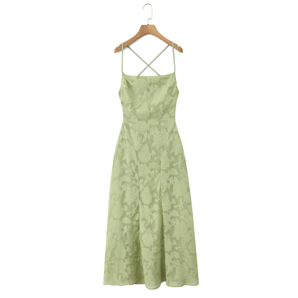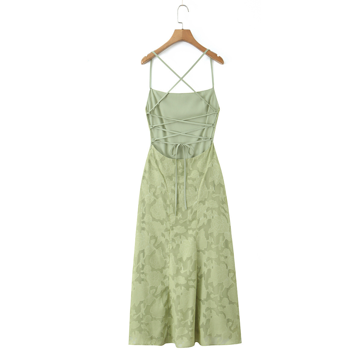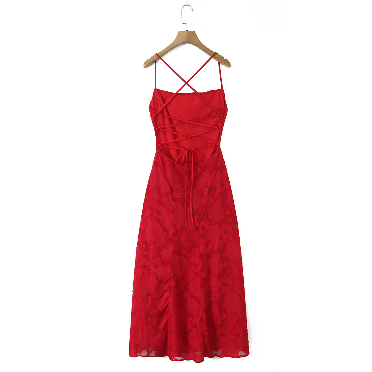 유럽과 미국 여성 의류 대외 무역 도매 자카드 섹시 슬림 서스펜더 드레스 백리스 스트랩 디자인 롱 스커트