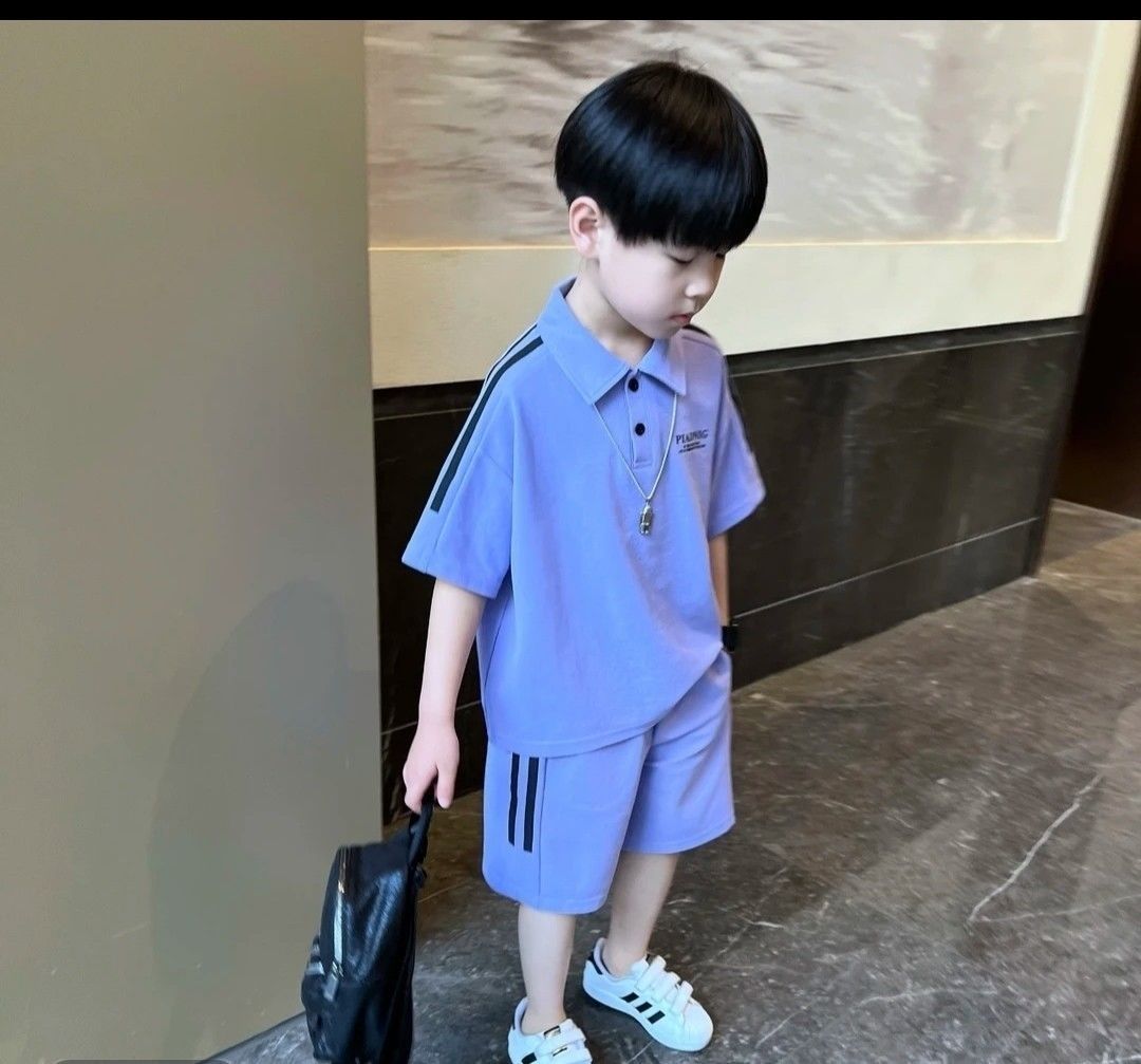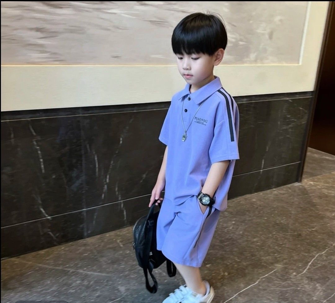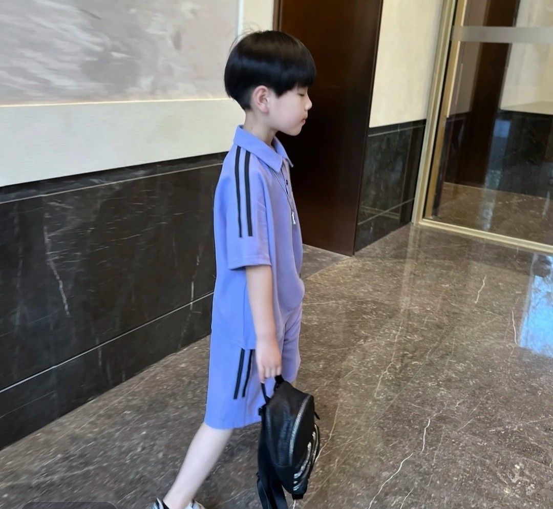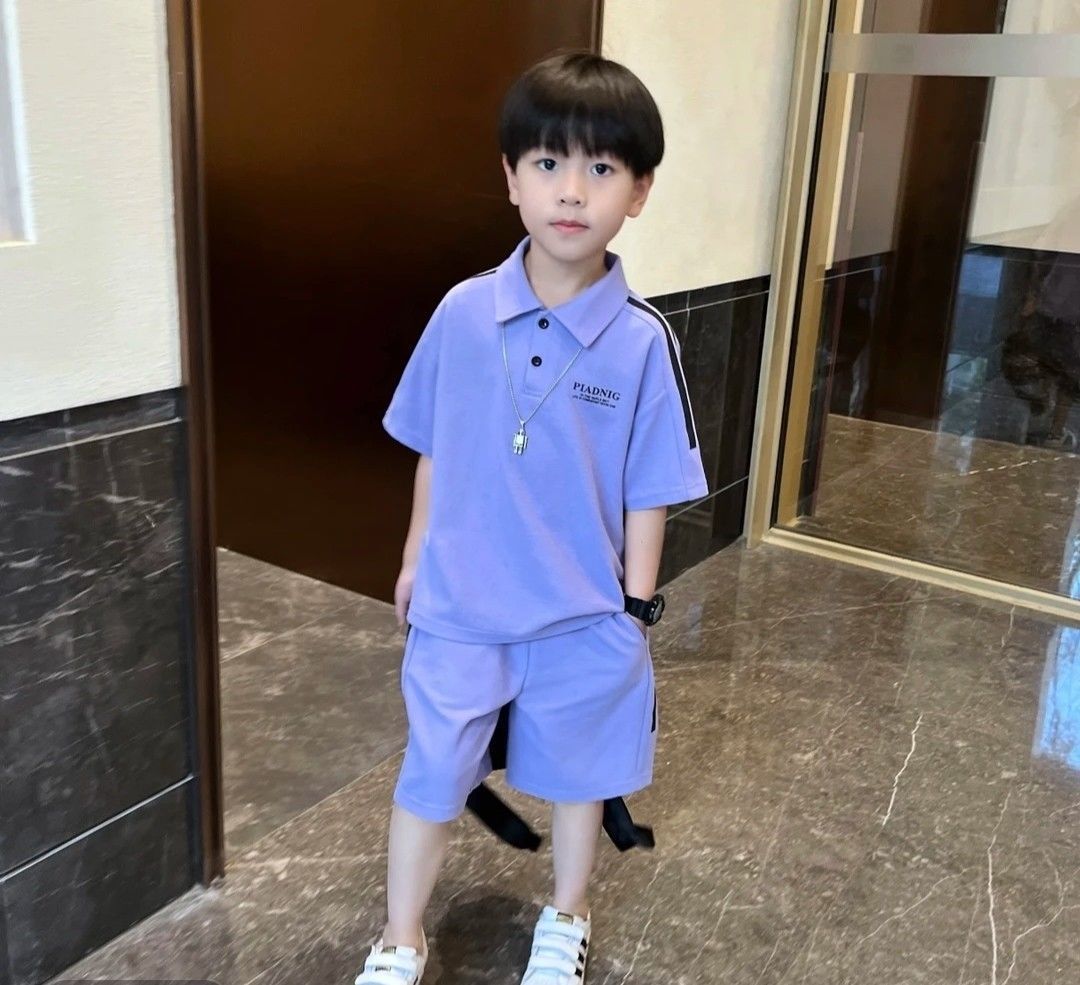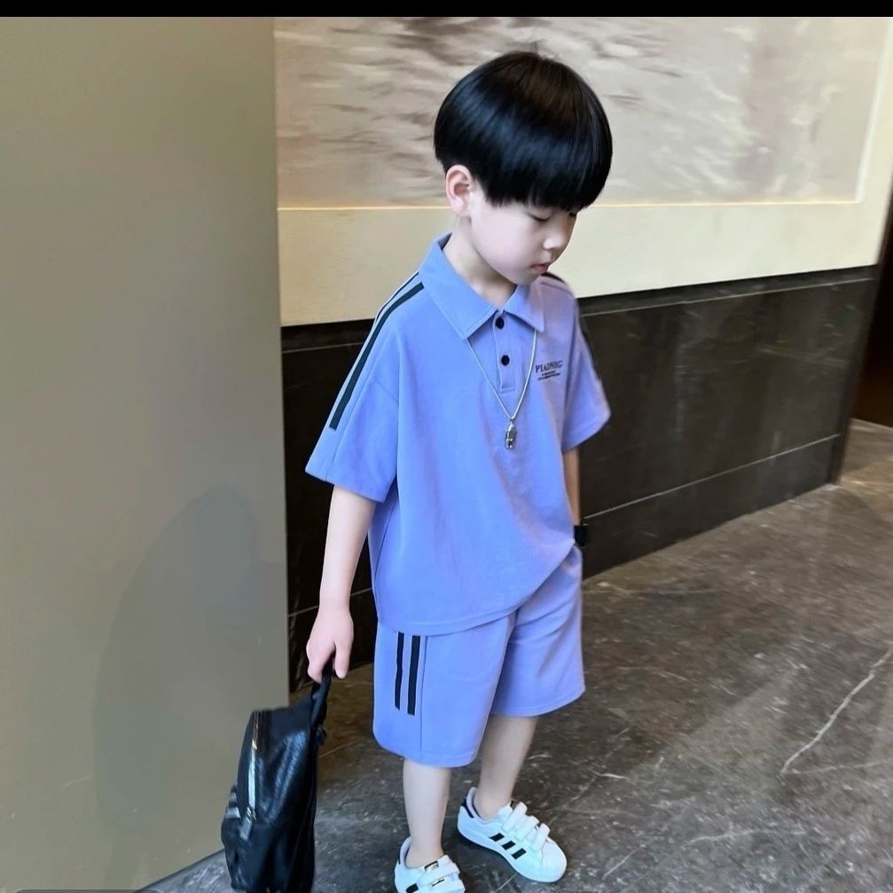 2025 소년 여름 정장 폴로 중소형 어린이 반팔 새로운 캐주얼 어린이 잘 생긴 반바지 투피스 세트스토어 가기